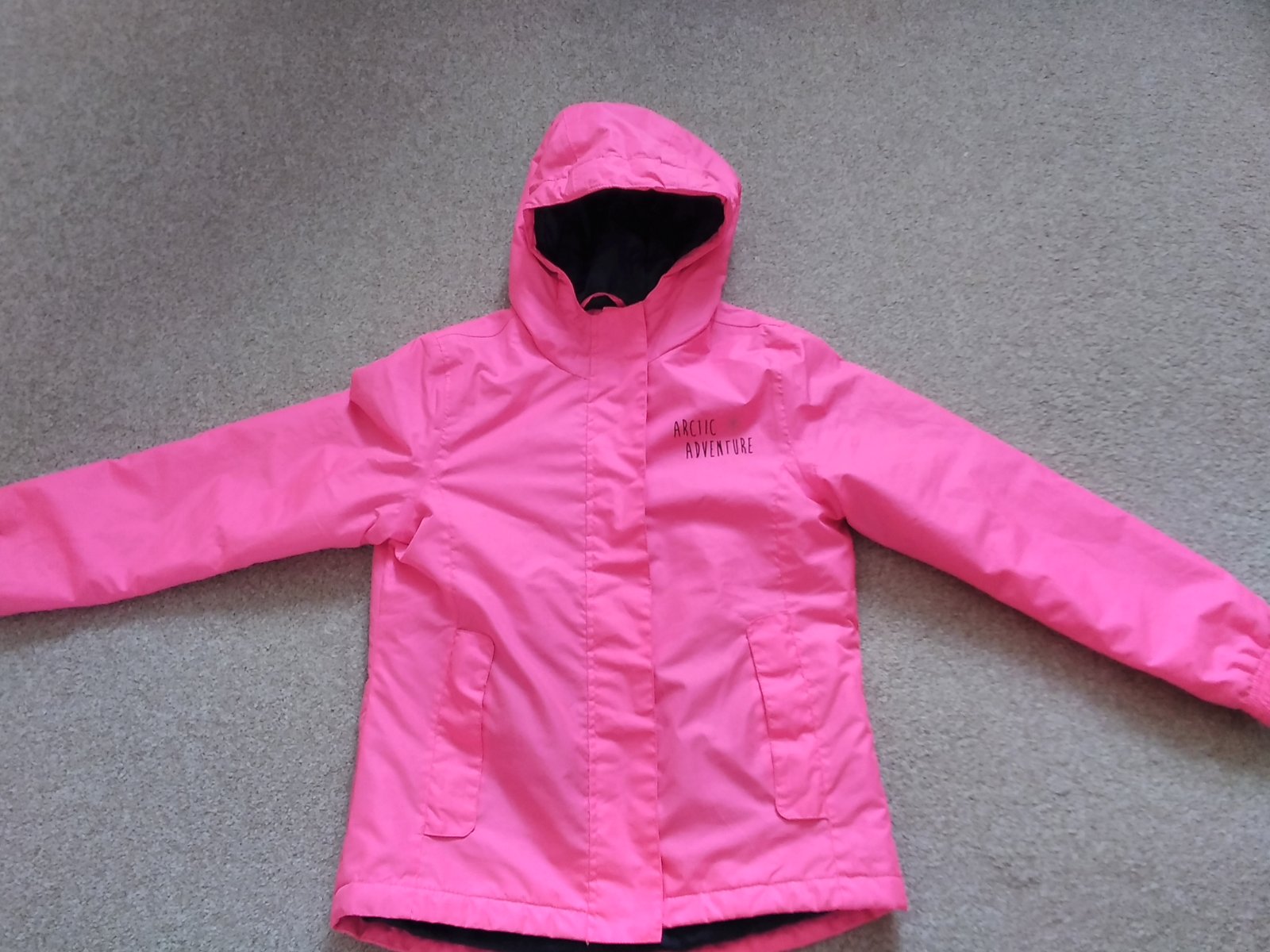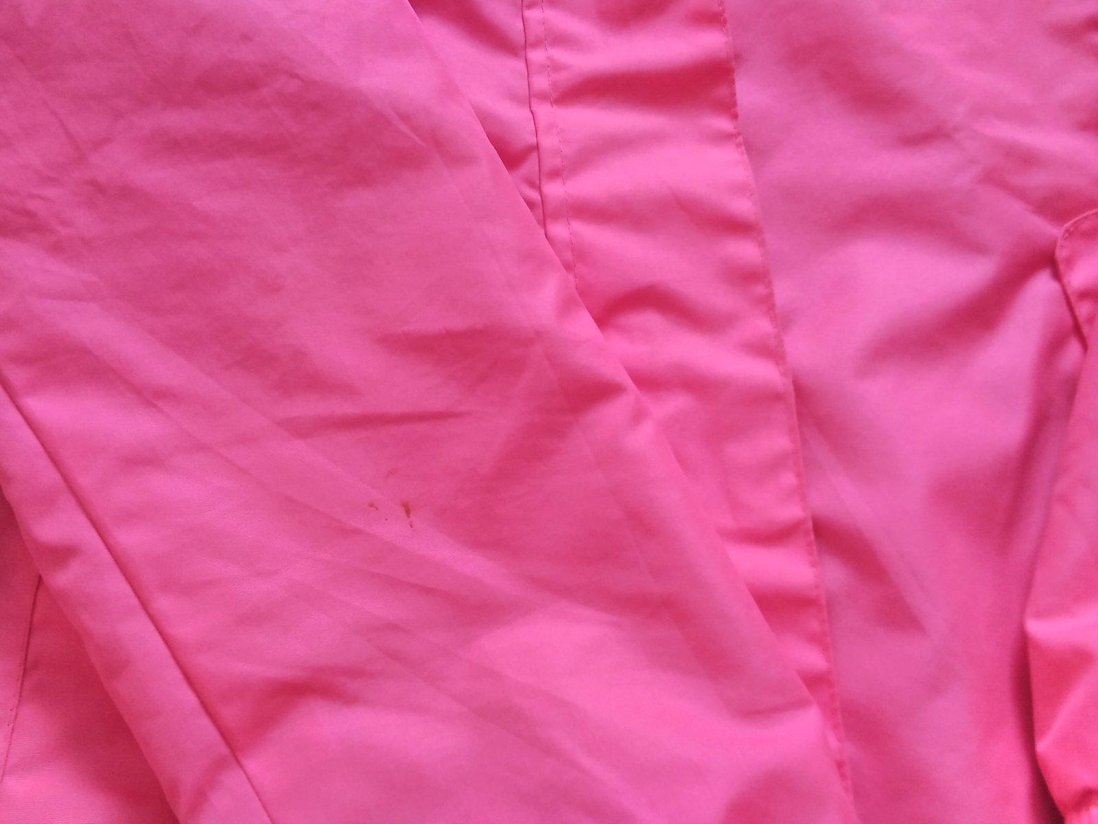 Vetrovka je v super stave, krasnej kriklavej ruzovej farby kombinovanej s tmavo modrou Kapucna sa da odopnut, povrch vetrovky je vhodny do vetra a dazda, da sa nosit na jar/ jesen, prip.teplejsia z...