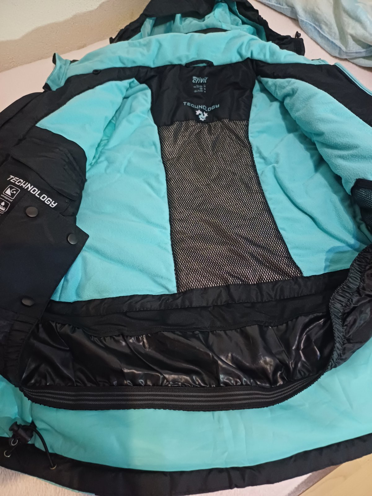Veľmi pekný noseny stav,jediná chybička je na sneznom páse sa začal parat steh, uz je to zašlite. Iné poškodenia som nenašla. Na ľavom rukave je vrecko na zips na skipas. Šírka 52cm Dĺžka 71-75 cm ...