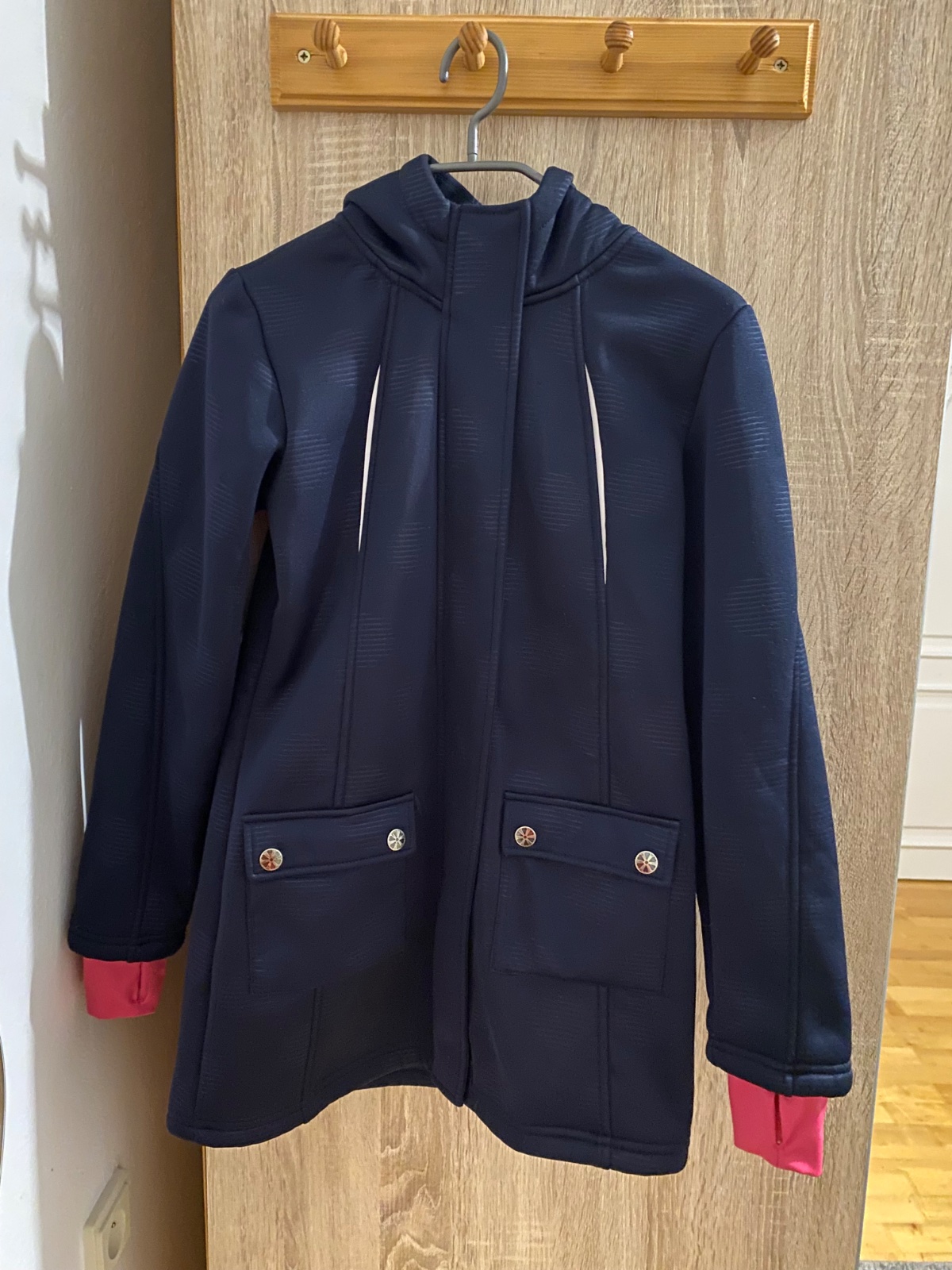 Obvod hrude 2x43cm, dĺžka 71cm, s kapucňou