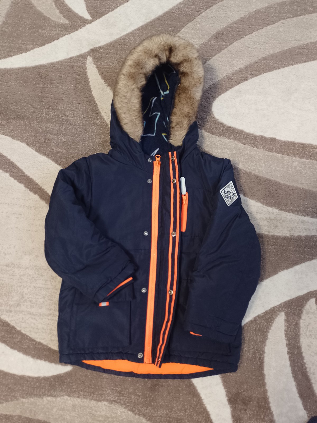 Pekný noseny stav, vo vnútri ovečka. Kožušina na kapucni stále pekná. Veľkosť písaná 122 ale je menšia, treba sa riadiť rozmermi. Preto uvádzam 116. Verím že ešte niekomu poslúži a mne sa uvoľní ...