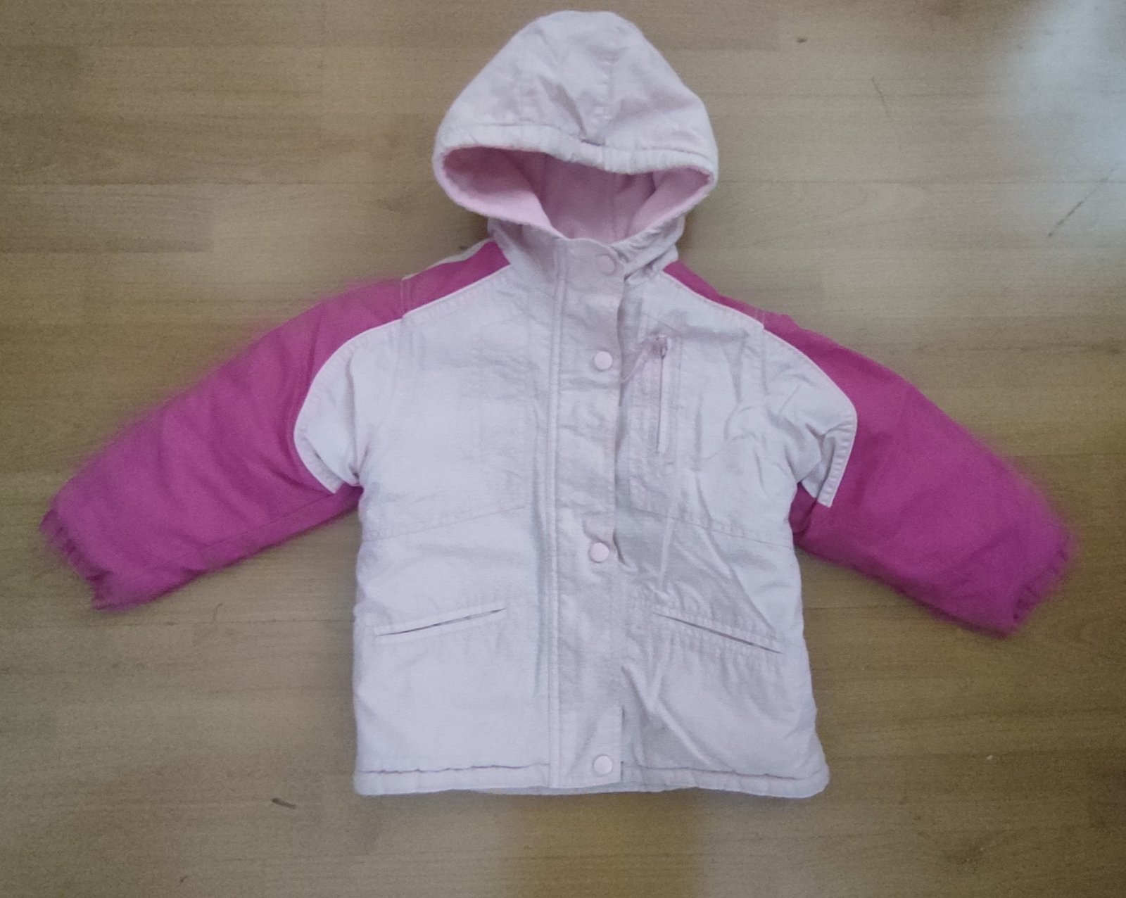 ružová dievčenská bunda číslo presne neviem už ale dĺžka je 40cm, asi pre 3-4 ročné, kapucňa sa dá dať dole