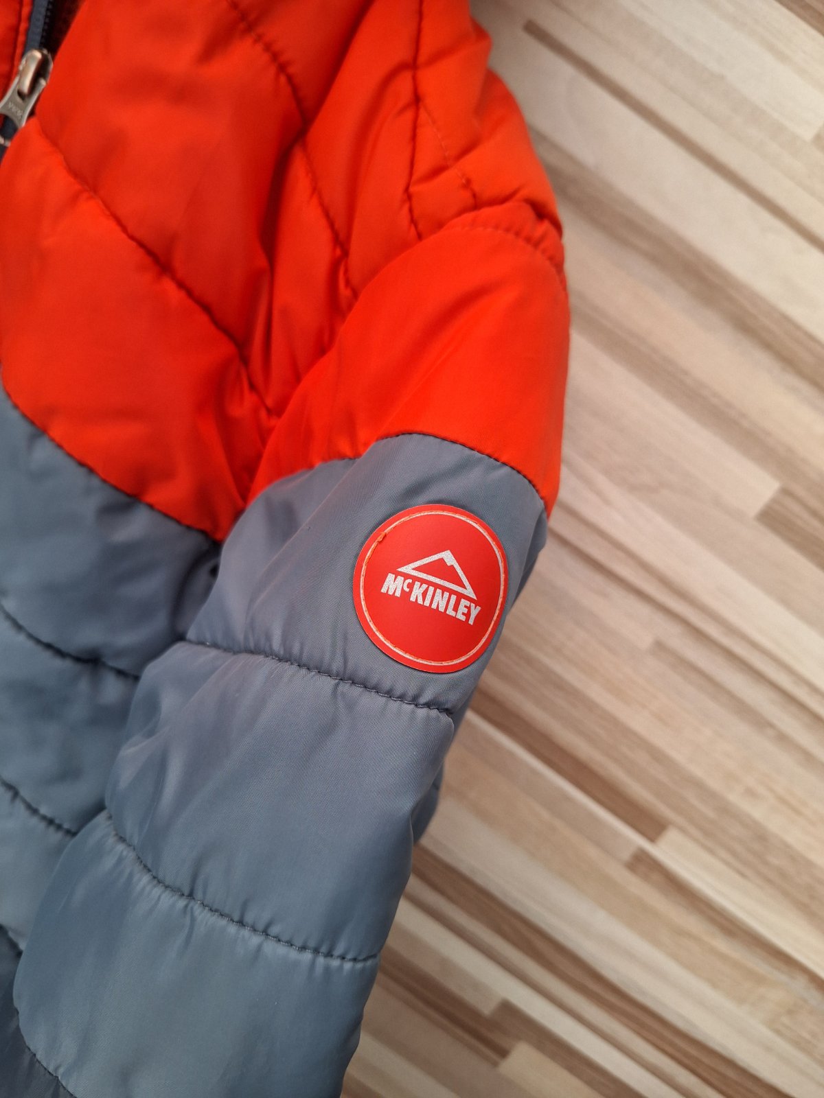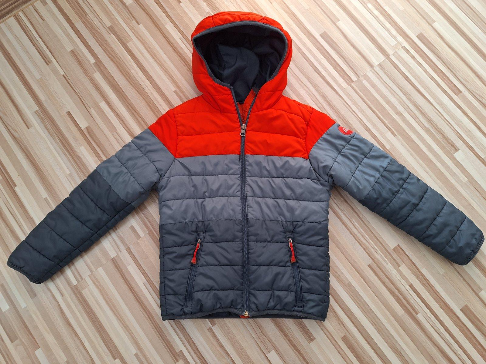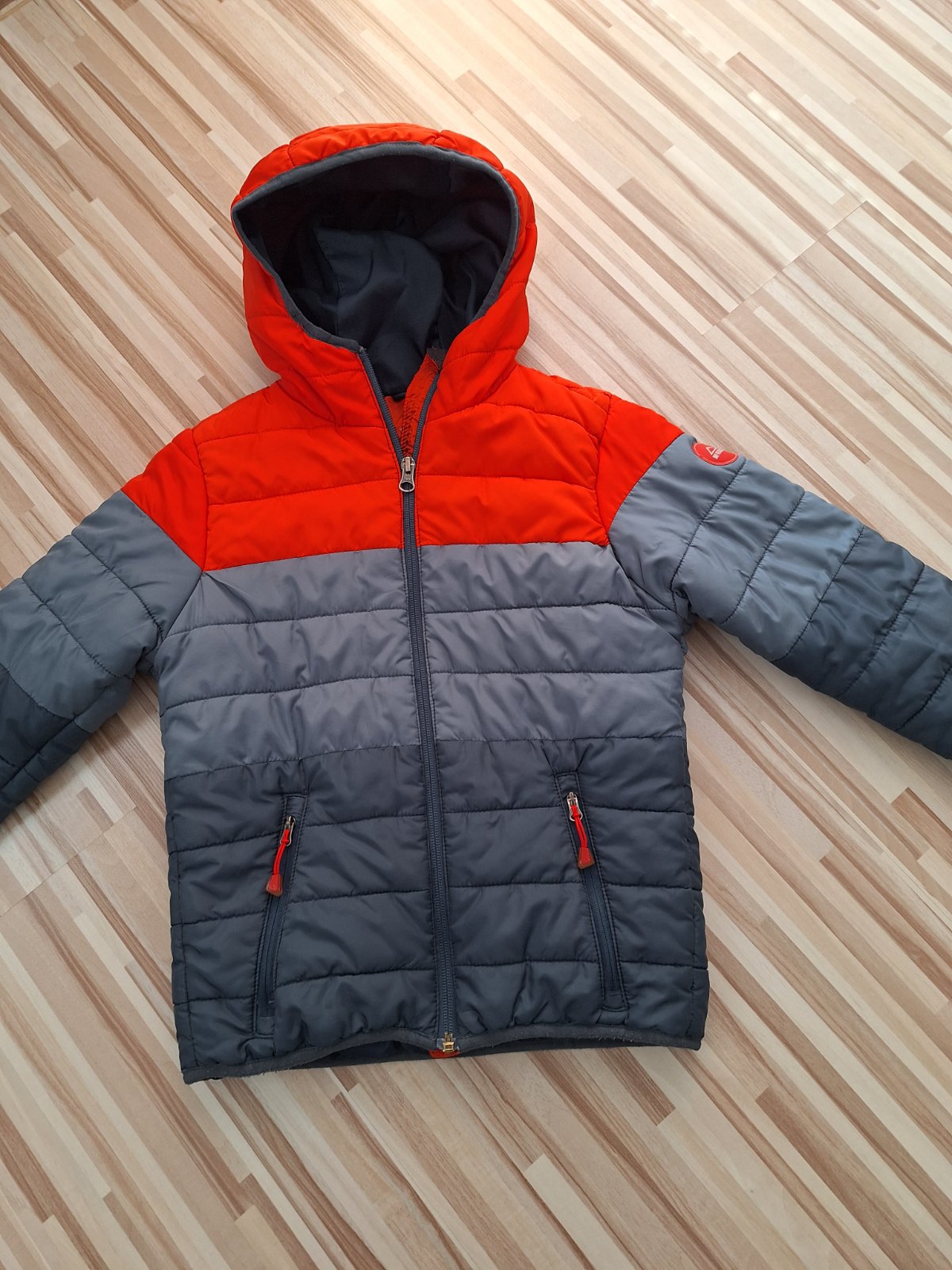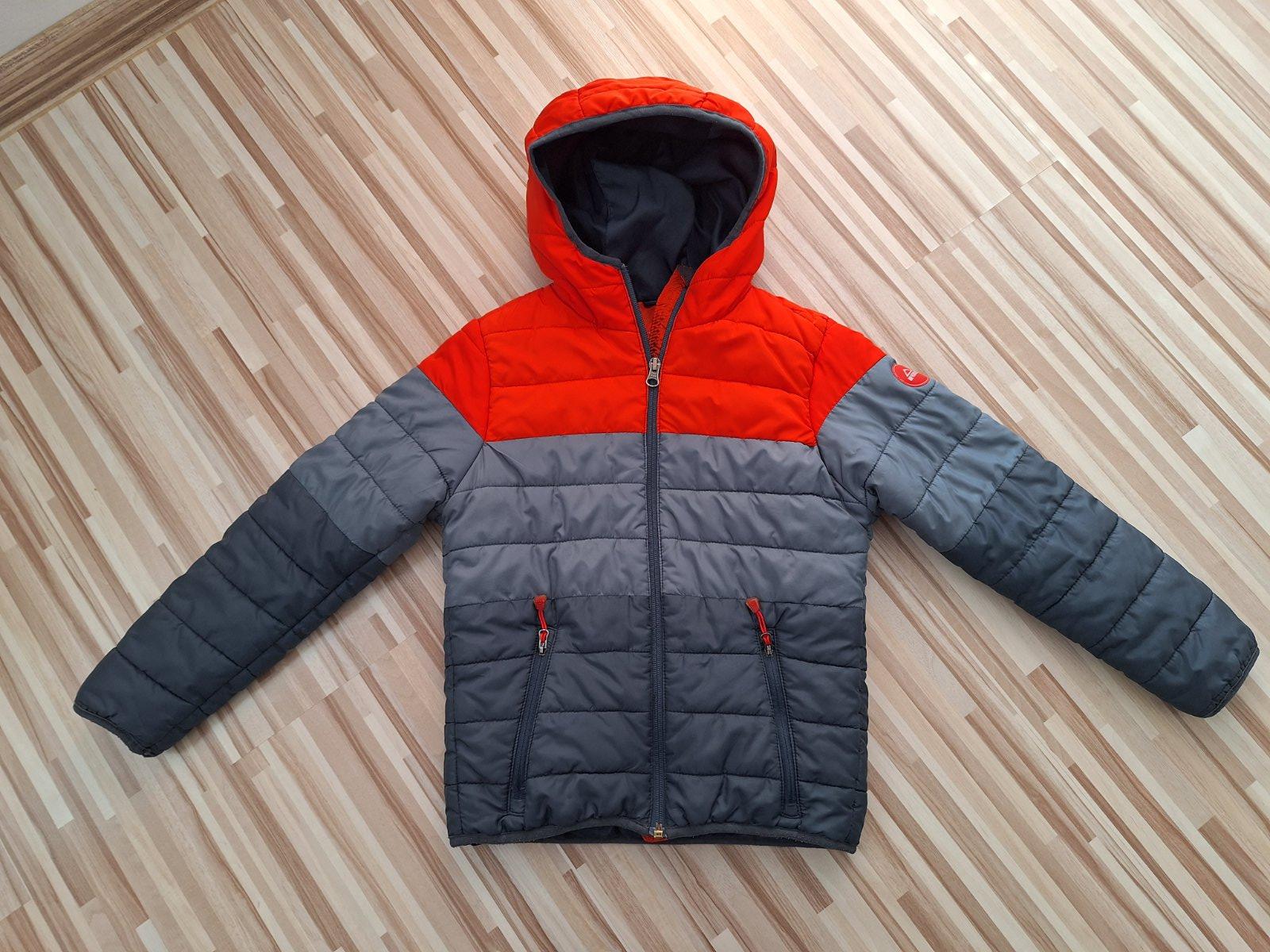 Dobrý nosení stav bez dier fľakov.Na lemovaní žmolčeky ináč pekná. Zipsy fungujú výborne má 2x funkčné vrecká.