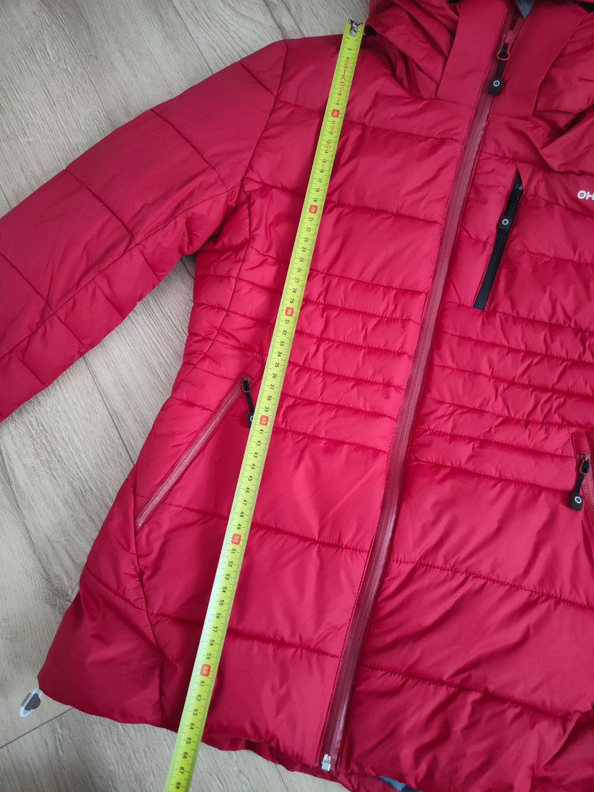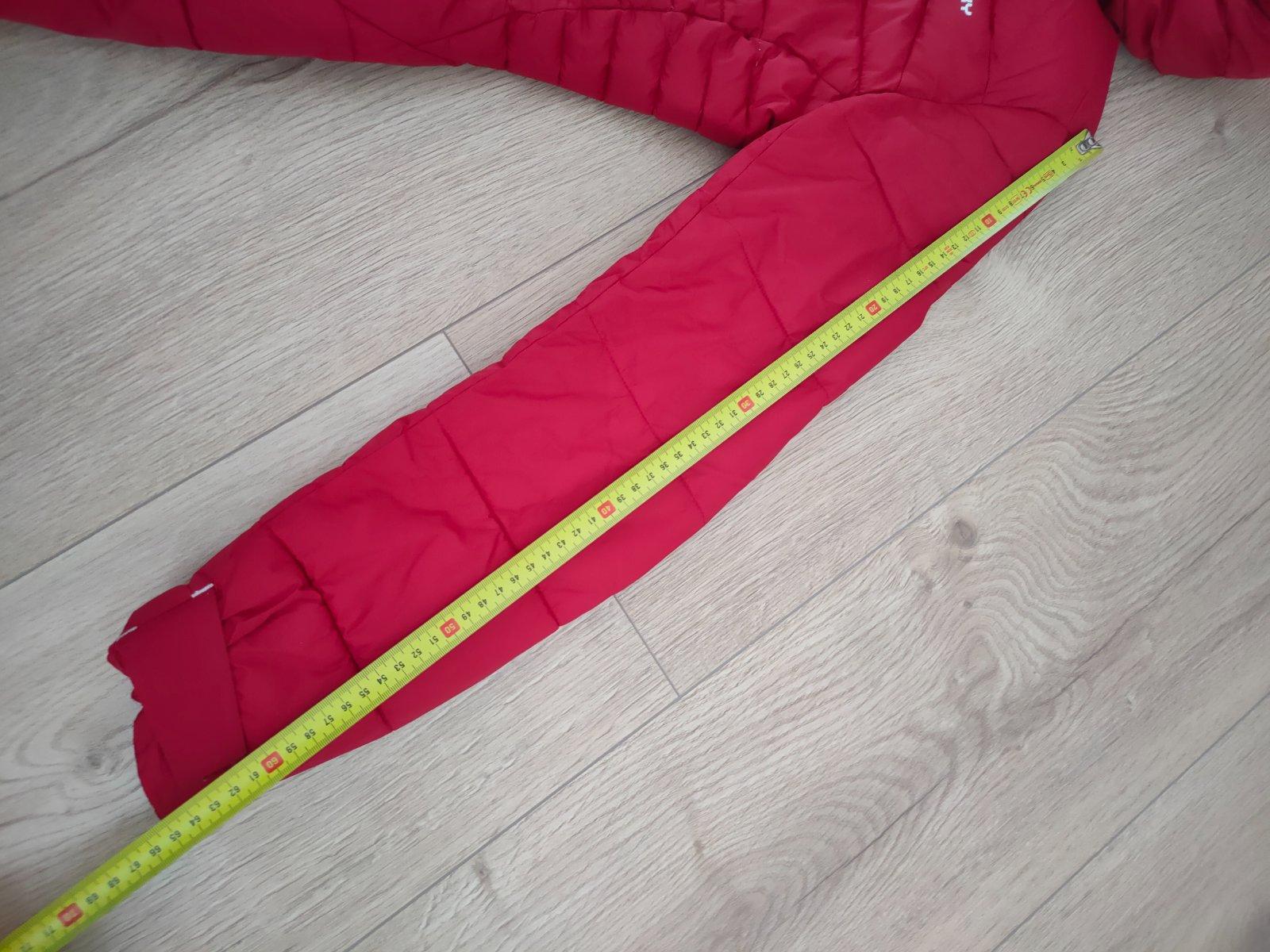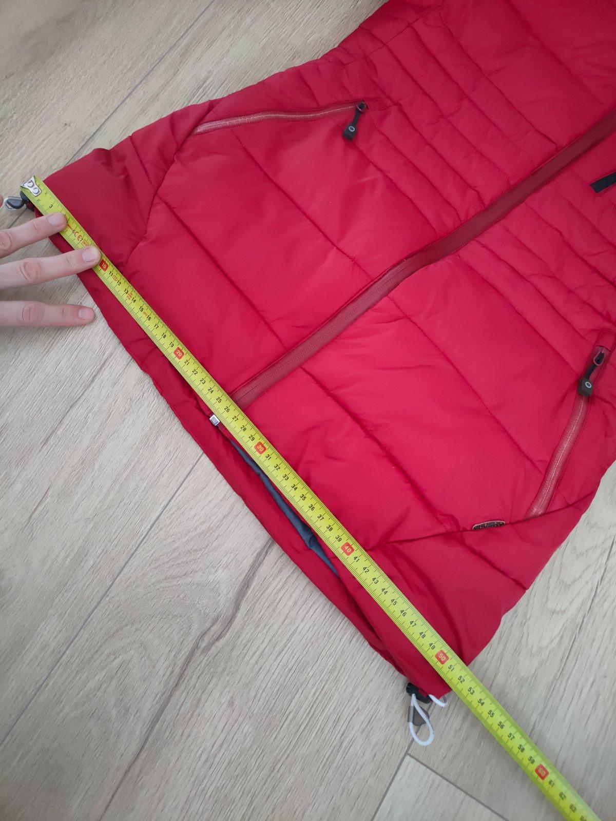 Uzasna, teplucka bunda s vyplnou:husie perie, velkost M, rozmery: dlzka 64 cm zips, rukav 63 cm, od krku cca 73 cm, sirka od pazuch 50 cm. Bunda je nosena, takze vidiet nosenie, na praavej strane ...