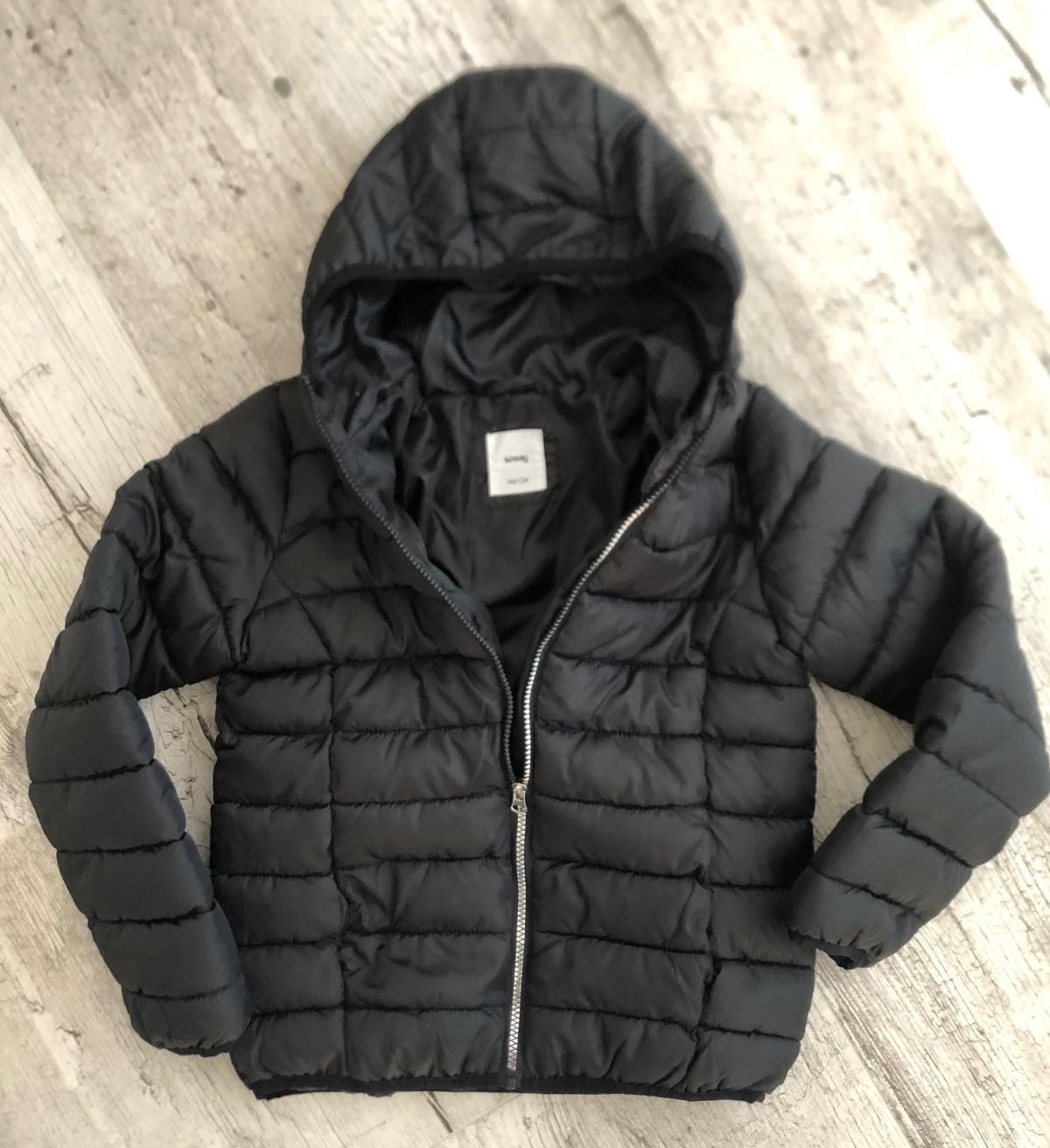 Krásna čierna bunda na zips na prechodné obdobie jeseň alebo jar Veľkosť je 146 na 11 rokov Bunda je v top stave ako nová Dĺžka 53 cm Širka 2x 42 cm Šírka ramien 35 cm Rukáv od ramena 53 cm ...