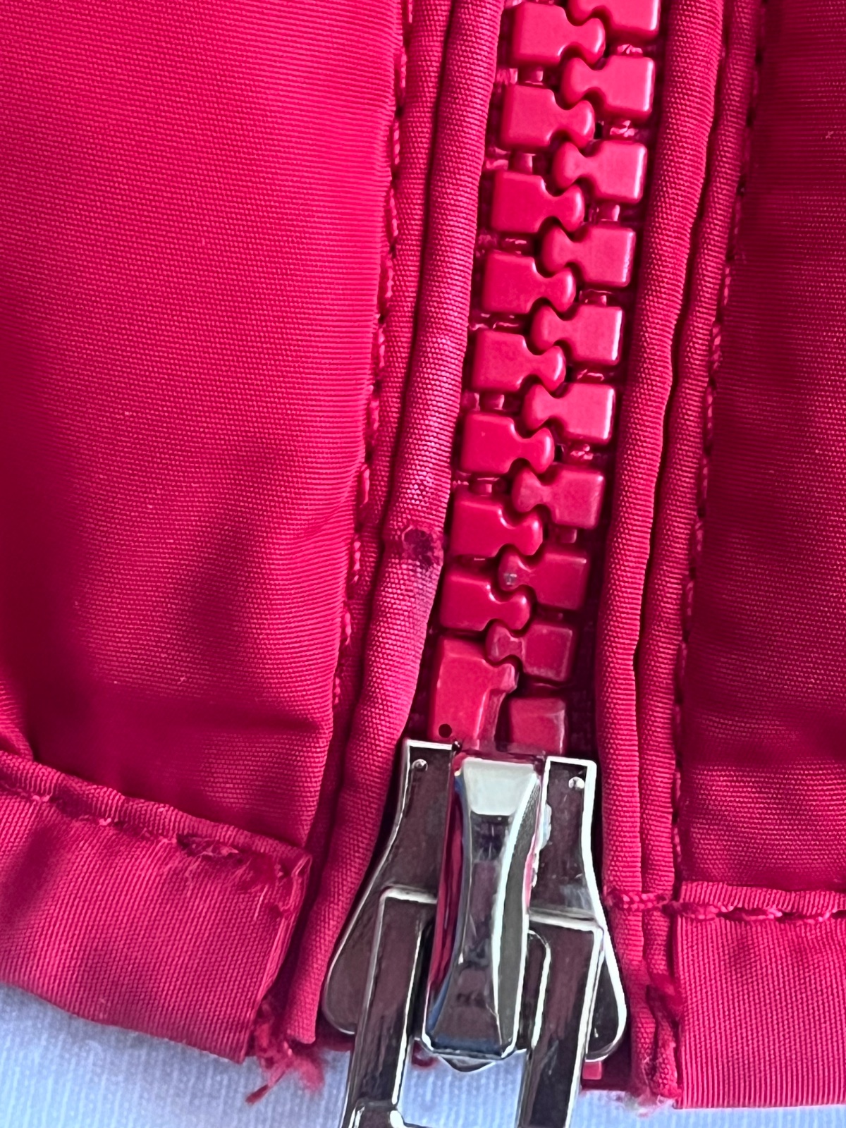 Vetrovka je v top stave,kapucňa sa nedá odopnúť,pekne tvaruje postavu,vnútro teplý plyš,na patentoch sem tam žmolky,pri zipse dole je mini dierka,ktorú nie je ani vidieť pri nosení (viď foto),objednaná z Trendovo.