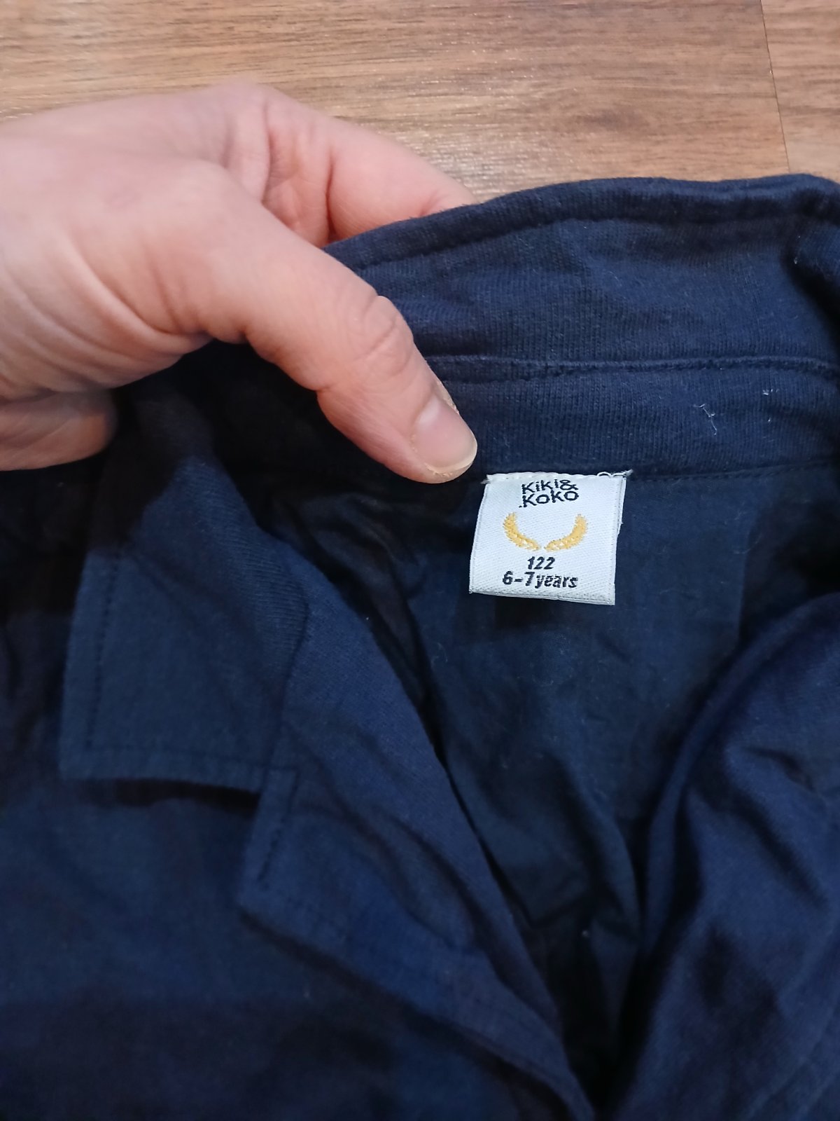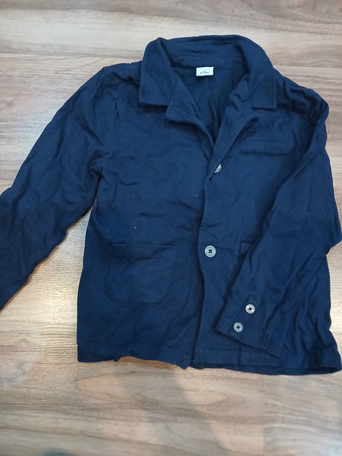 Prechodný kabátik,málo nosený vyzerá ako nový.tmavomodrý so sivou kapucňou. Kabátik je na zips,vpredu dve vrecká,dĺžka 48cm,dĺžka rukáva od krku 47cm, obvod pása 75cm.vek 4-5 rokov.