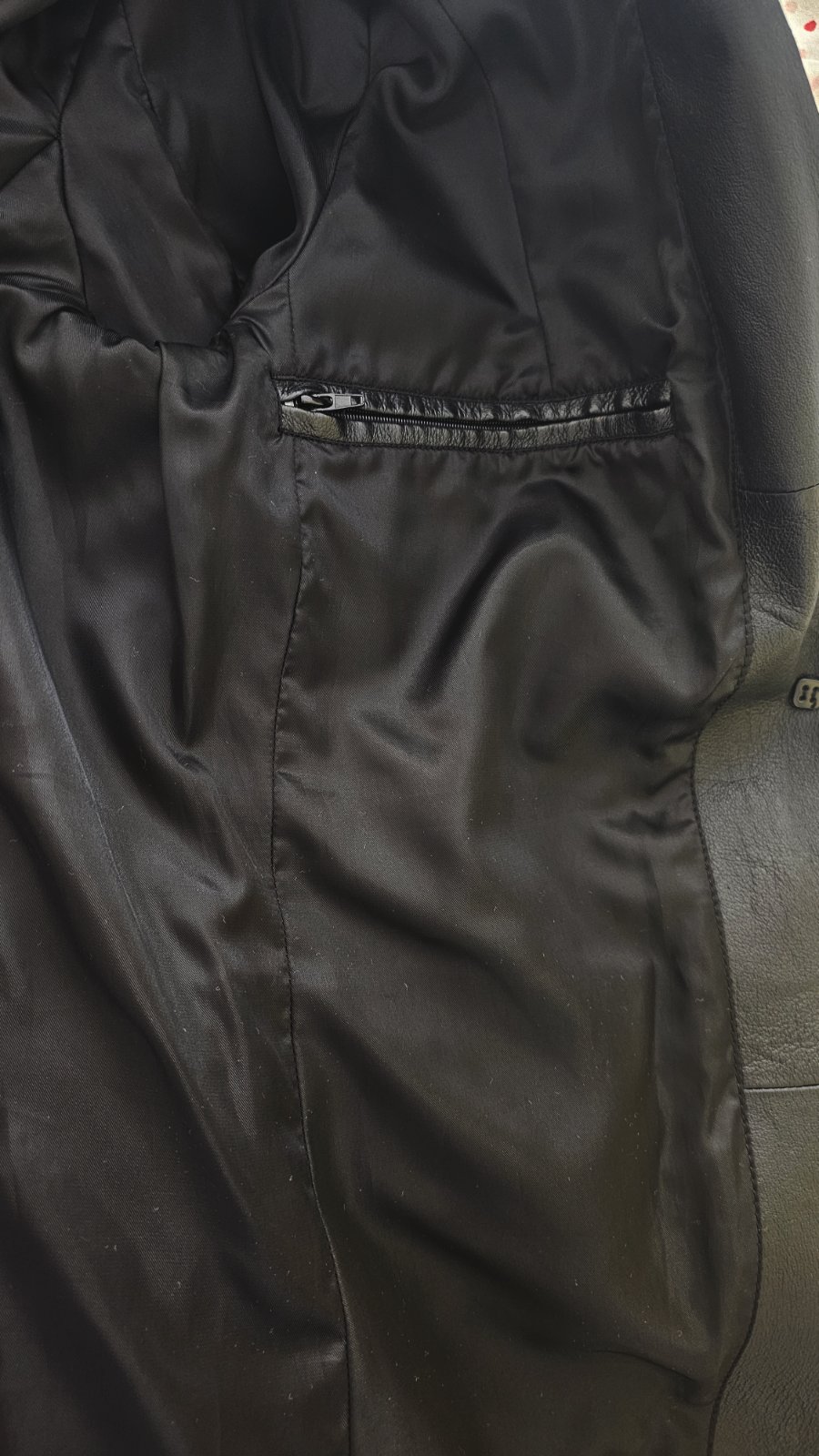 Výborný stav. Dĺžka 80 cm, dĺžka rukáva od pleca 62 cm, šírka v hrudníku 48x2 cm. Materiál umelá koža s podšívkou.