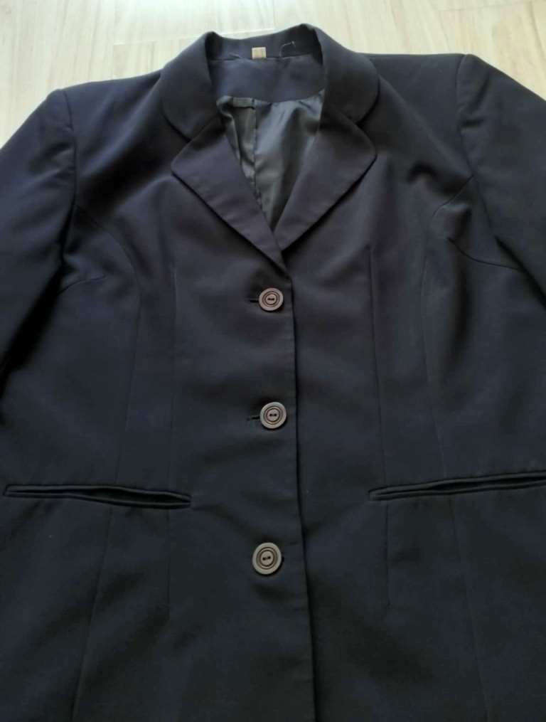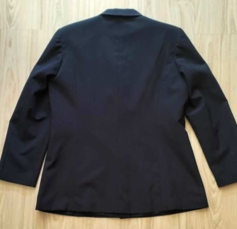 Ponúkam dámske sako, tmavo modrej farby s dvomi vreckami a so zapínaním na tri gombíky.