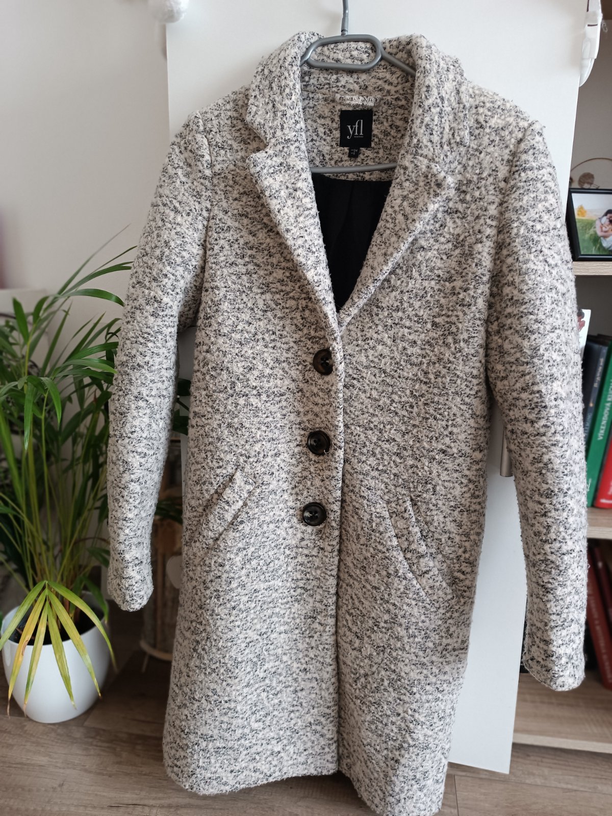 Vlnený Krásne vypracovaný Dĺžka do pol stehien (84cm) Šírka cez pazuchy (zvnútra) 49cm Rovný strih Vnútorné vrecko Farba camel ako na poslednej foto Potrebné oprať Bez poškodení
