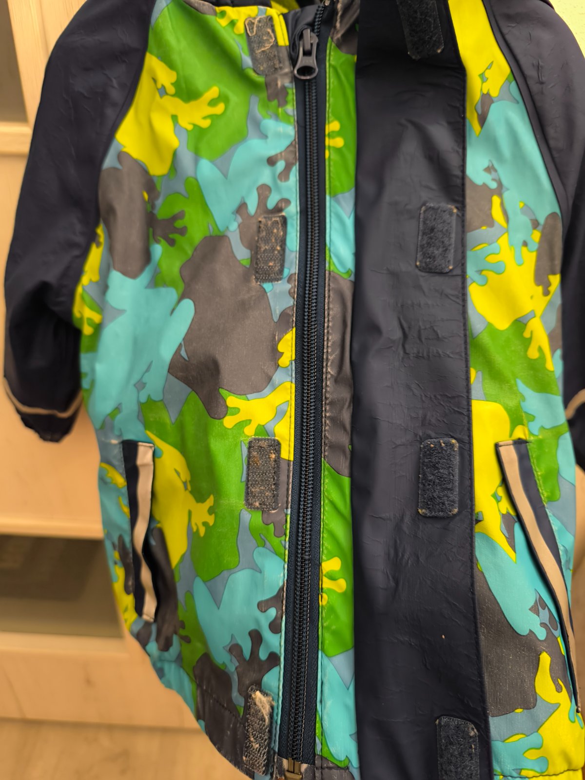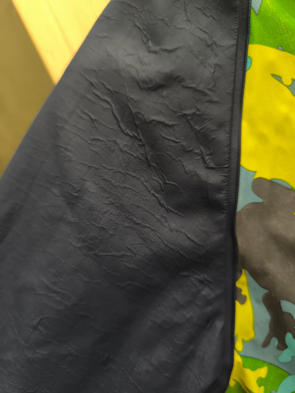 Stav bundy na fotografiách, popraskaná, ale nie deravá. Stále spĺňa účel. Ale skôr na dvor.