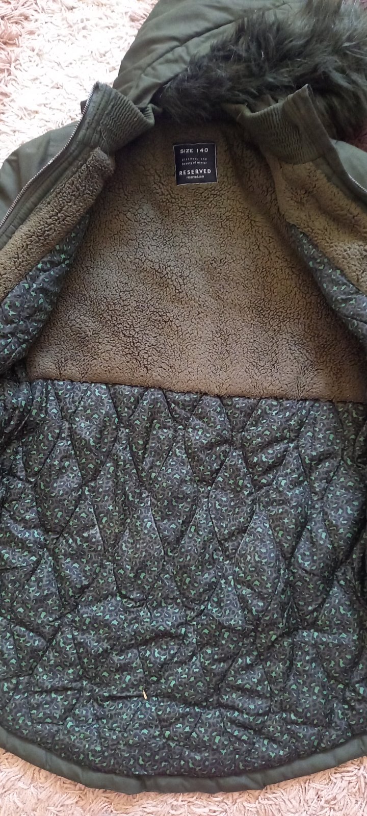 Pekná teplá dievčenská bundička asi na 8 rokov, zateplená kožišinkou. Veľmi pekný nosený stav. dĺžka vzadu 70cm, dĺžka vpredu 62cm, šírka cez pás 70cm, rukáv 50cm.