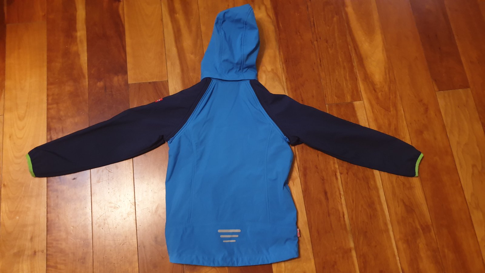 Softshelová prechodná (aj letná) bunda v top stave. Nepremokavá. Rukávy a kapucňa sa dajú odopnúť. Reflexné prvky pre lepšiu viditeľnosť v tme. Miery sú na fotografiách.