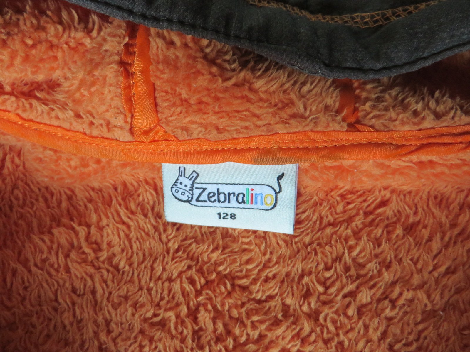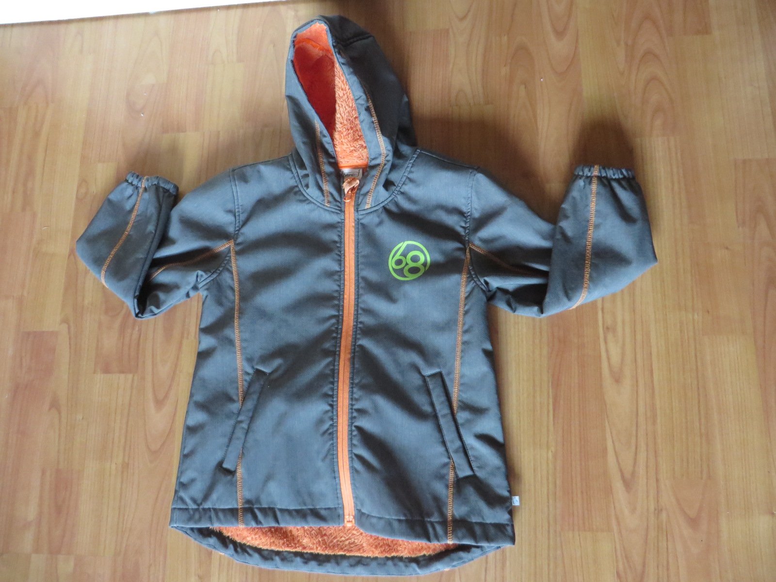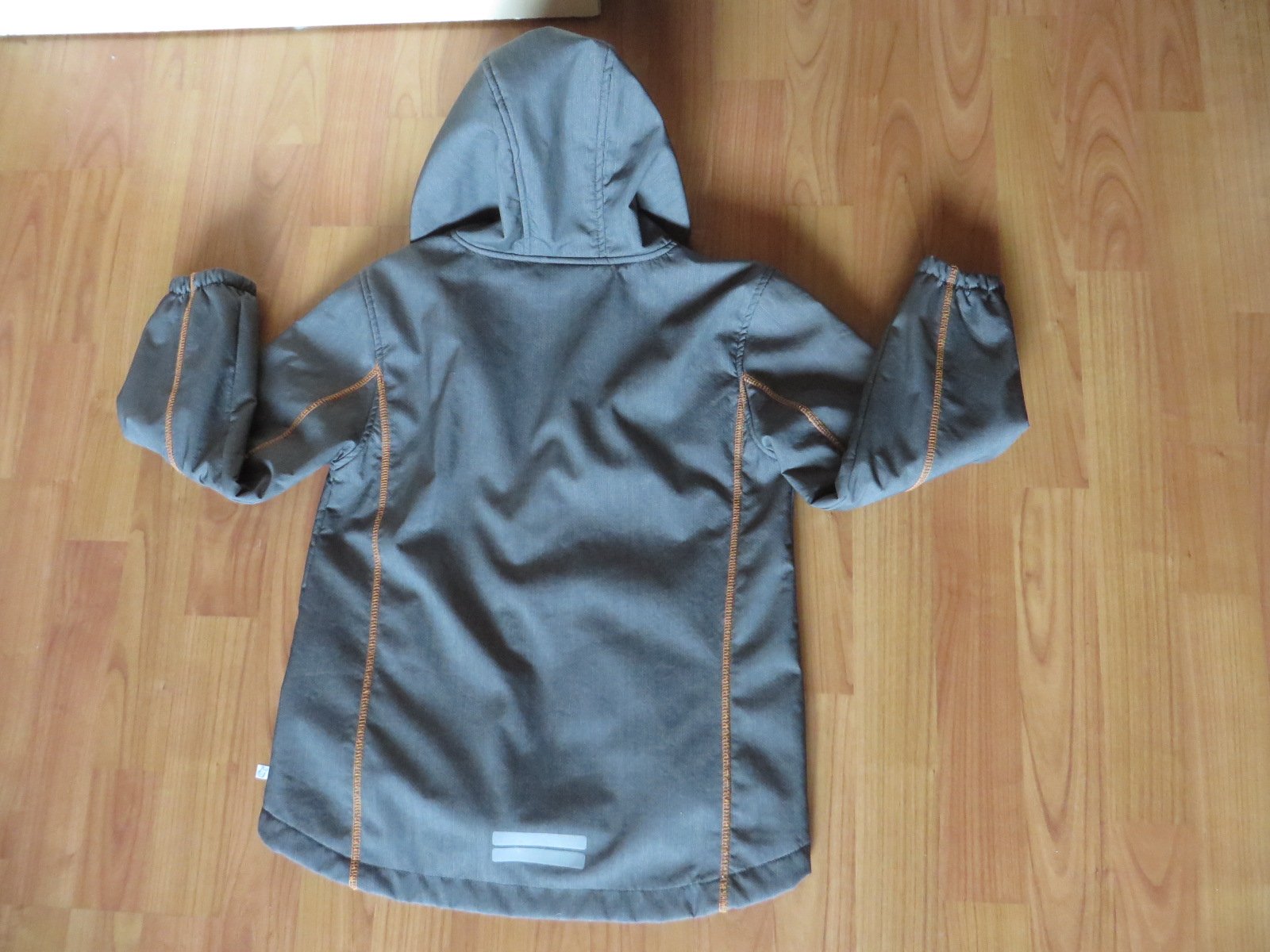 Predám nosenú prechodnú zateplenú bundu. Vrchný materiál je ako keby softshell, nepremokne a neprefúka. Veľmi u nás obľúbená. Vnútro je oranžové, farebne veľmi vhodná nielen pre chlapčeka, ale aj pre dievčatko. Veľkosť 128. Zadný diel je strihaný do oblúka, je teda dlhšia, pod zadok. Bundička má rozmery: dĺžka predného dielu je 53 cm, zadný diel je dlhší a strihaný do oblúka - 58 cm, šírka pod pazuchami je 42 cm, a dĺžka rukávu od krku je 54 cm.