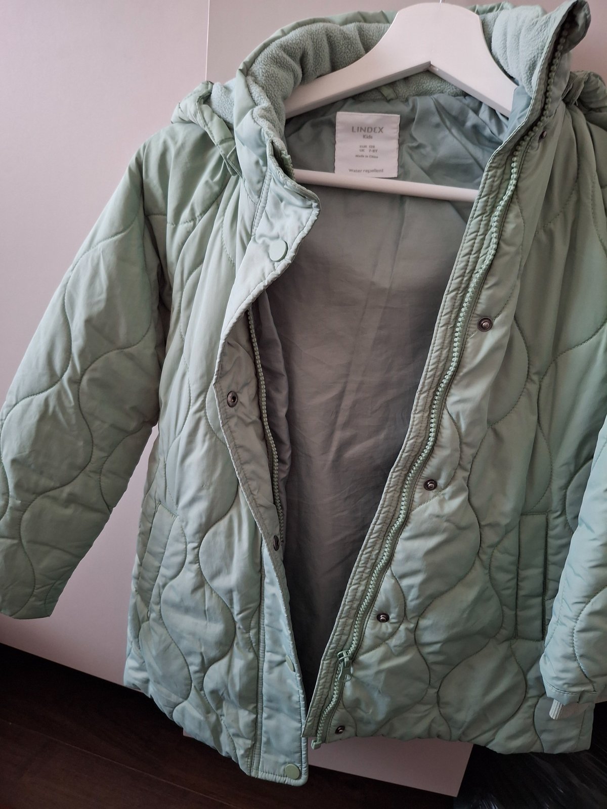 Veľmi zachovalá bunda (dĺžka pod zadok) vhodná na jeseň prípadne slabšiu zimu. Má odnímateľnú kapucňu. Bez poškodení.