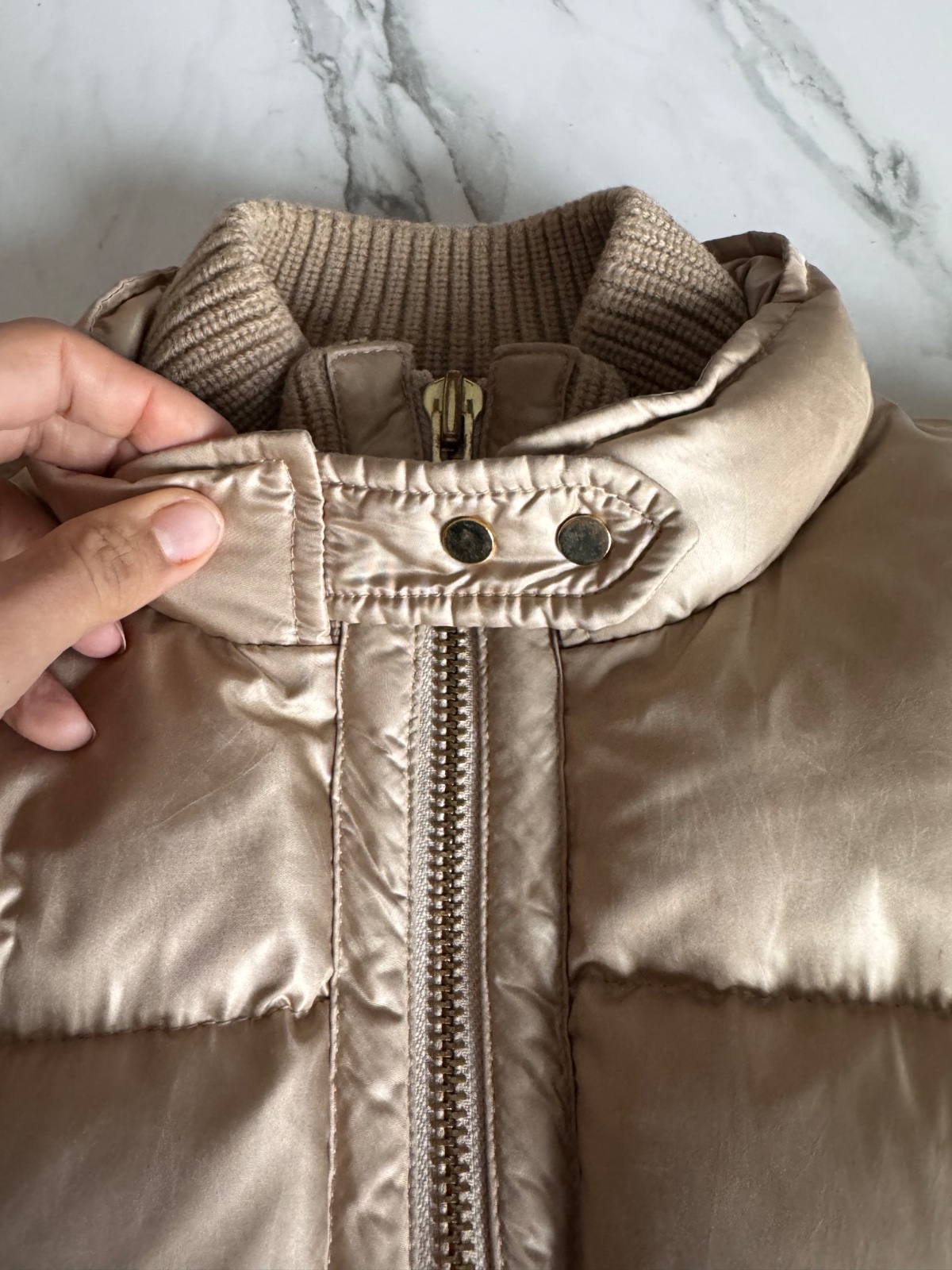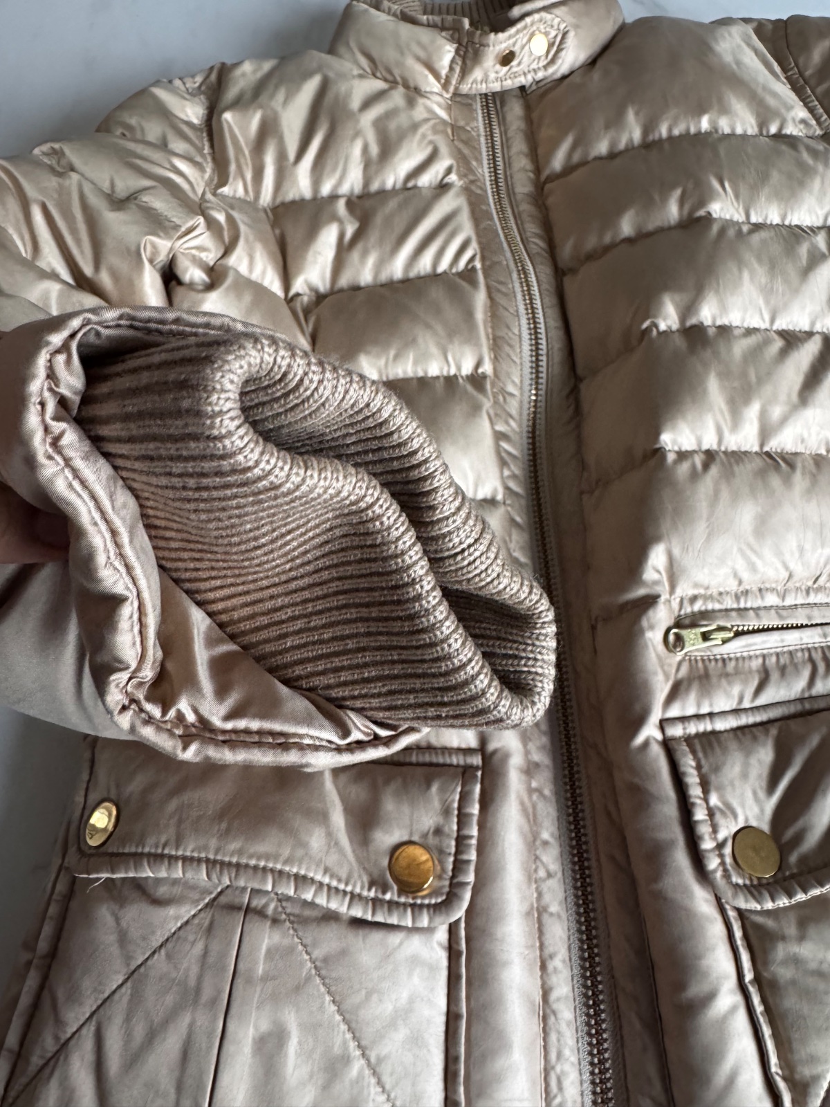 Fay luxusná bunda s kačacim perím v zlatej farbe M
