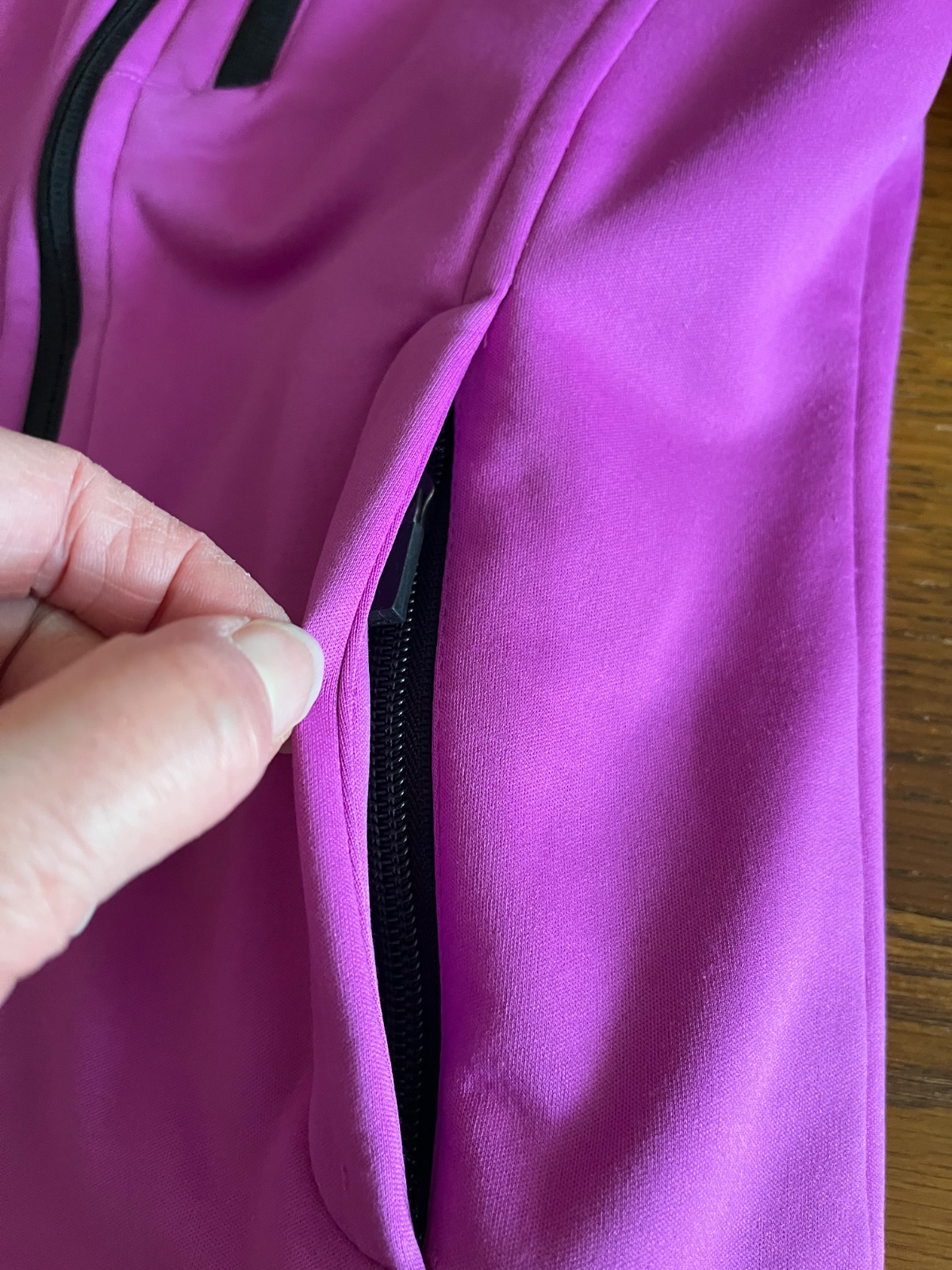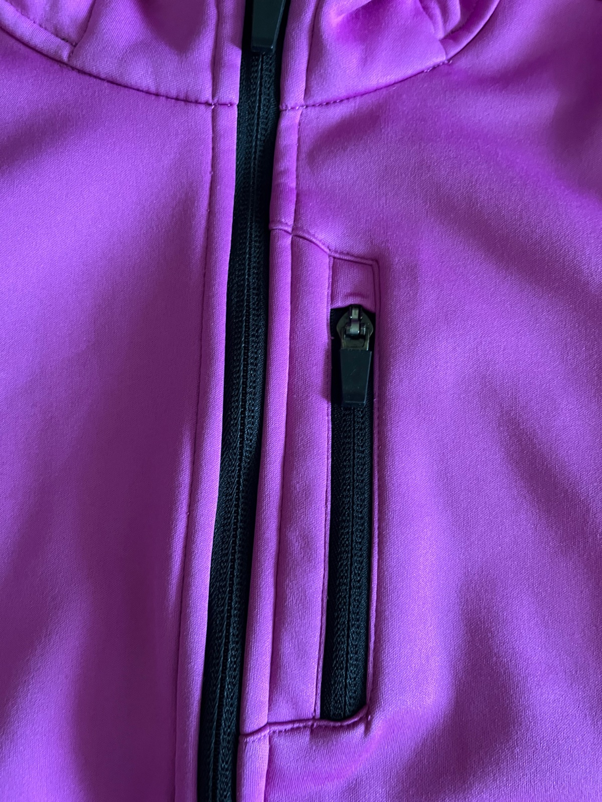 Veľmi dobrý nosený stav, bez fľakov, bez zatrhnutých dierok, akurát plastová regulácia na rukávoch je odlomená, ale dal sa zlepiť nejakým špeciálnym lepidlom. Všetky zipsy sú plne funkčné. Naspodku zvnútra je regulácia na sťahovanie.