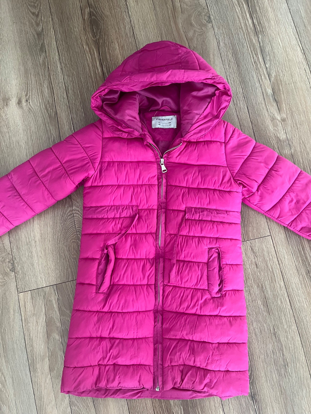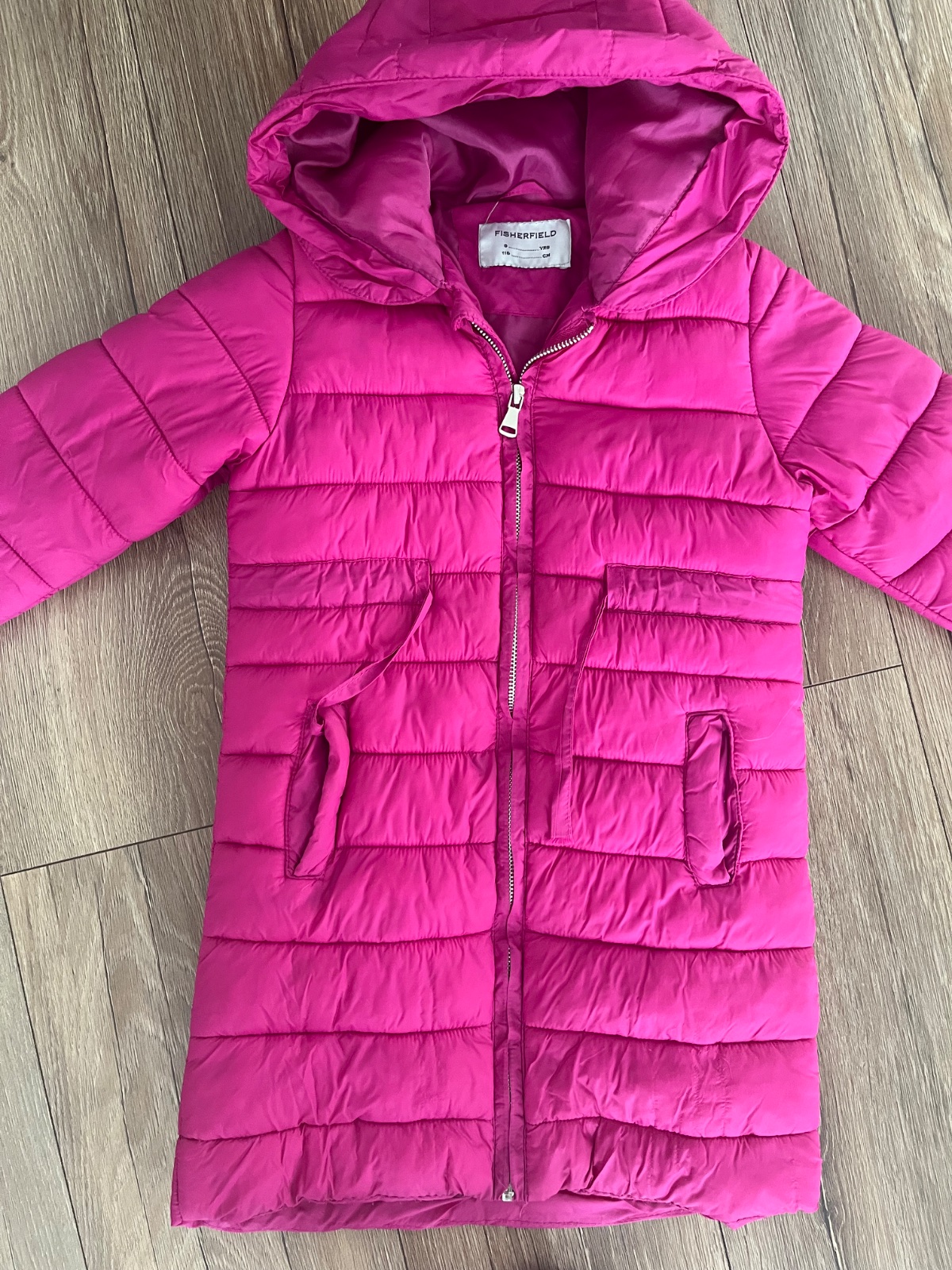 Perleťovo ružová zimná bunda vo veľkosti 116 (6 rokov), používaná, ale stále krásna, bez poškodení. Zapínanie na zips a cvočky, vrecká iba na cvočky, všetko funkčné. Cena 6 € plus pošta alebo osobn...
