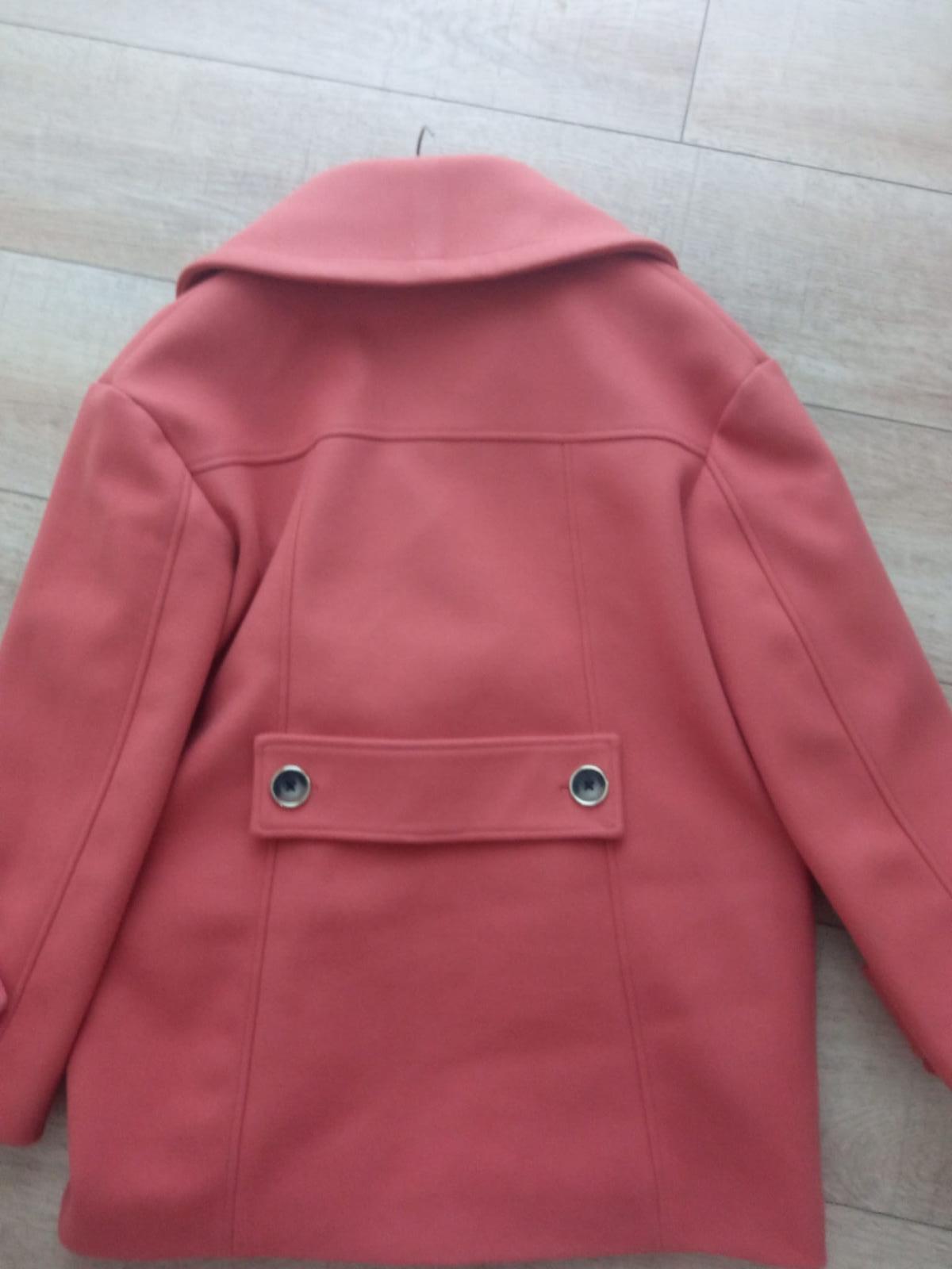 Ponúkam na predaj v top stave kabátik lososovej farby, veľkosť.xs. bez zapínania, v páse na viazanie. Cena 15e+ poštovné prevodom 3e doporučene