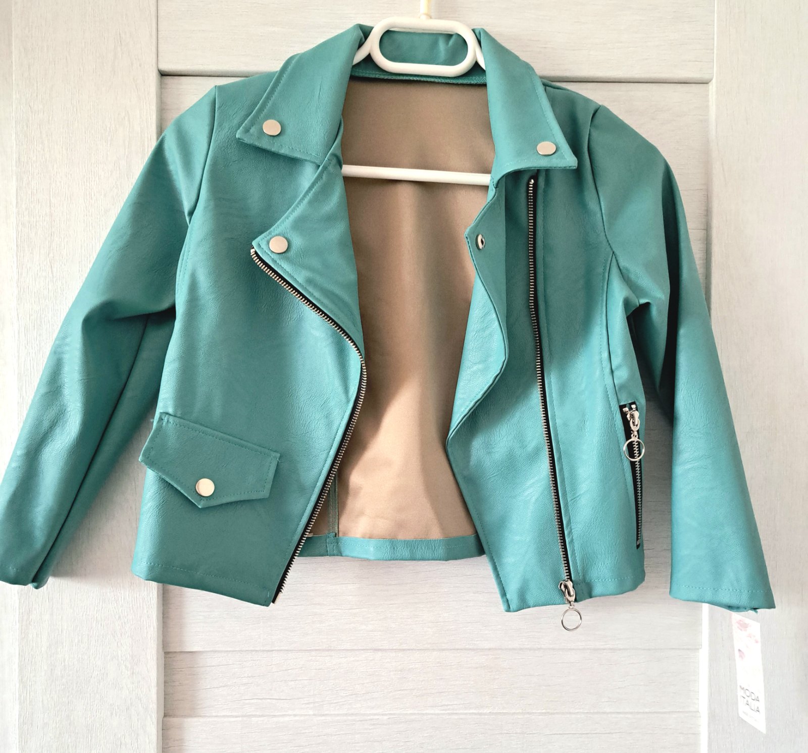 Predám peknú zeleno-tyrkysovu bundu, nenosenú (dostali sme žiaľ v nevhodnom čase a žiaľ sme potom na ňu pozabudli). Bundička je tenšia ale podšitá tenkou sakovou látkou, v top stave. Cca veľkosť 134-140. Je síce písaná na 10r., ale na 10r. je už malé. Zn.Moda Italia. PC bola 22,80 EUR