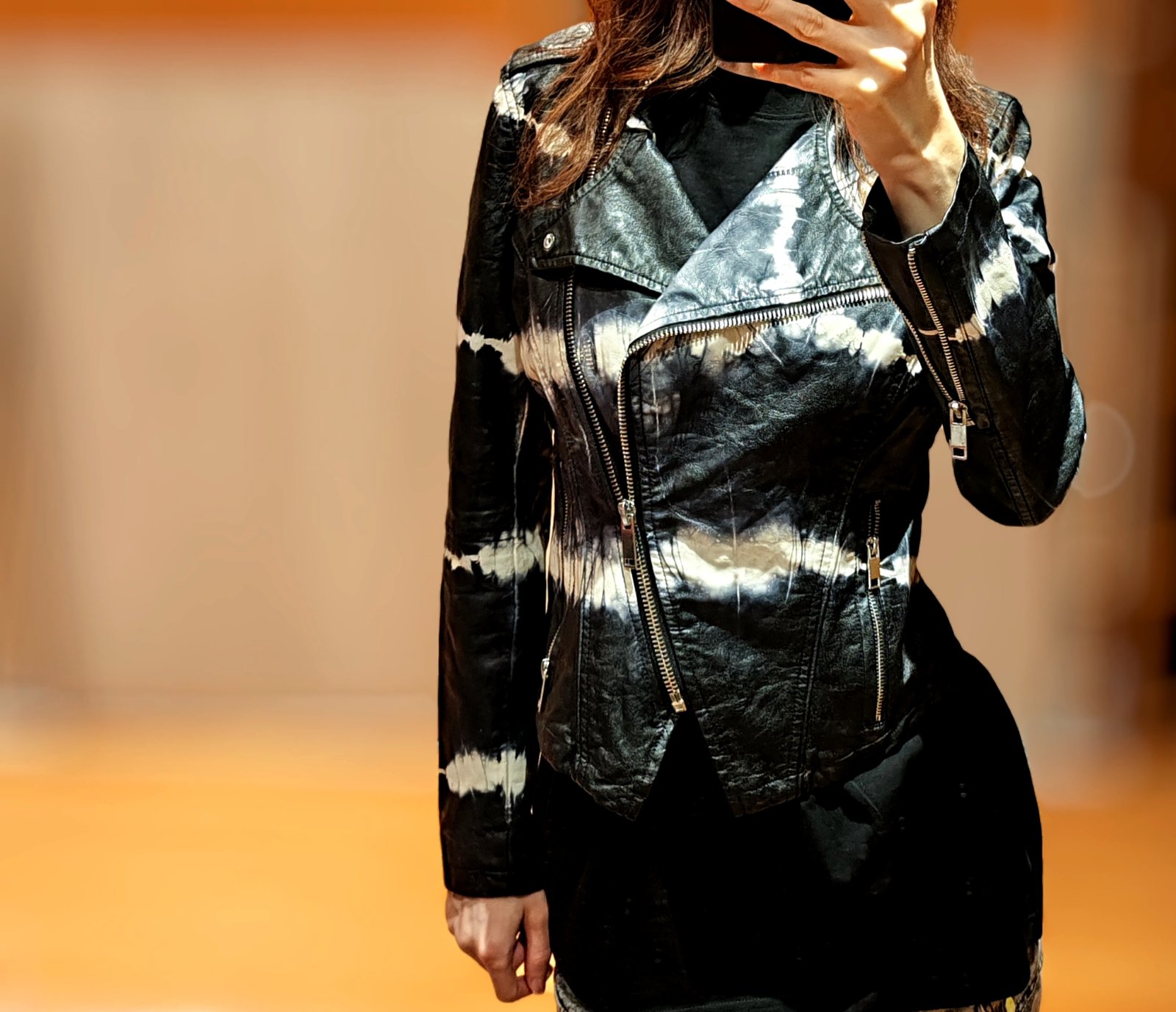 Zaujímavá koženková bunda, veľkosť XS.