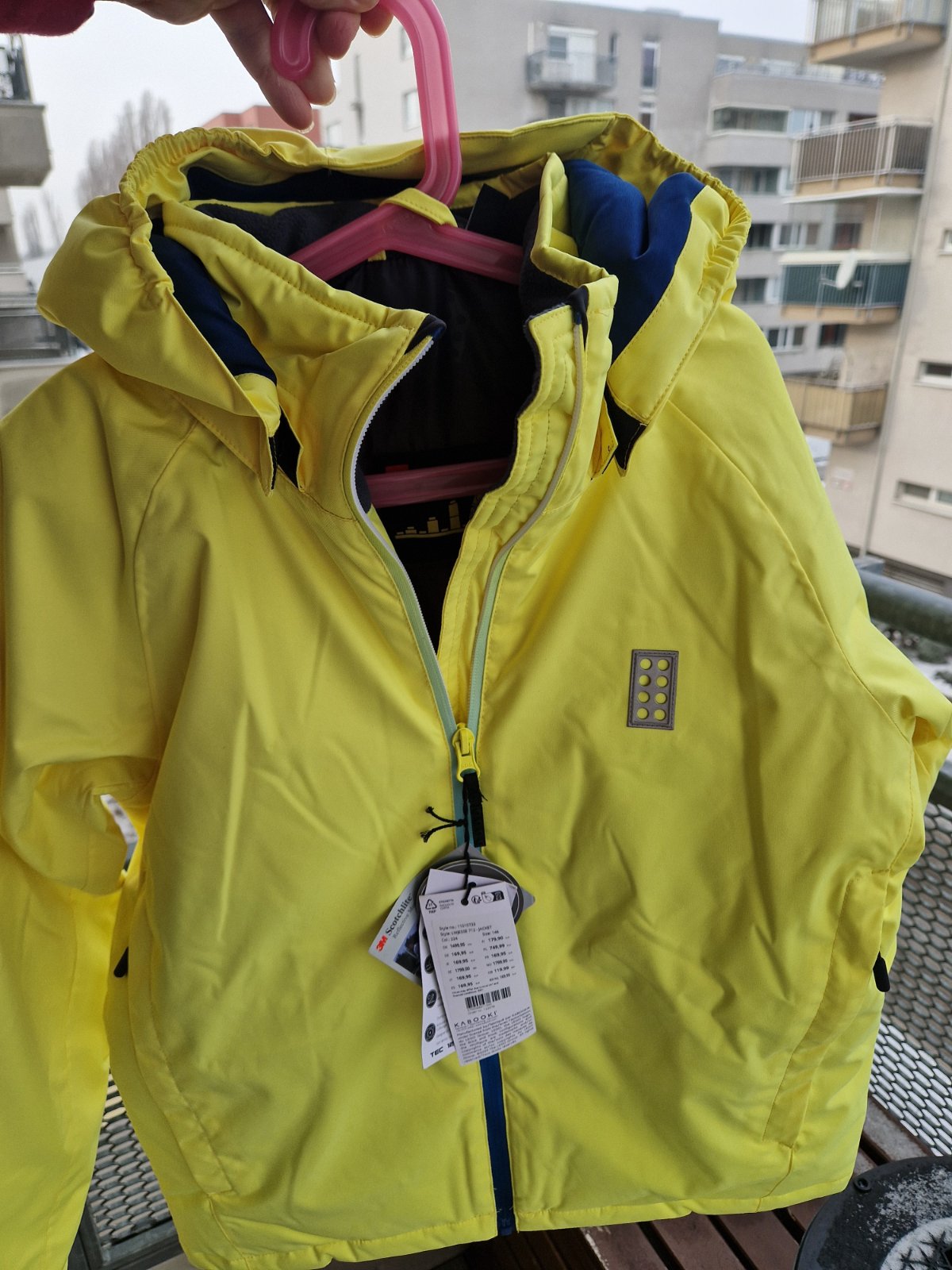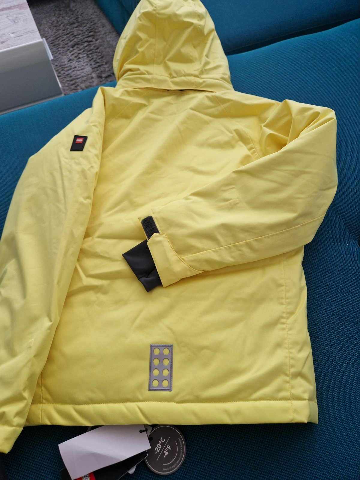 Nova lyziarska bunda Lego tec. Farba je syto zlta.