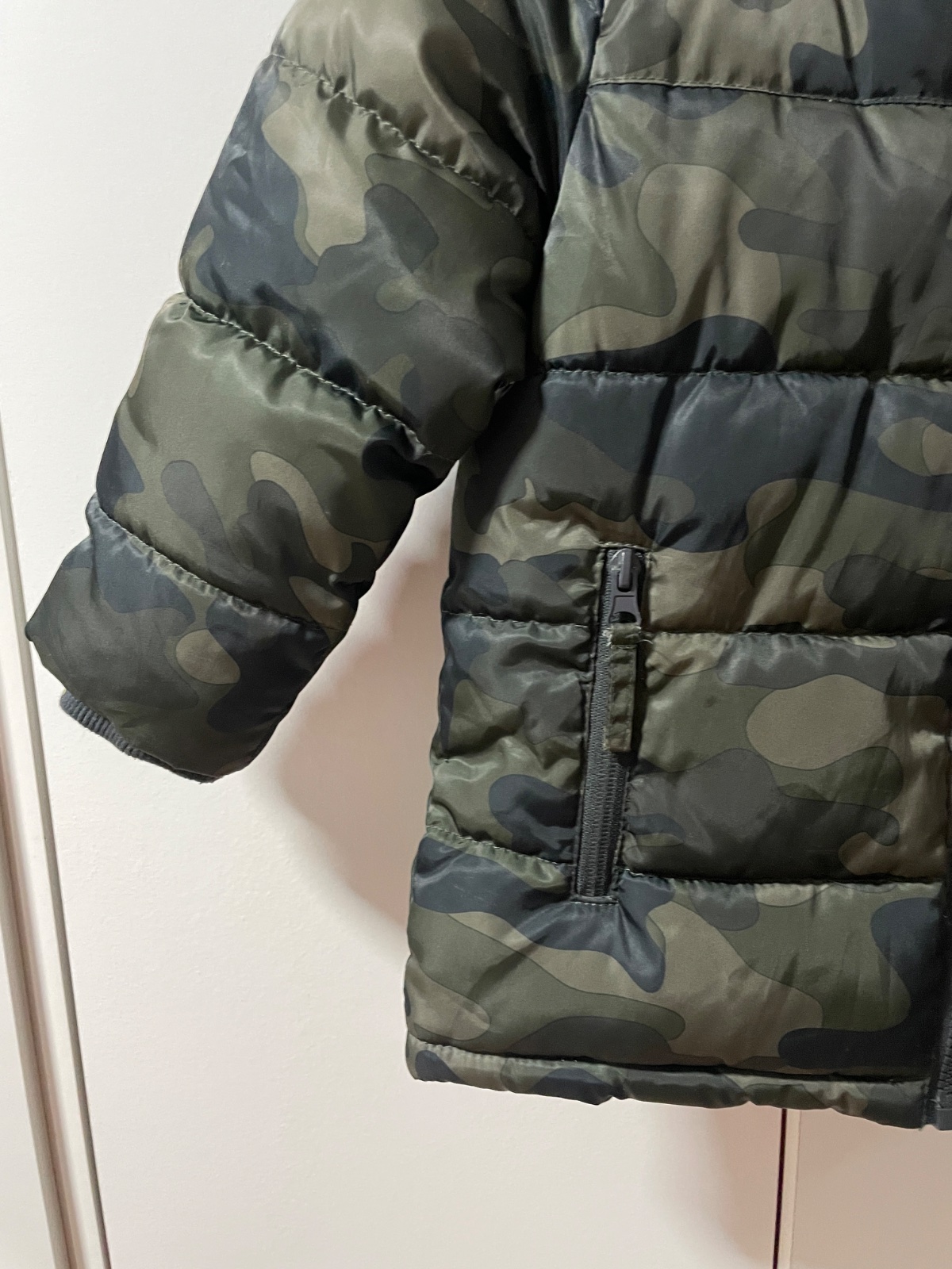 Super tepla zimna bunda veľkosť 104. Celkova dlžka 48cm. Rukav od ramena 36,od krku 43cm plus vnutorny patent.