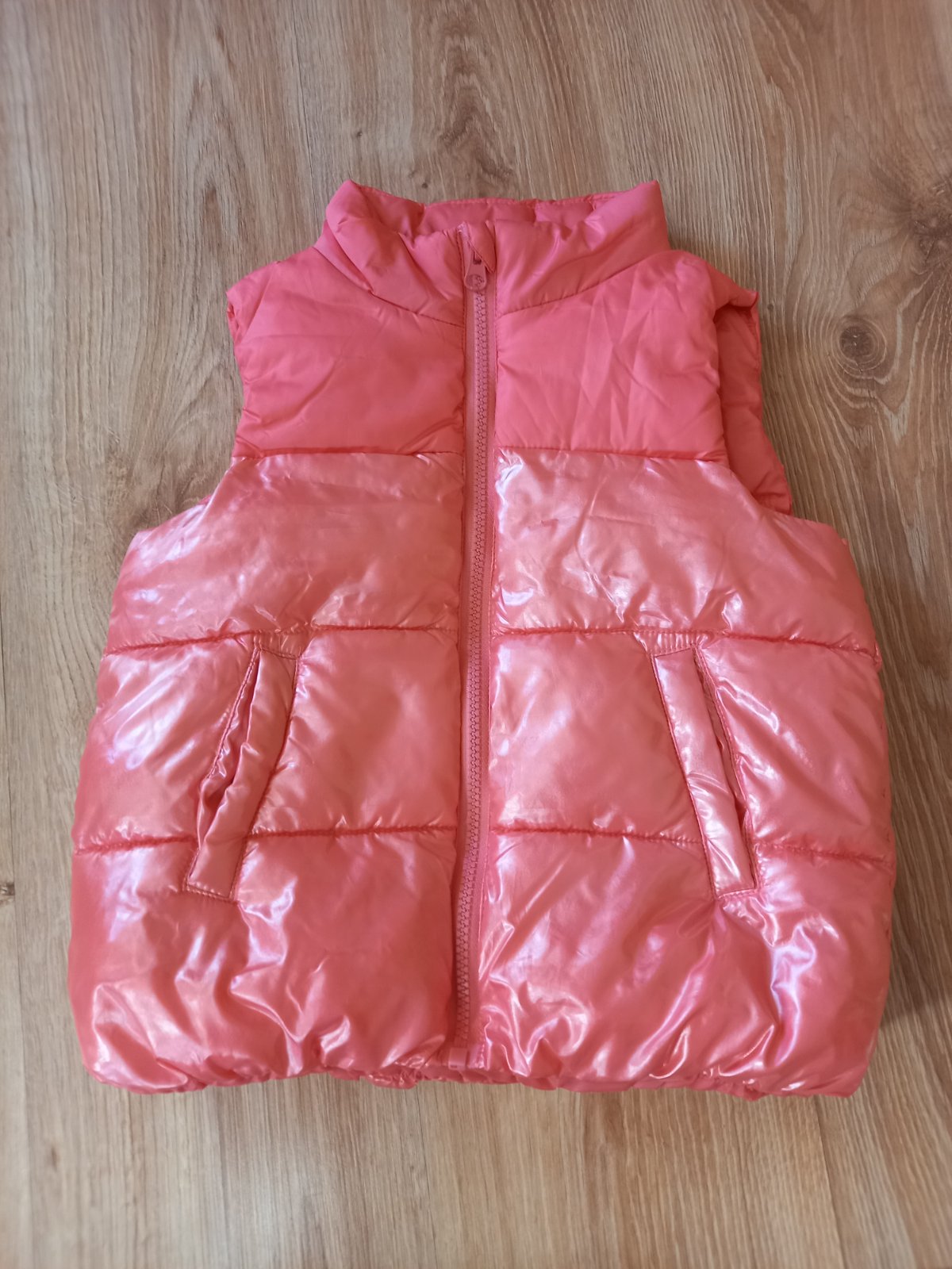 Ponúkam na predaj dievčenskú vestičku. Farba už nie je taká sýta, ako keď sme ju kúpili, praním už farba zbledla. Aj na modrých lemoch sú žmolky. Bežec na zipse je ošúchaný. Píšu na nej veľkosť 116...