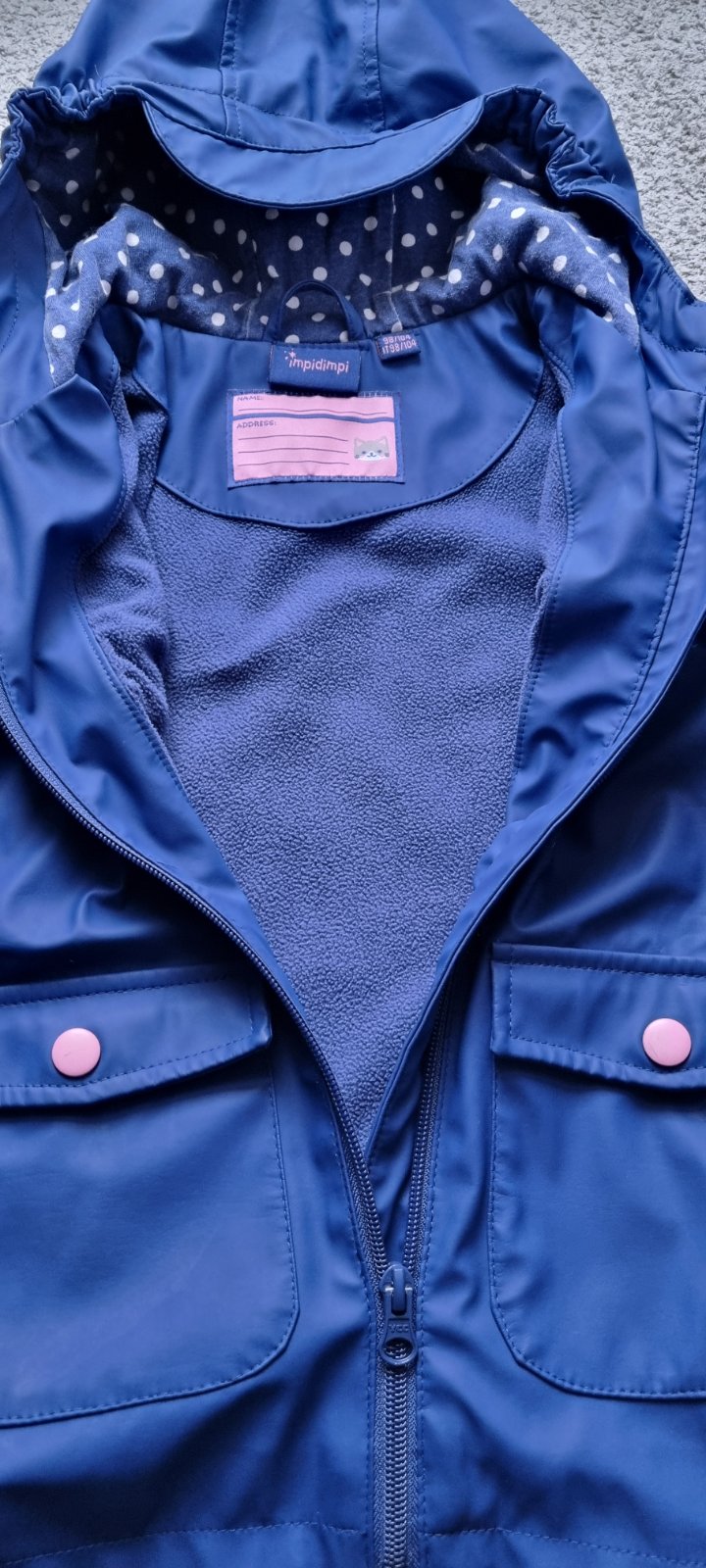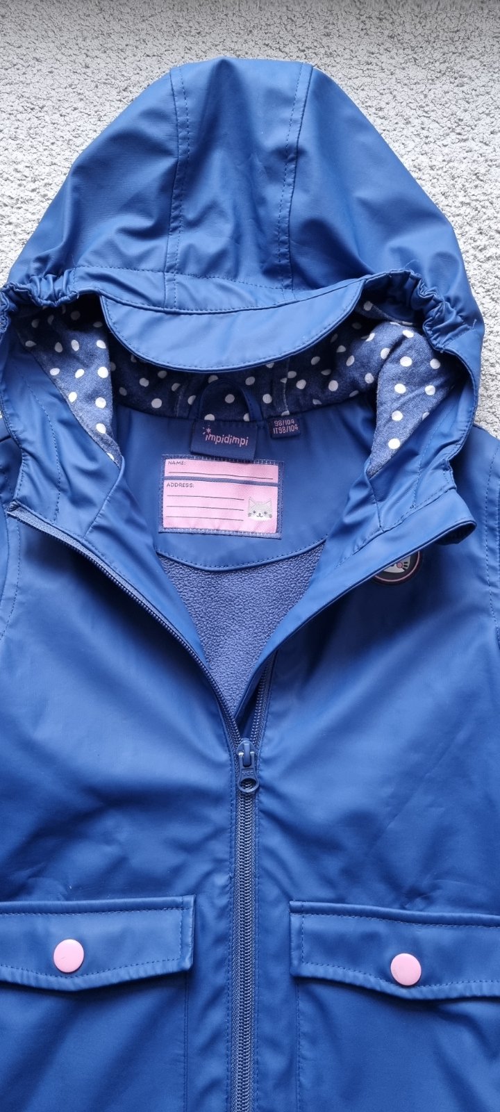 Bundička po neterke, kupovaná v Holandsku zn. IMPIDIMPI, veľkosť 98, strih na štýl paletka. Stav bezchybný, s kapuckou. Cena 4,90 €.