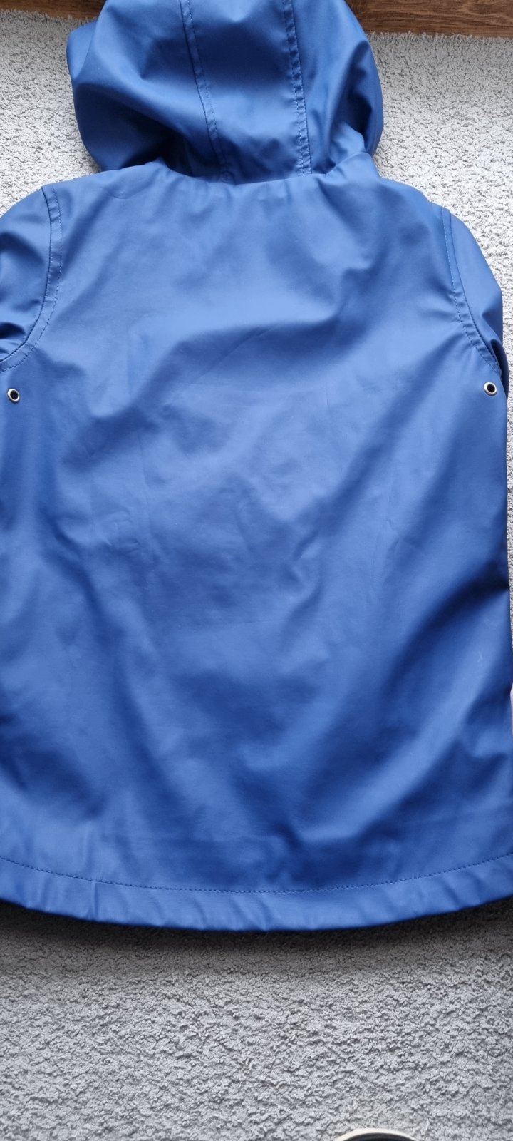 Krásna,nosená bundička s kapucou,ktorá sa dá schovať.V predu má fliačik a na chrbatiku je trochu zatrhnutá,ale ďalej to nejde /foto/.Pri nosení to vôbec nevidno