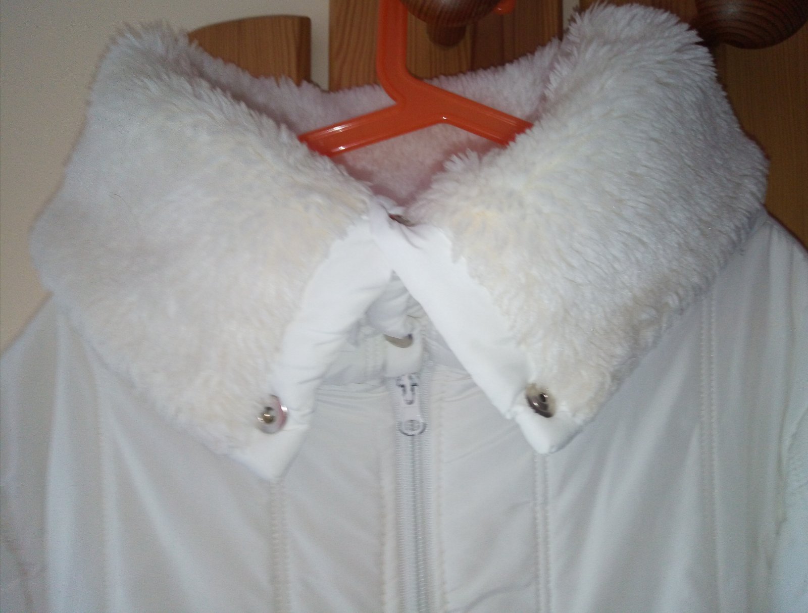Bundička s kožušinovým golierom, dá sa nosiť aj zapnutá ako stojačik.