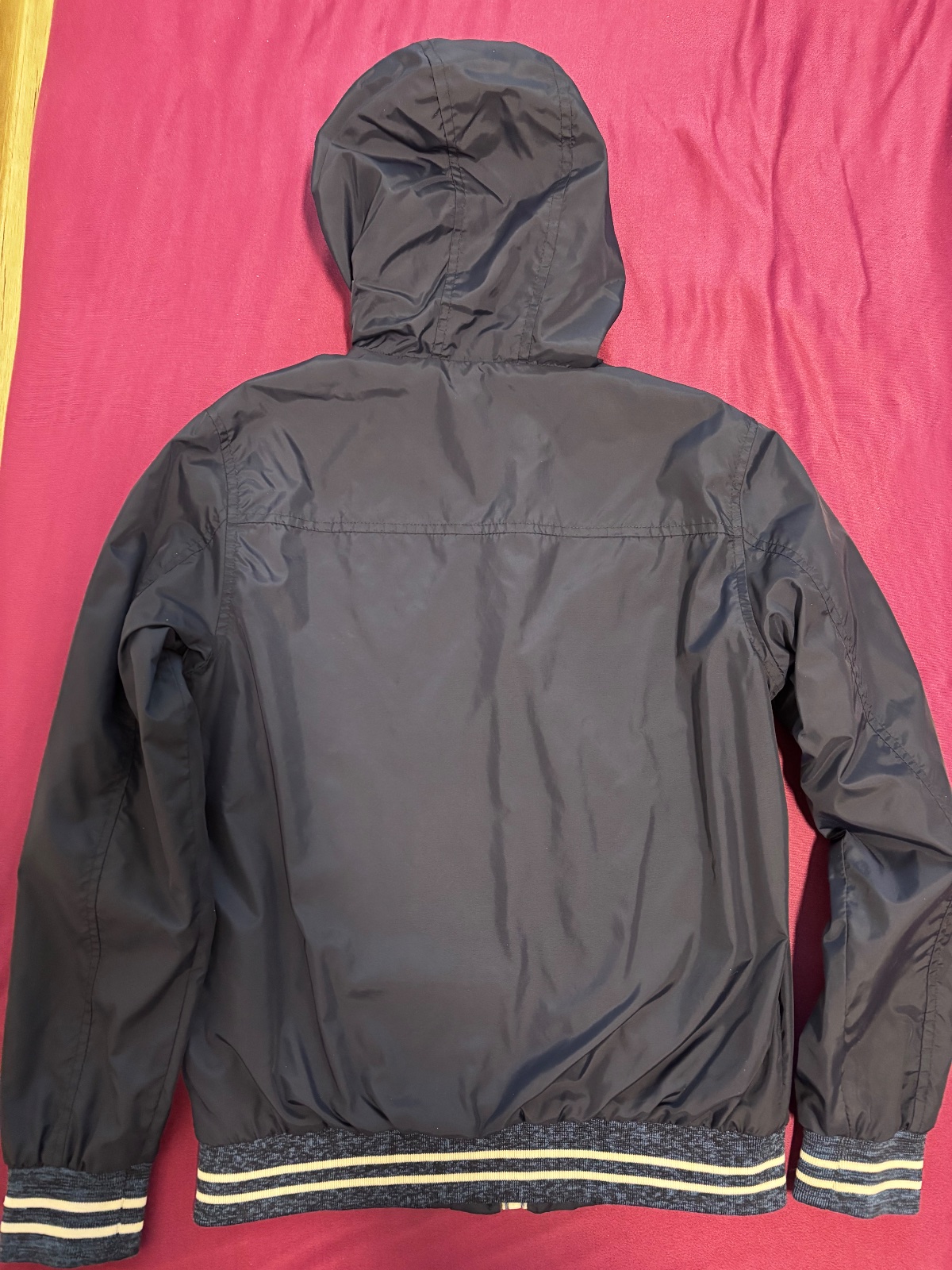 Vetrovka vo velmi dobrom stave, bez poškodenia, podšita látkou, na prechodne obdobie. Dĺžka 57 cm, šírka 45 cm, rukáv od kapucne 66 cm.