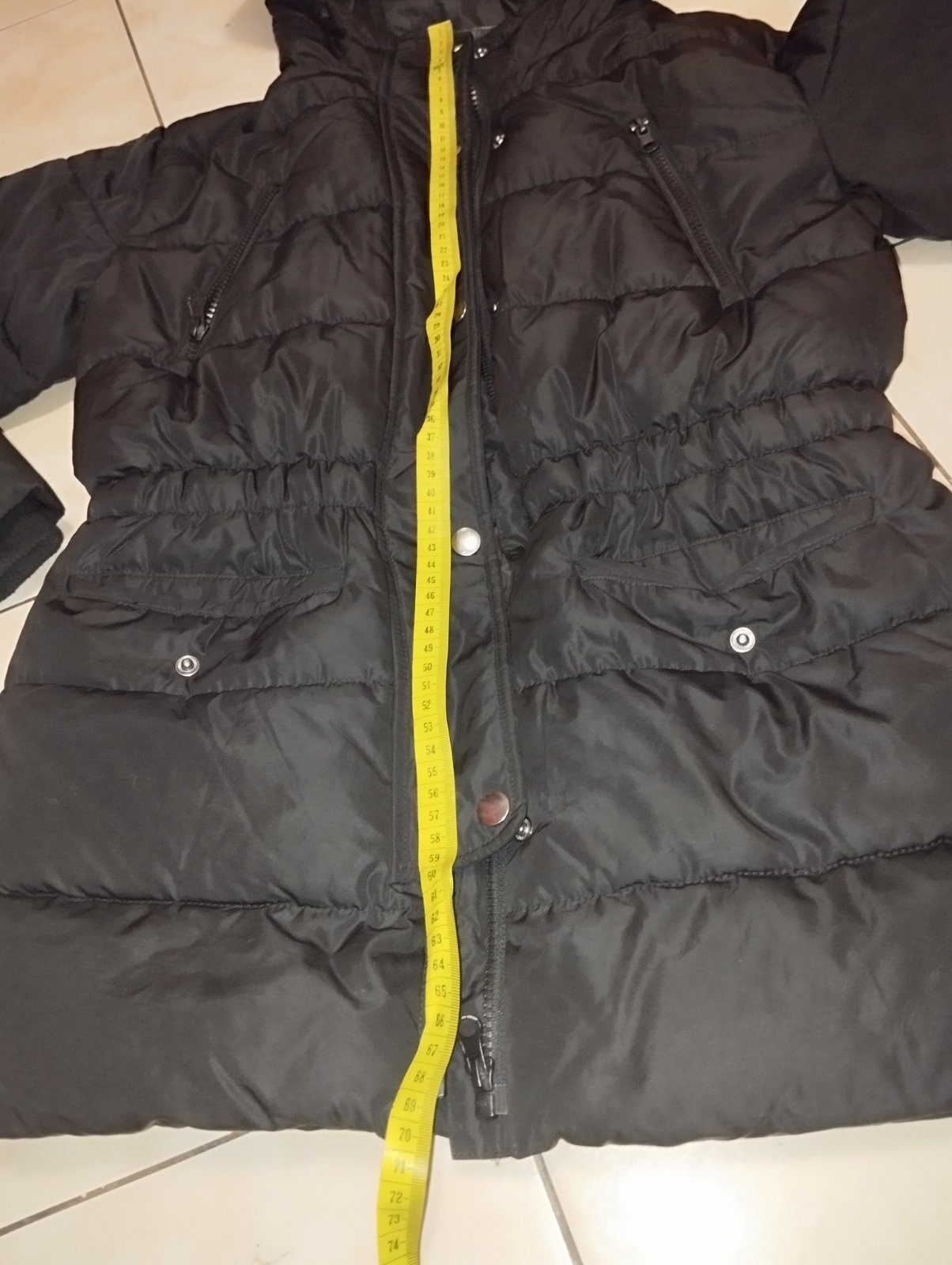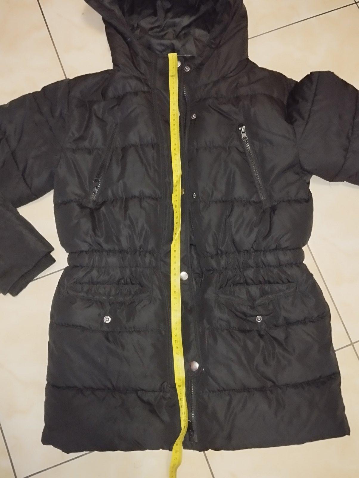 Veľmi pekná dievčenská zimná bunda, predĺžená. V páse zúžená, patenty na rukávoch . Farba čierna , nevyblednutá ( foto mi trochu skresľuje