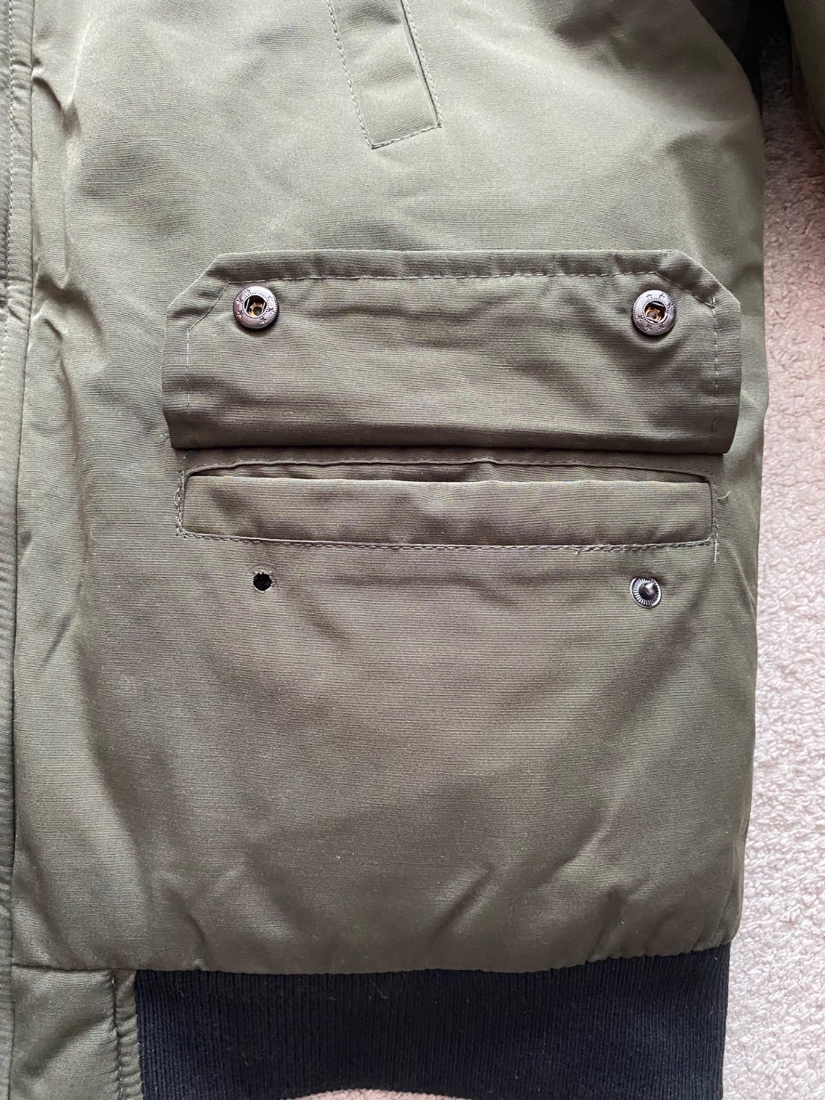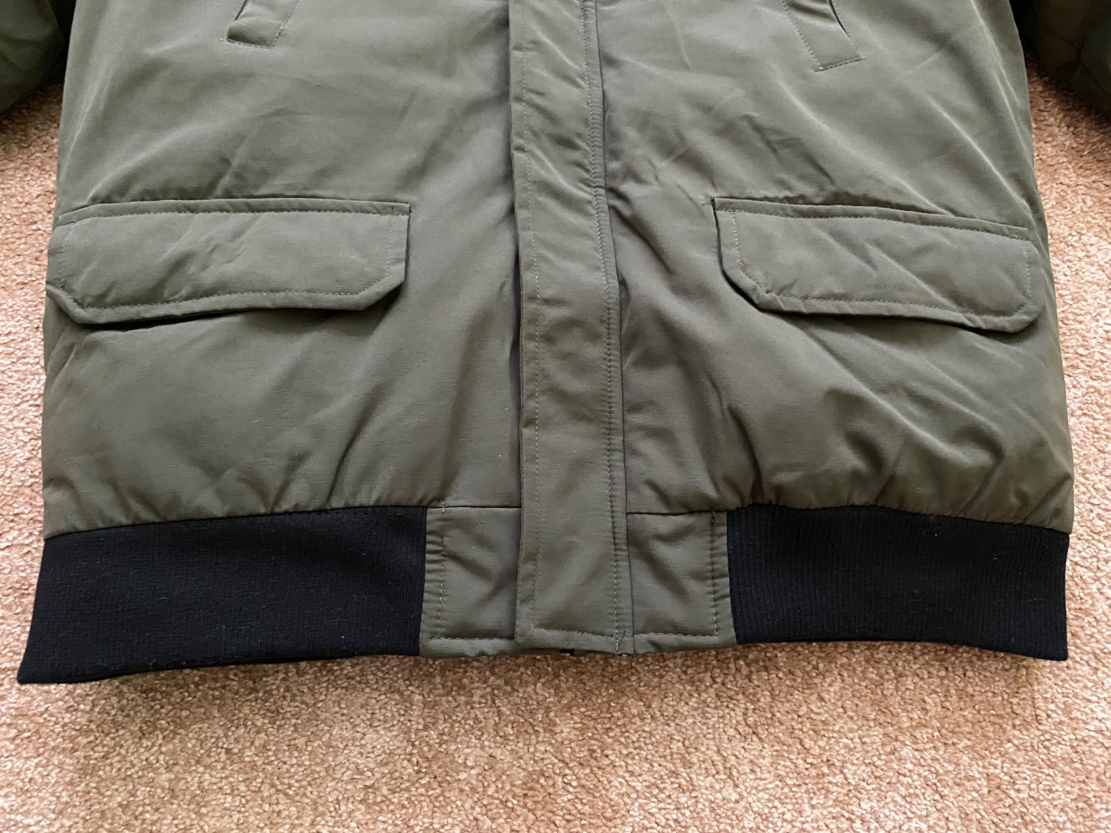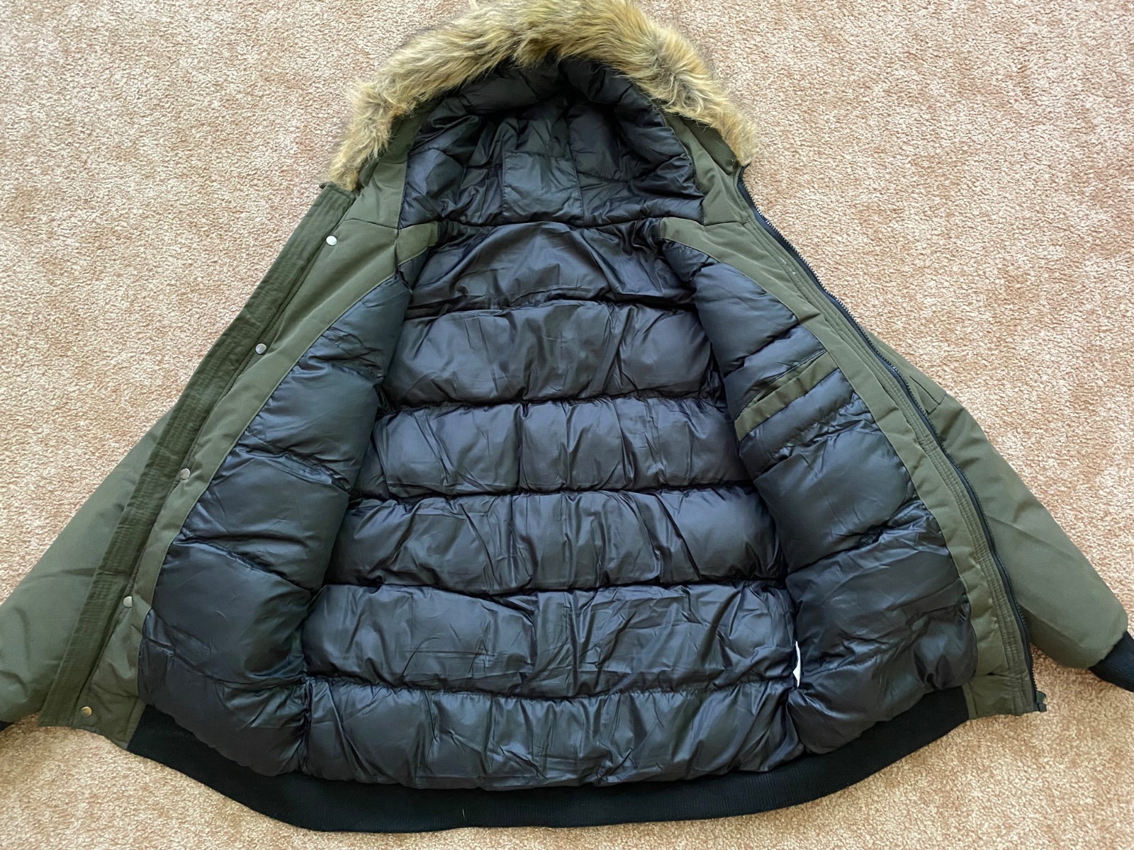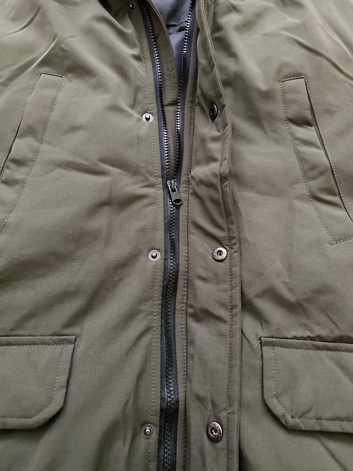 Predám krásnu nenosenú bundu, nesadla nám veľkosť a nestihli sme vrátiť. Vojenská tmavozelená farba, kapucňa napevno ale kožušinka sa dá dať dole. Rozmery sú na foto. Veľkosť XL. Jedna chyba - cvok na vačku - viď foto.