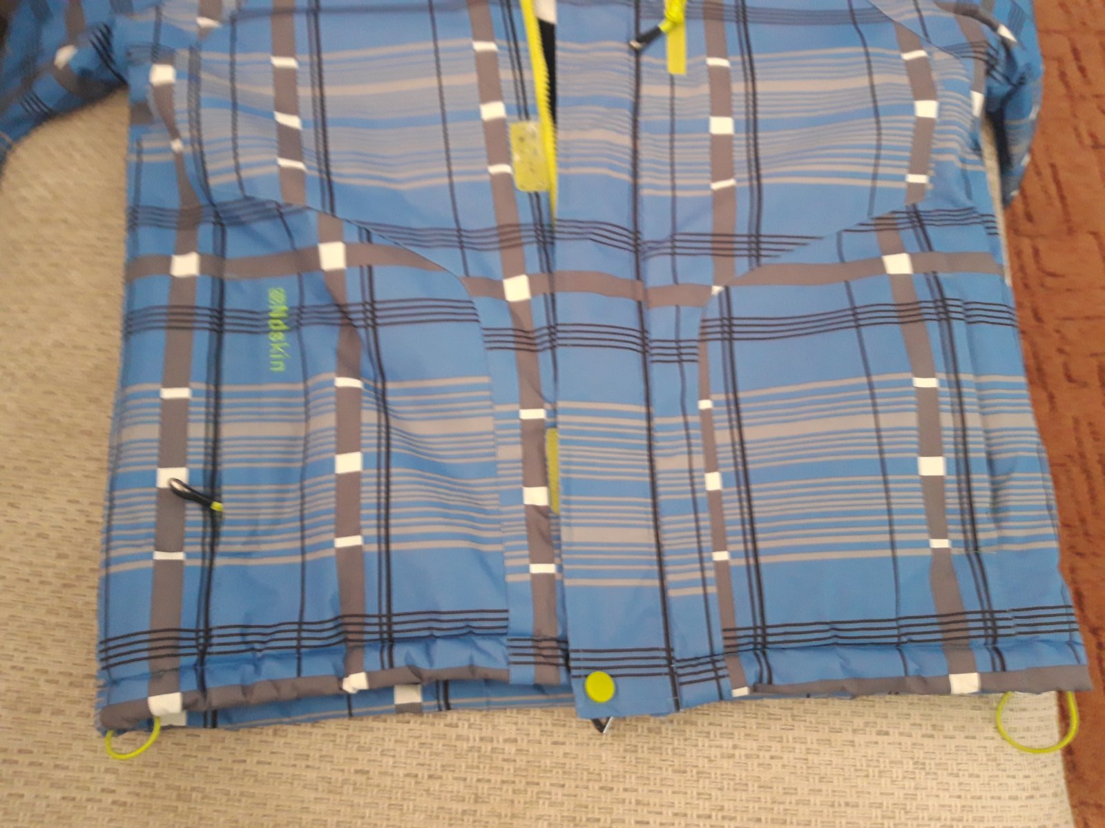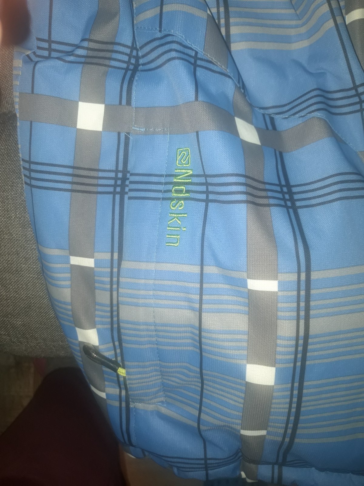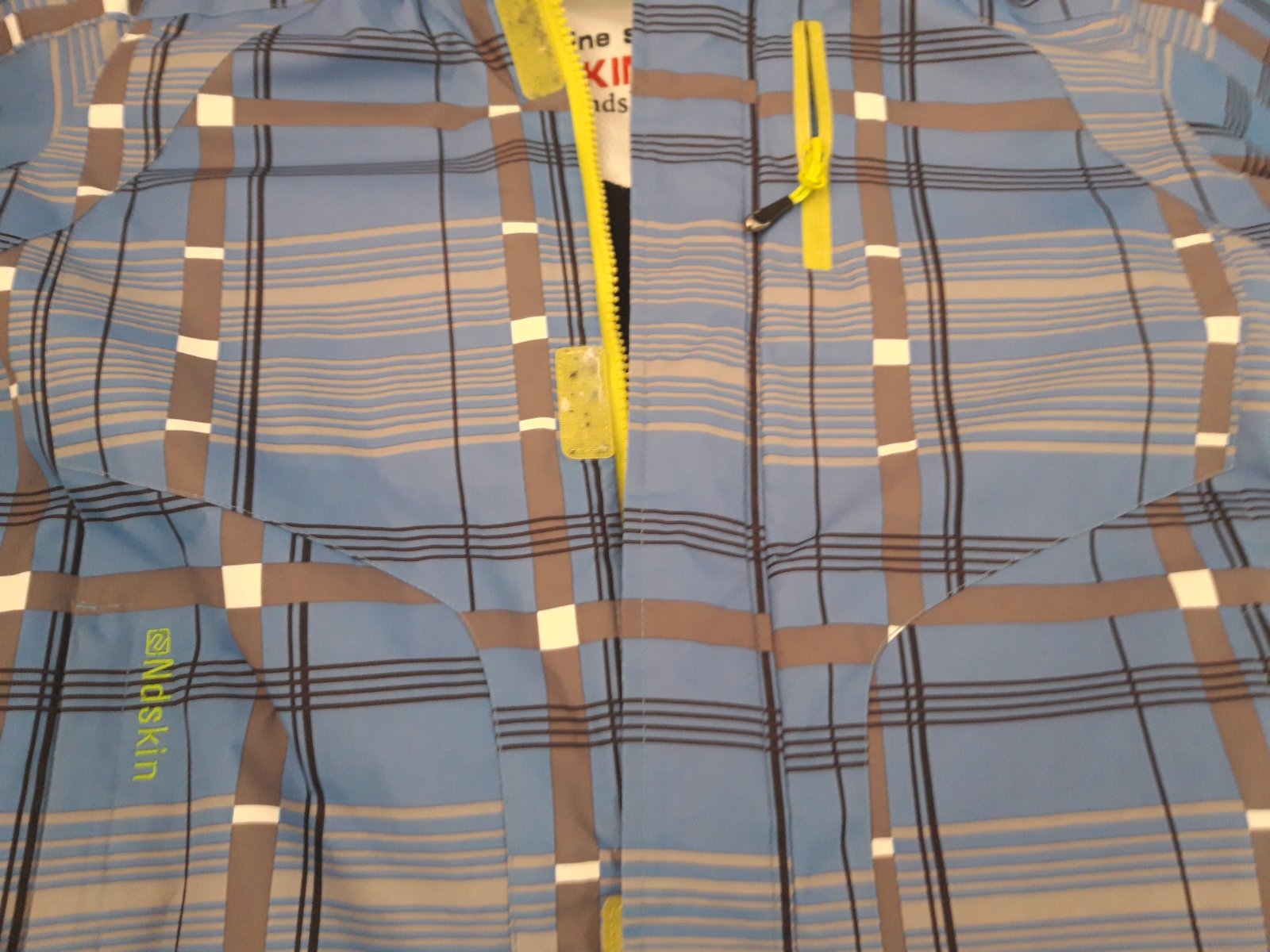 Kvalitná značková vetrovka Ndskin,nosená menej, hrubá,teplá, zašitá pod pazuchami,iné poškodenie nemá, kapucňa sa dá odopnúť,zipsy fungujú,vrecká nepotrhané, veĺmi dobrý stav