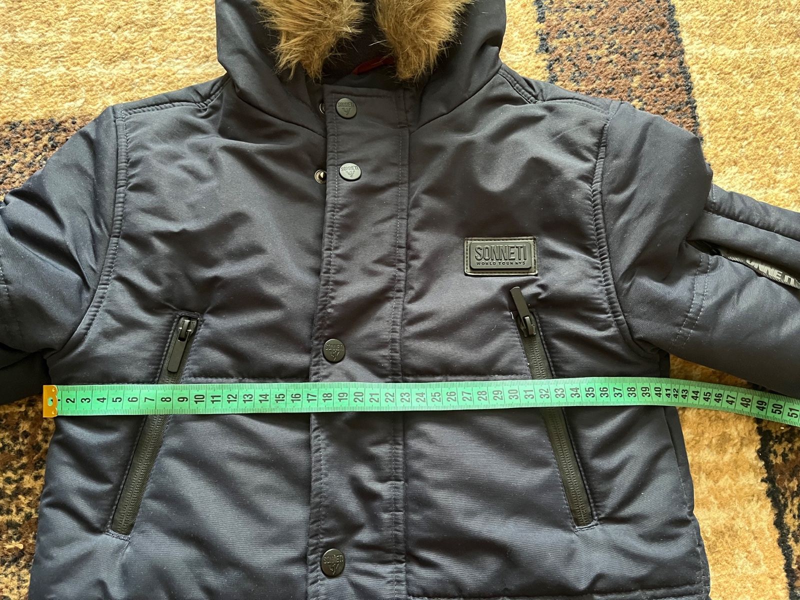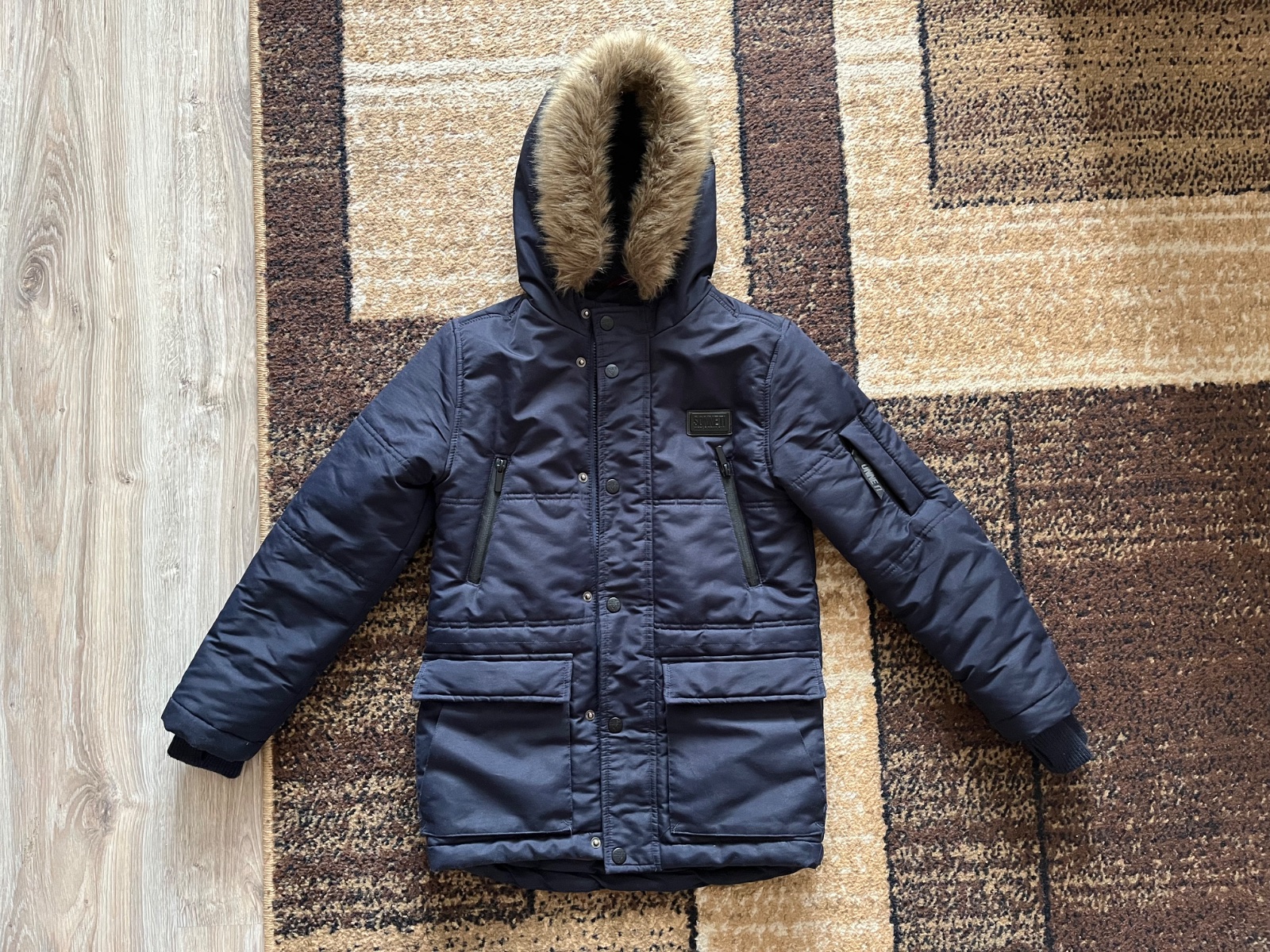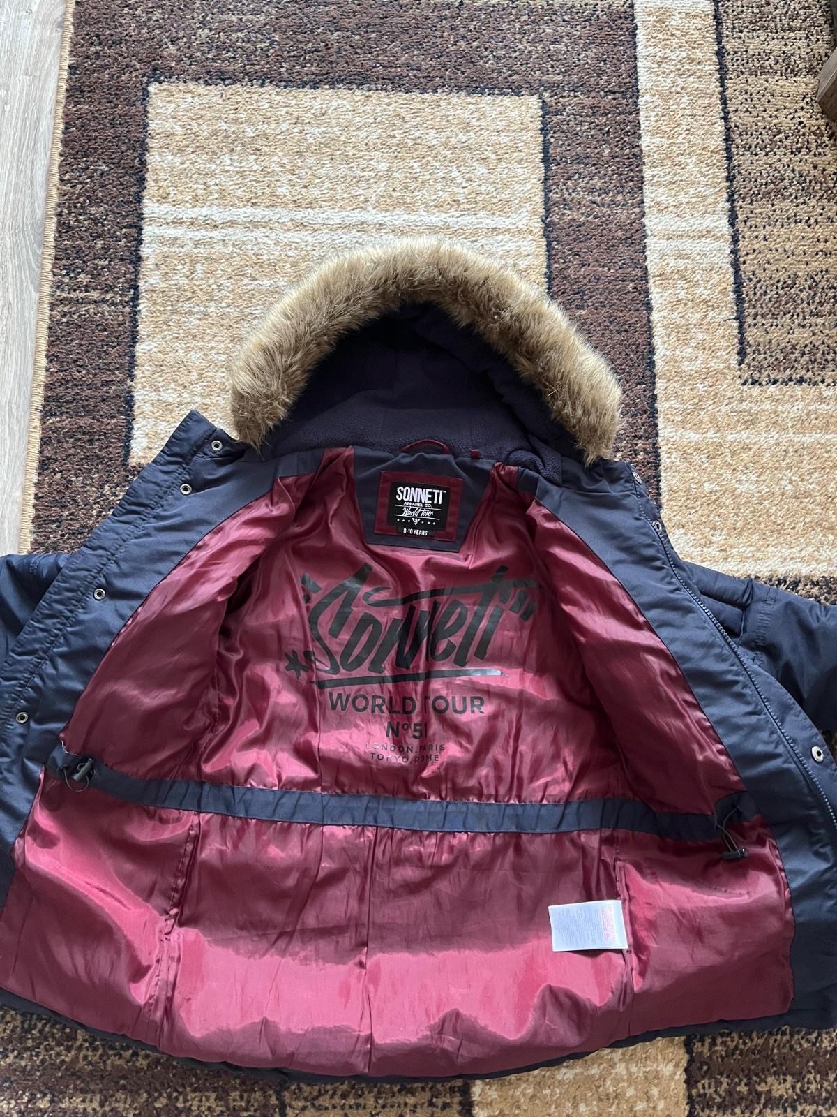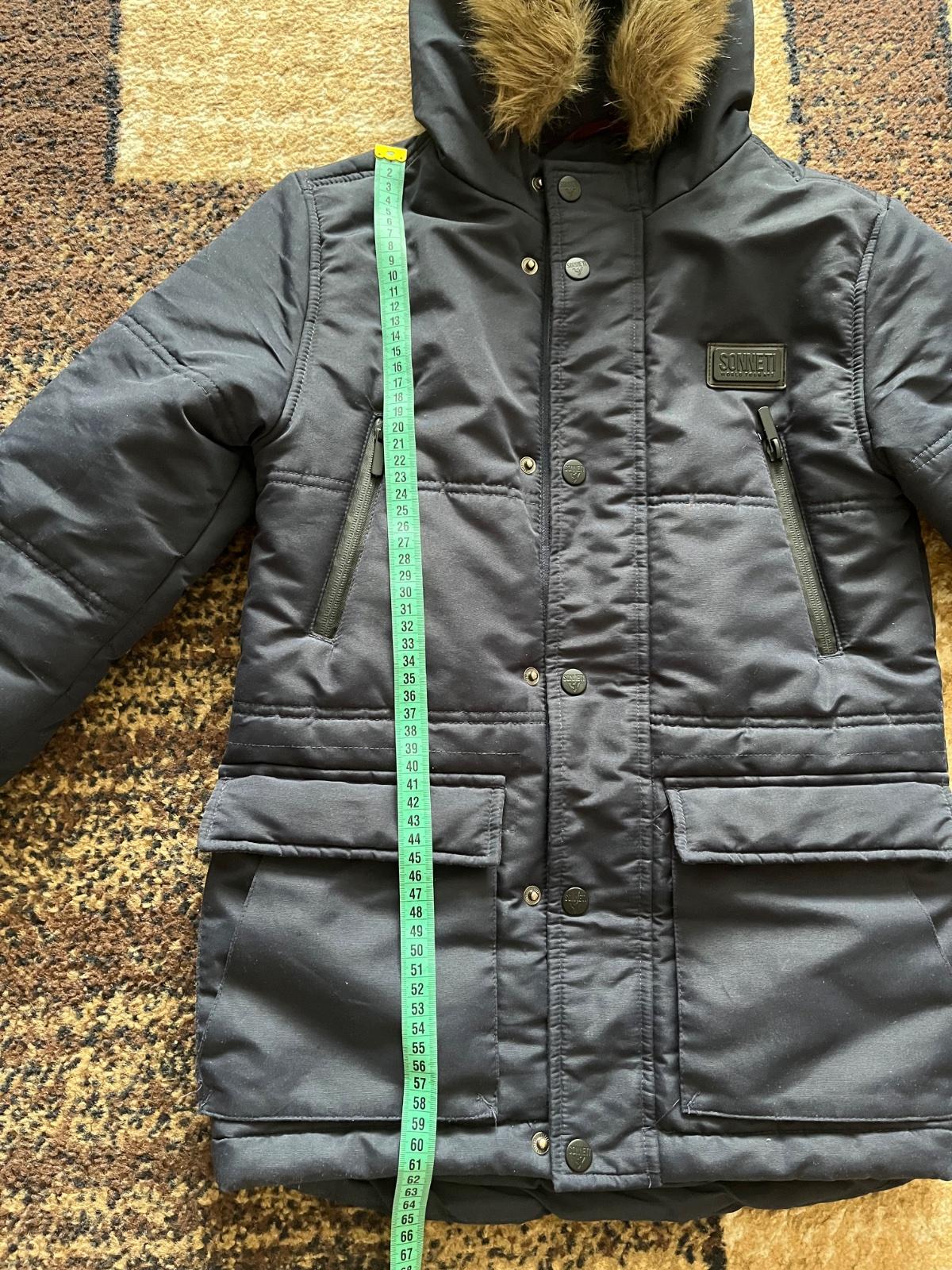 Krásna vetrovka vo veľmi dobrom stave, pekne sedí na postave,vhodná do školy,ale aj do kostola v zime. Kupovaná v Taliansku. Vydrží dlhé obdobie,syn nosil aj ako veľkosť 152.Pekná modrá farba ako na titulnej fotke.Je dlhšia-pod zadok.