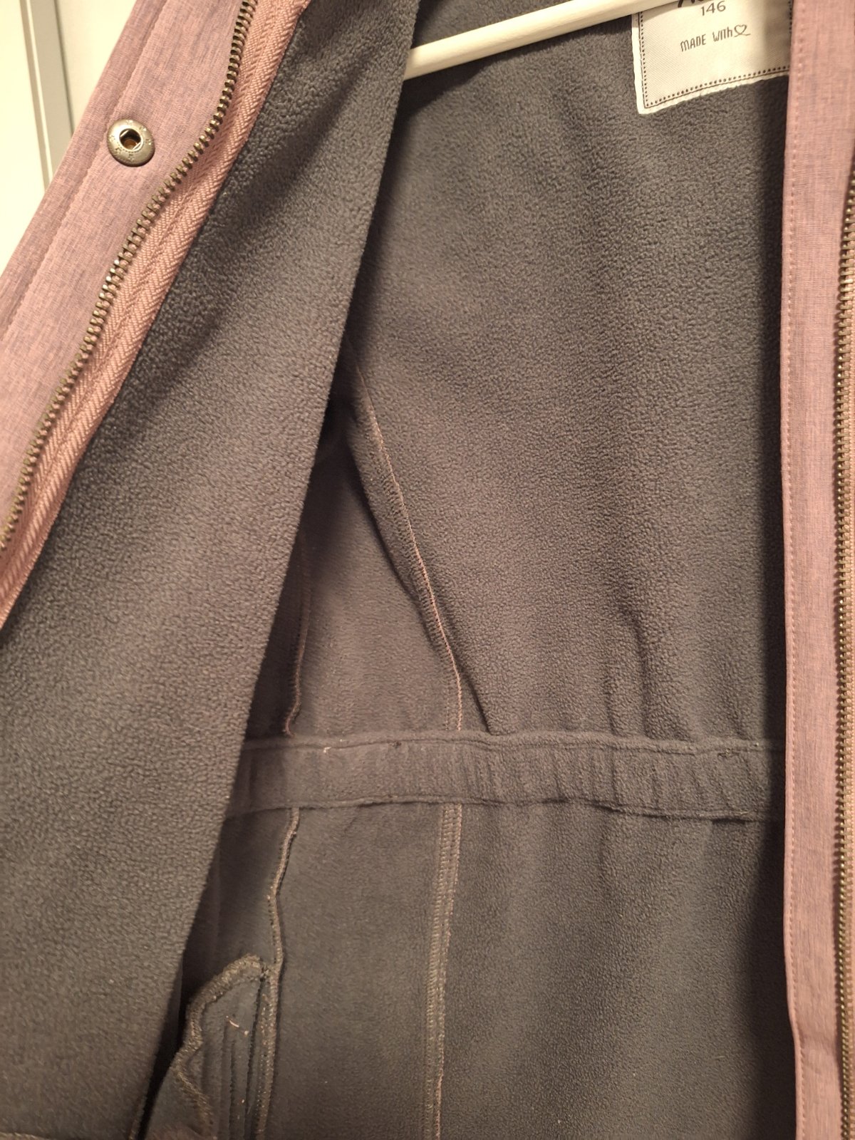 Kabátik je vhodny do teplej zimy.Vo vnútri je prešitý čiže je dost teplý.Vonkajšok je neprefúkavy a nepremokavý.