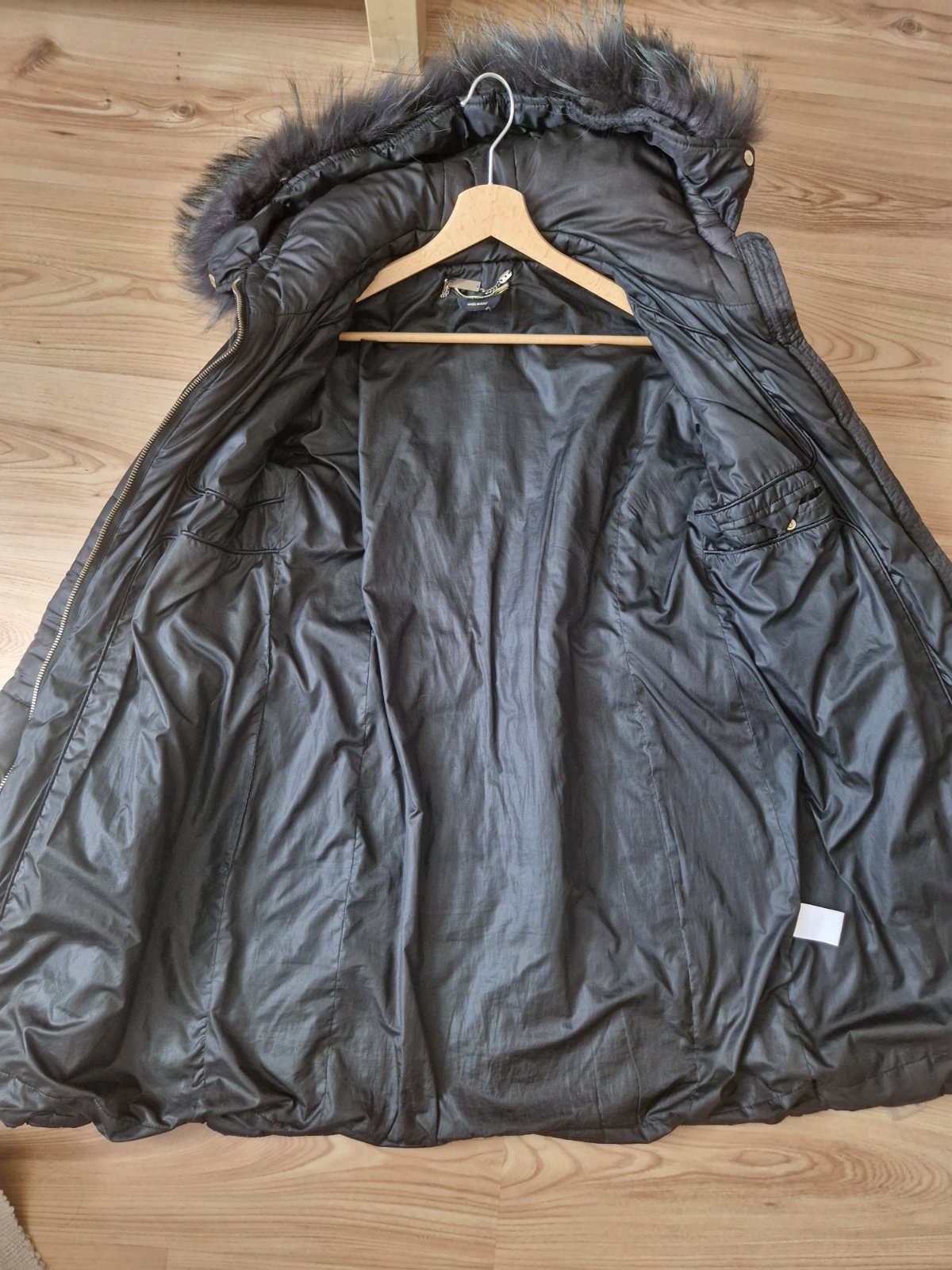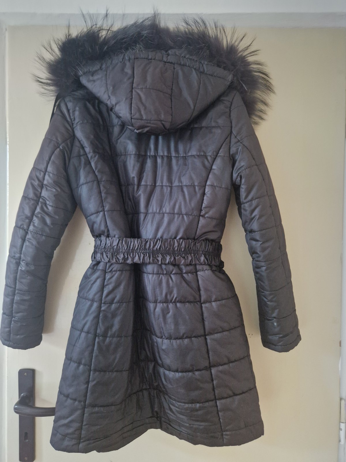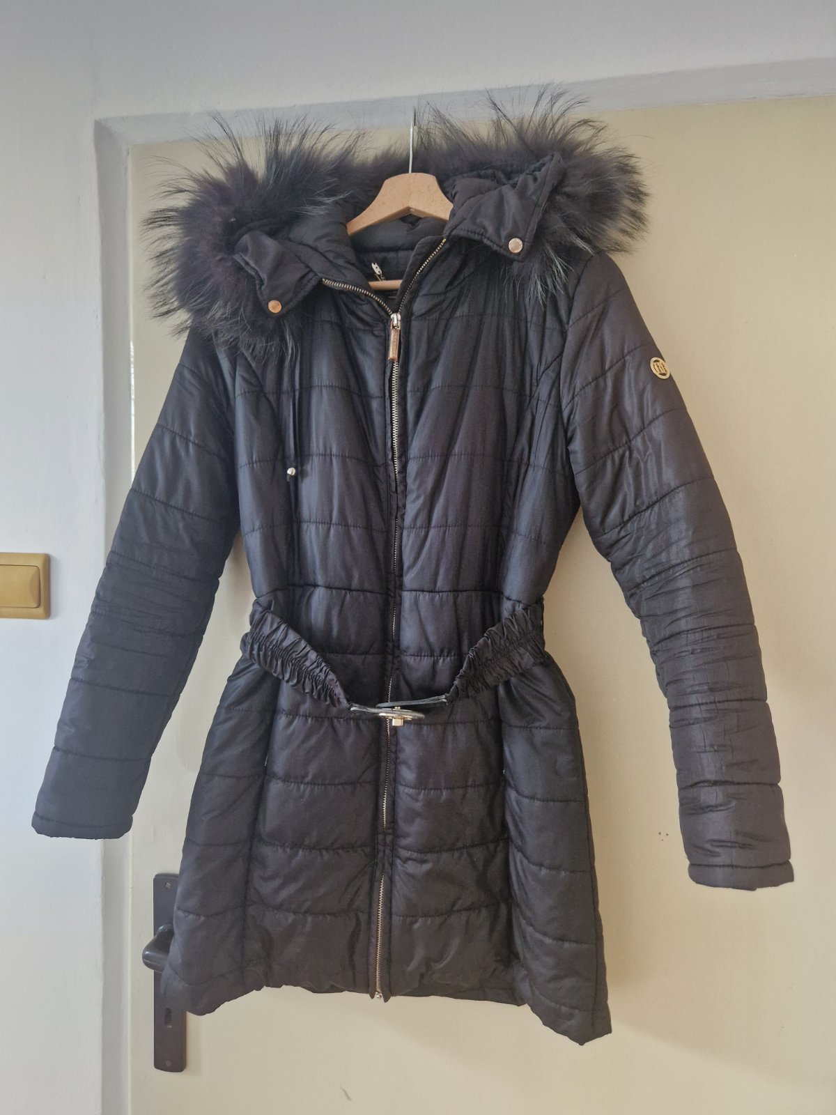 Nosena. Dlzka 80cm, pas 80cm. Talianska velkost S. S kapucnou s pravou kozusinou. Pri prani sa kazusina nezmolkuje, zachovava si pekny prirodzeny efekt. Detaily v zlatej farbe. Povodna cena 285eur. Kupovana v Taliansku.