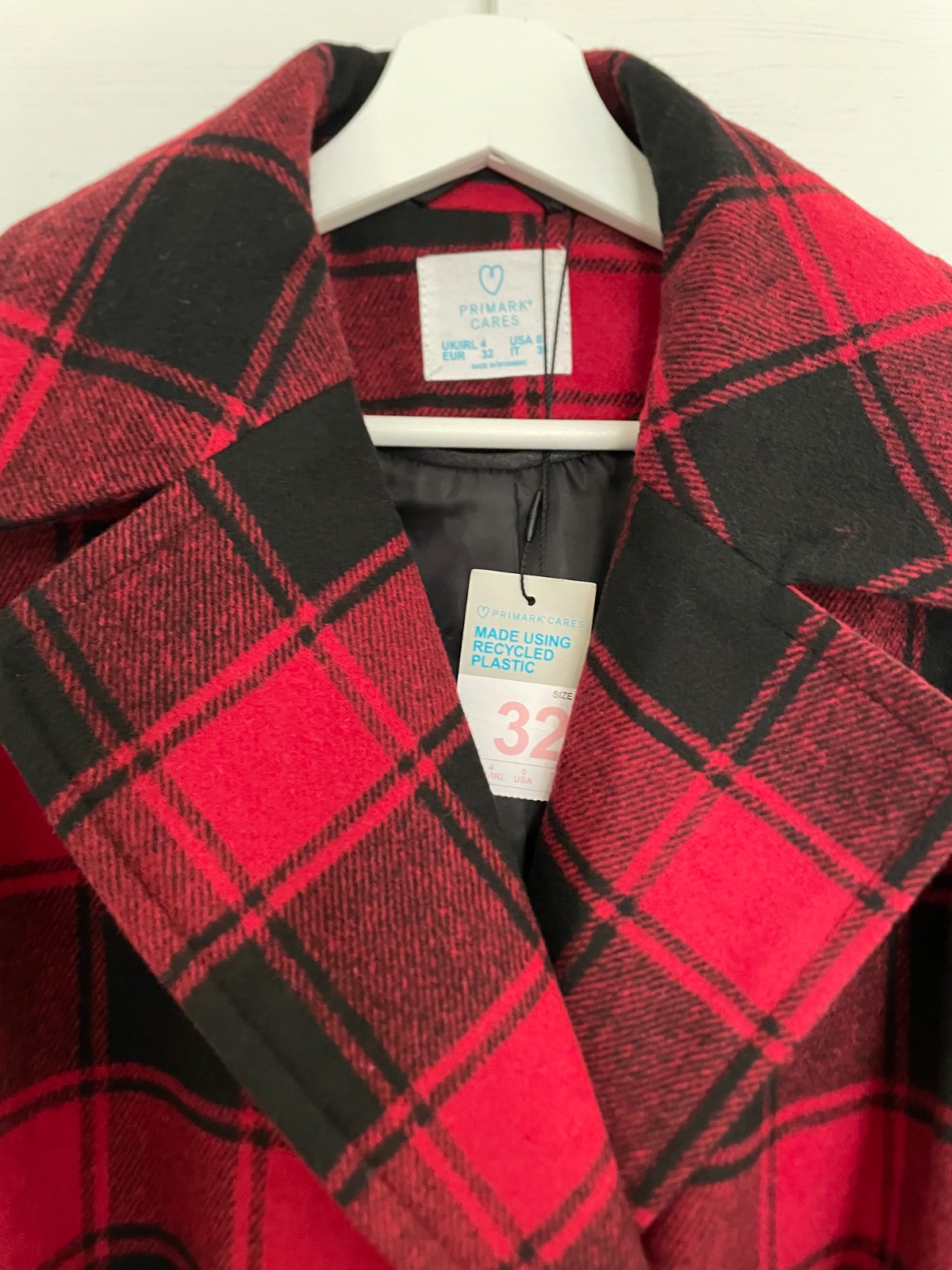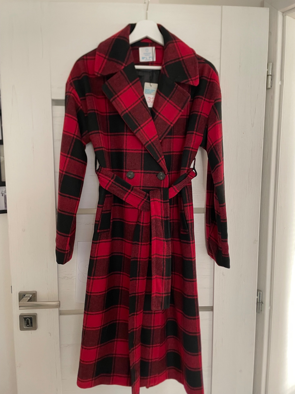novy stylovy karo ksbat, je pisana velkost 32, ale kabst je vacsi, sadne na velkost S(36), ja meriam 171, nosim XS/S a je mi volnejsi, preto posuvam, bol kupeny v akcii, povodna cena 32€