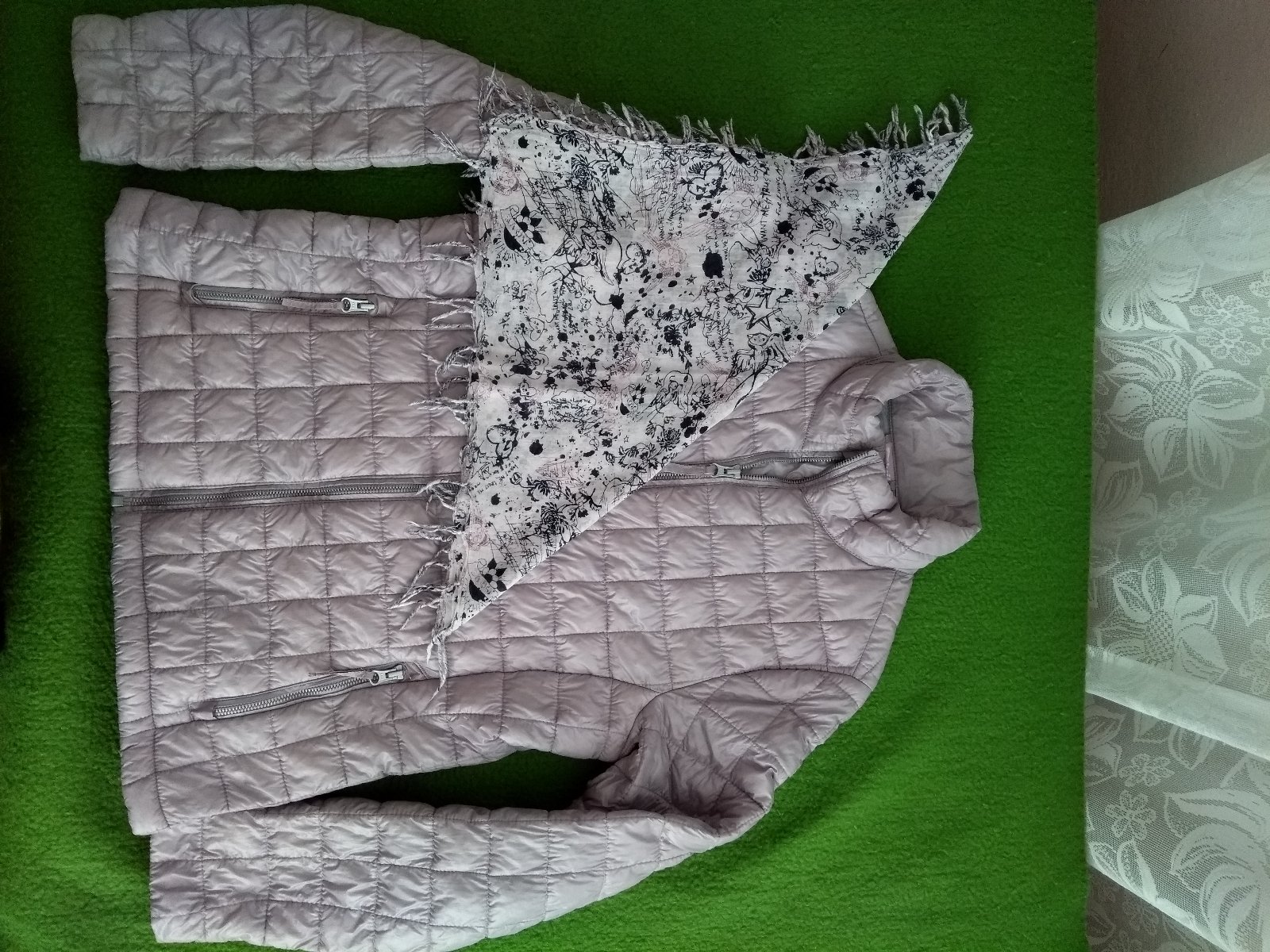 Dámska prechodná bunda veľkosť M (aj keď je písaná 40tka, ale sadne na M/38). Celková dĺžka 64 cm, rukáv od ramena 64 cm, šírka cez prsia 51 cm x 2. Super stav. Darujem k nej jemnú bavlnenú šatku. Možný osobný odber v Nitre. Cena 5,00 eur + poštovné.