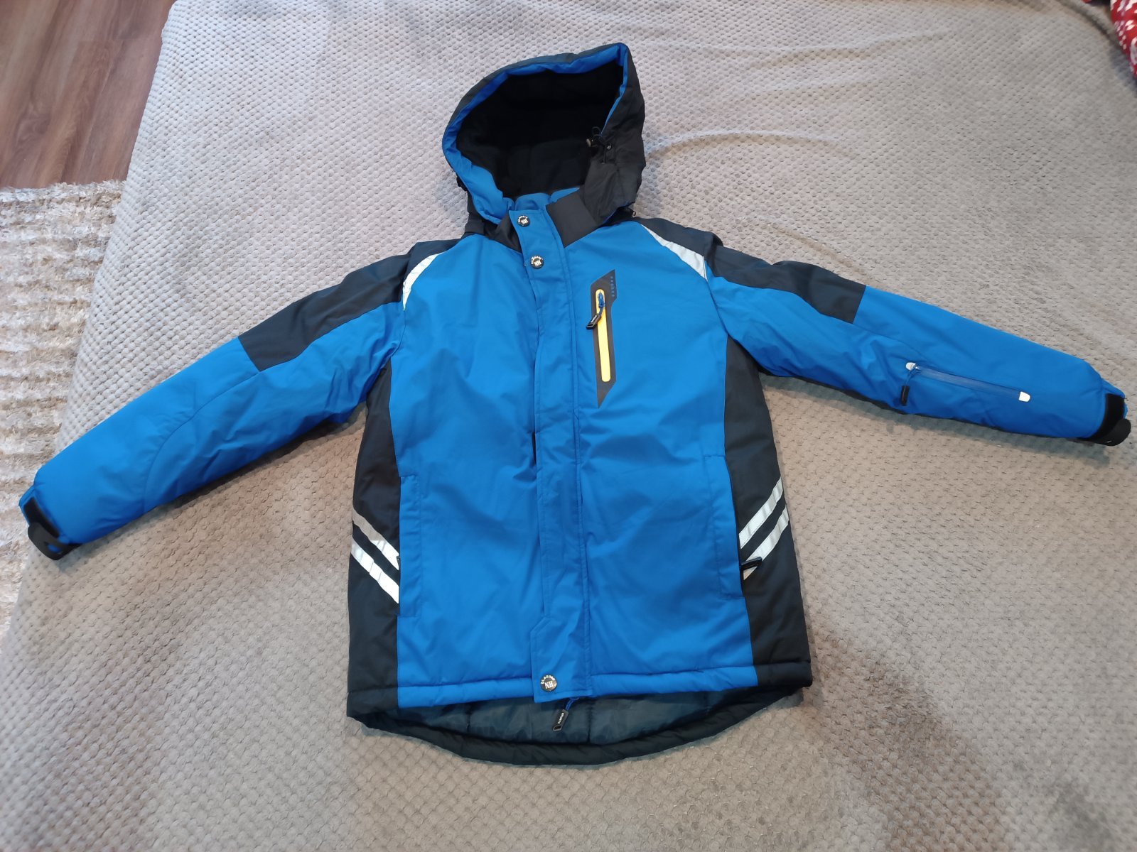 Nepoužitá. Kupovaná min. jeseň v Poľsku , ale keďže bola mierna zima, syn ju nechcel nosiť a už mu je malá.. Veľmi tepla. Na foto vidno detaily, vrecka 2x vnútorné, 3x vonkajšie + ďalšie na ľavom rukáve. Kapucňa sa dá odopnut. Kvalitný materiál. Zn. Nh Collection