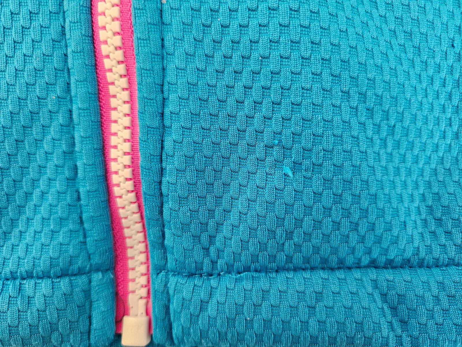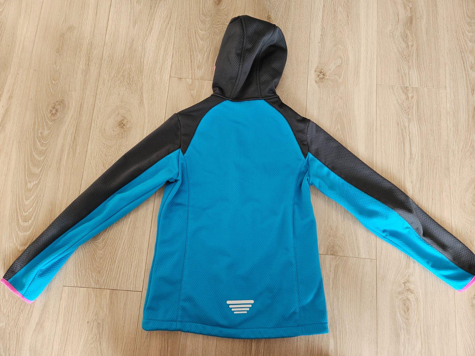 V dobrom stave, zopar drobnych zatrhnuti vpredu a na rukave (vid.foto). Podsita fleecom. Dlzka 58 cm, sirka pod pazuchami 43 cm, dlzka rukava od ramena 58 cm.