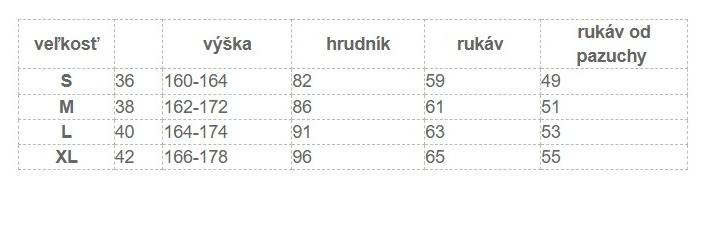 Veľkostná tabuľka v detaile