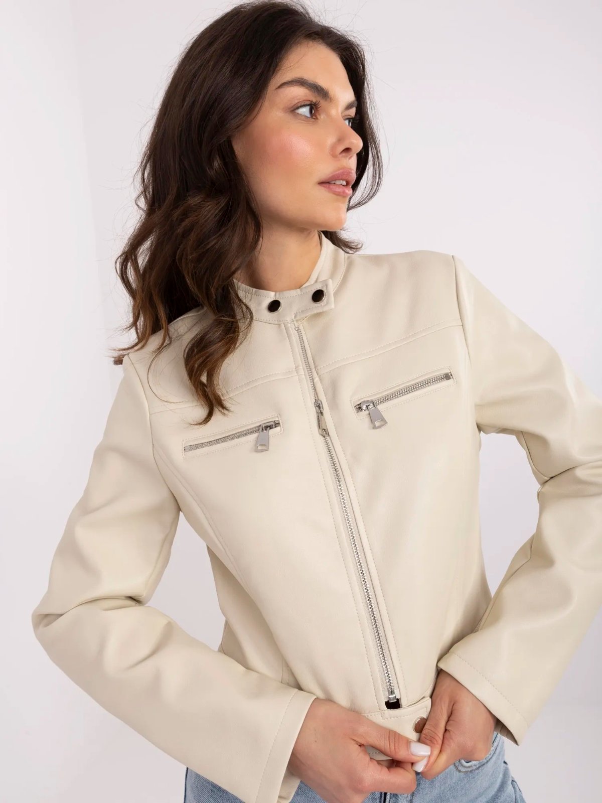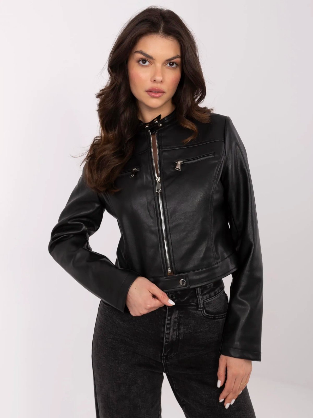 Táto štýlová dámska koženková bunda je dokonalým spojením elegancie a rebelského nádychu. 💫 S minimalistickým dizajnom, praktickými vreckami na zips a moderným strihom zvýrazní každý outfit. Perfektná na prechodné obdobie!