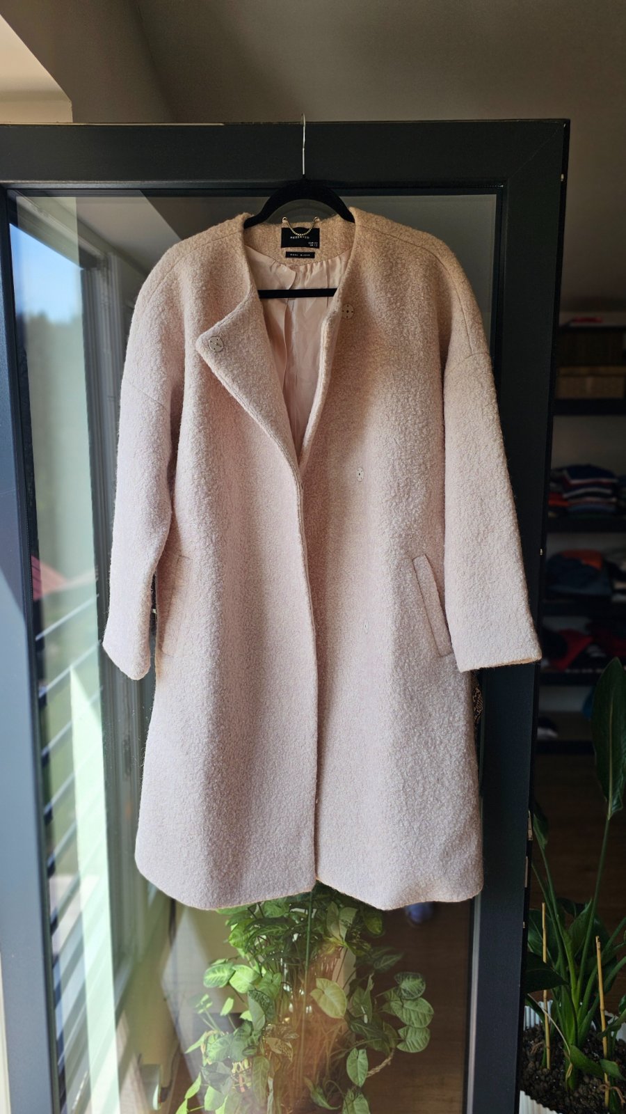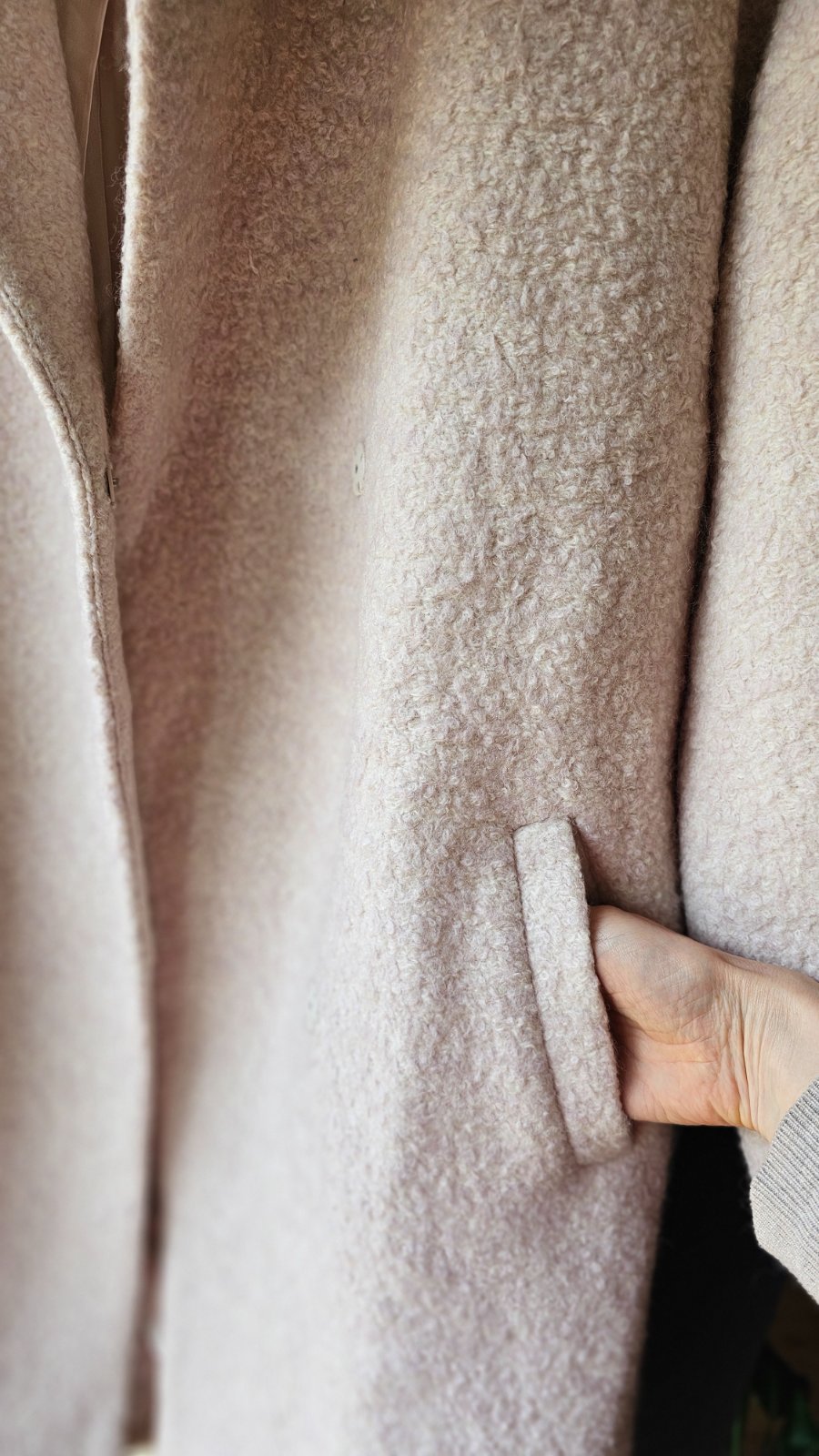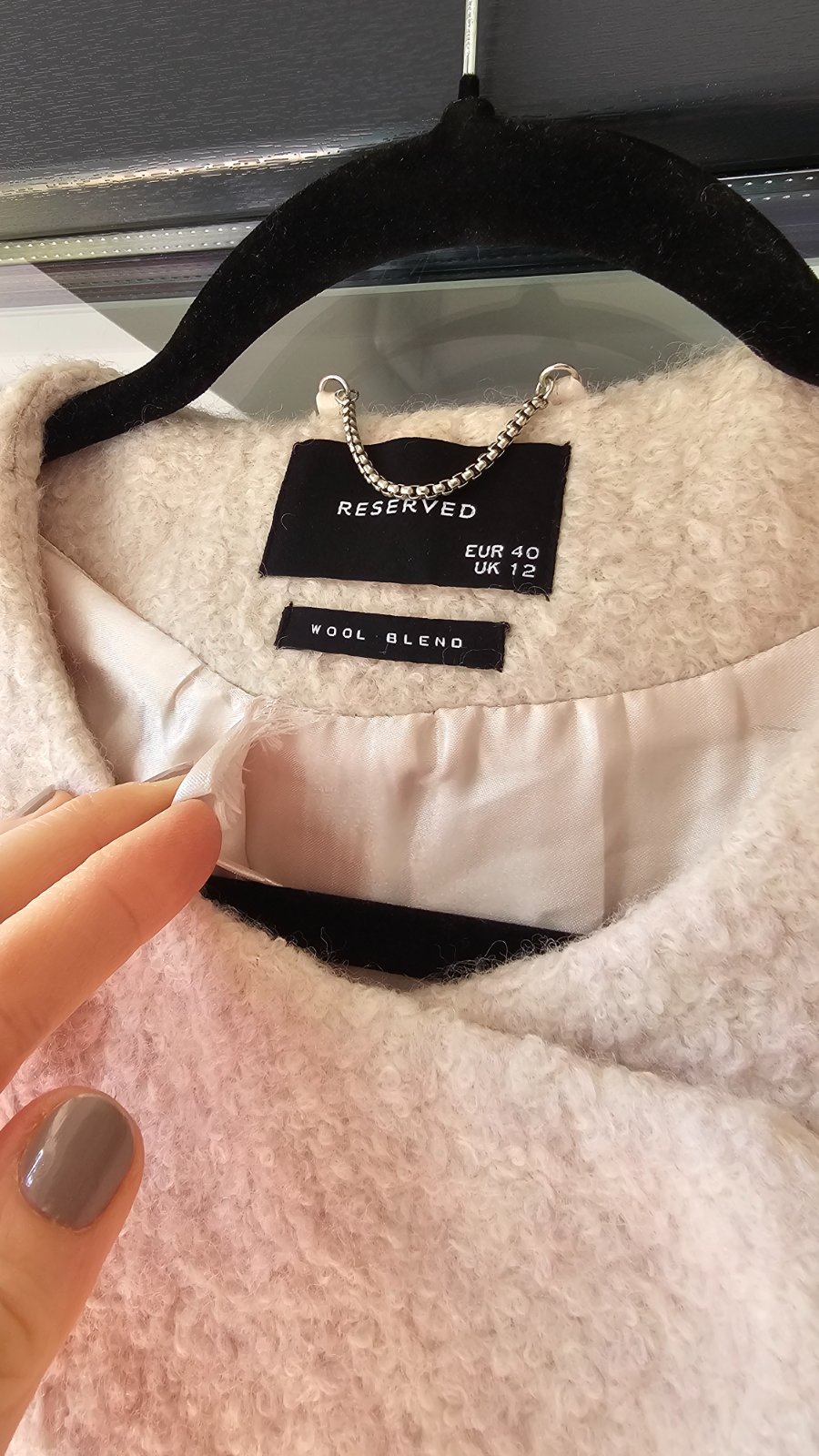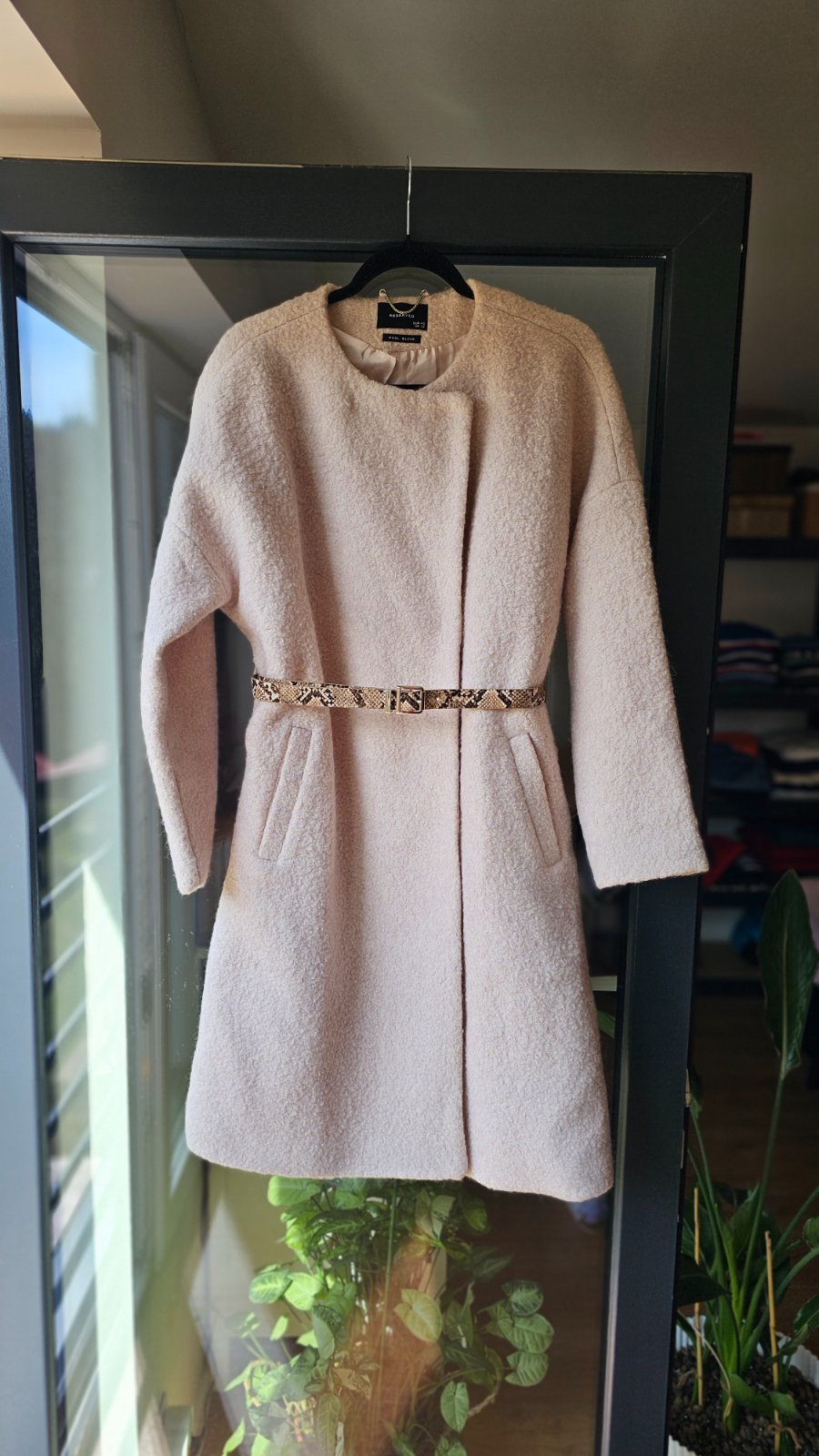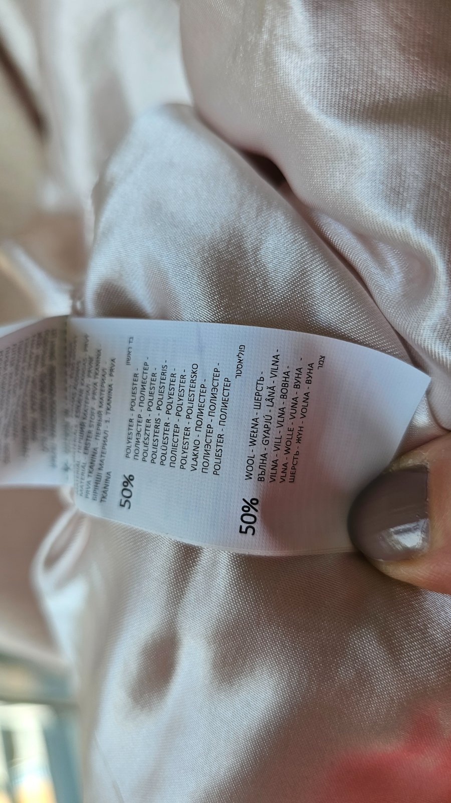 30% vlny. Kabát je v top stave, ako nový. Len pri fotení som si vsimla pri krku vytrhnuty kúsok podšívka, treba si zasit :). Možnosť nosiť s opaskom alebo bez neho.