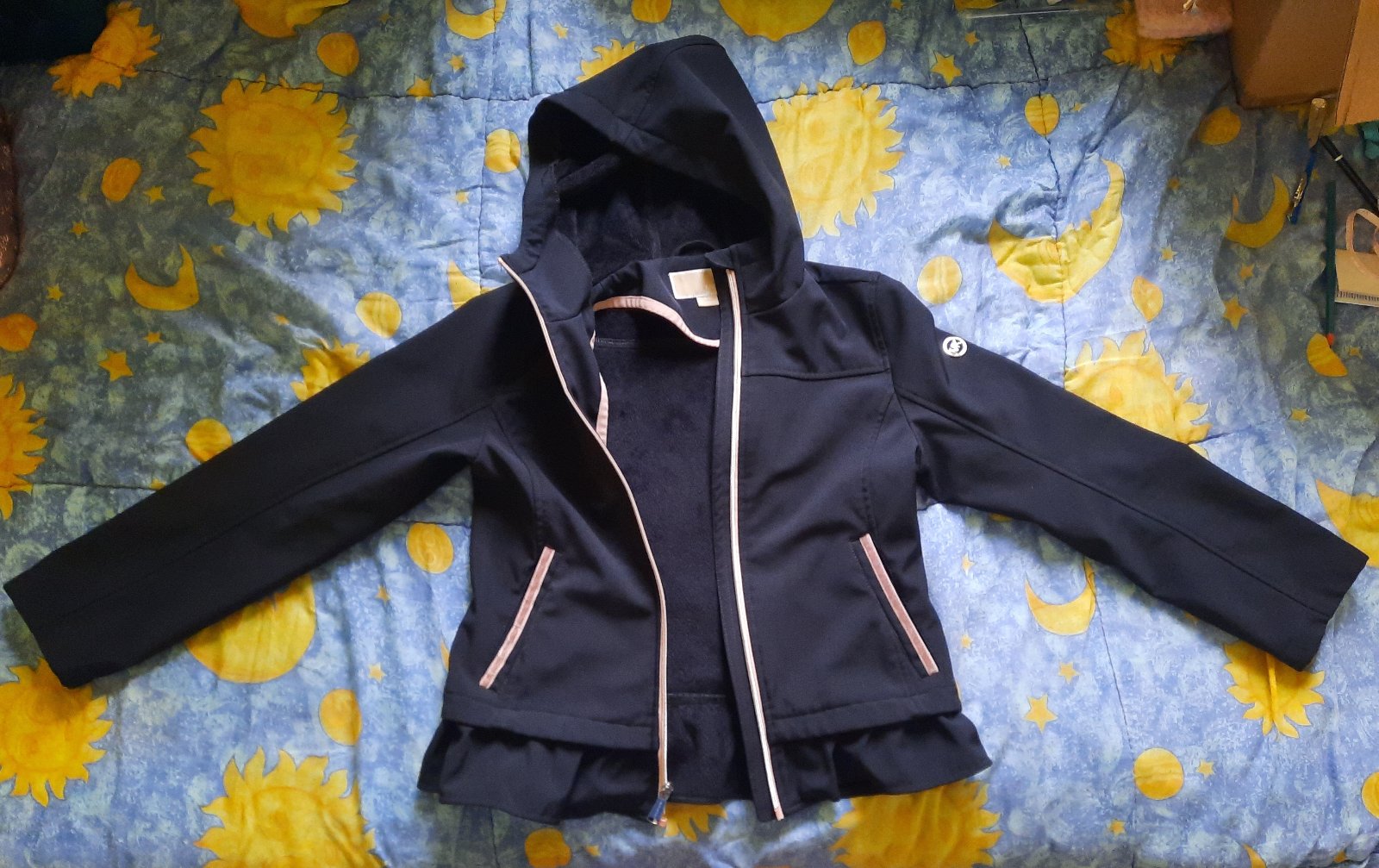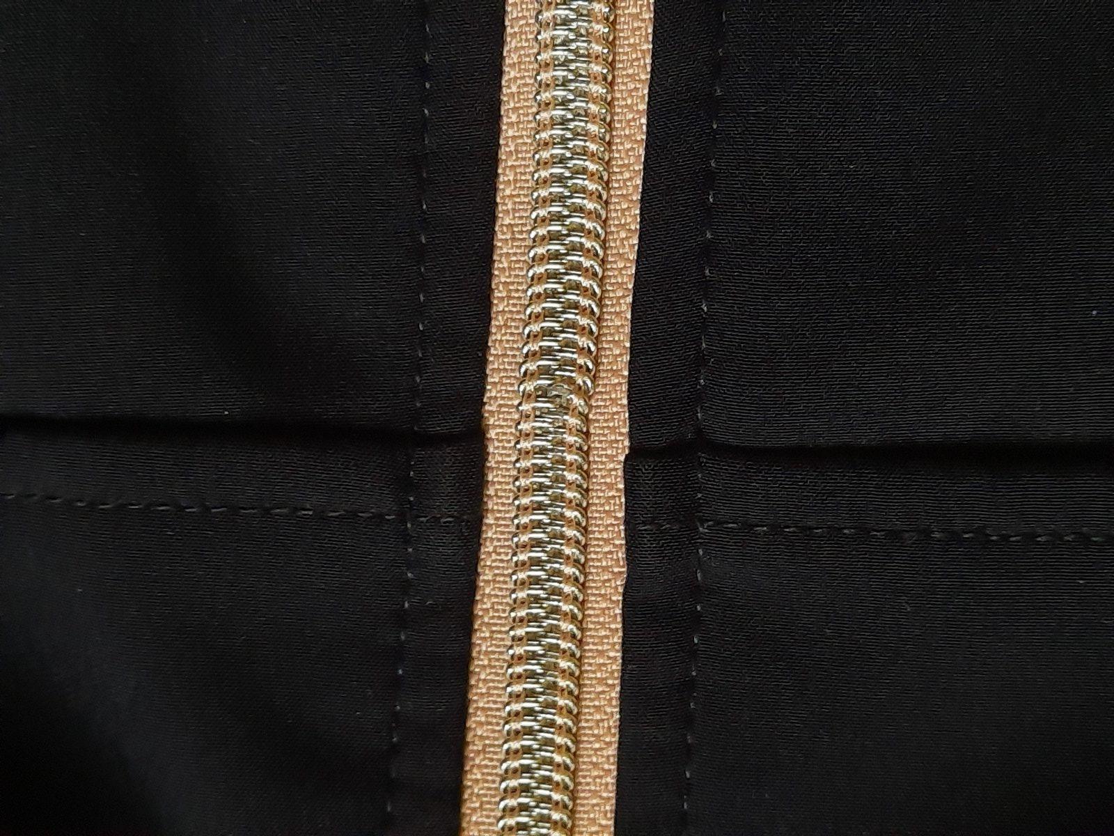 Nie je deravá, zapretá, špinavá, ale na zipse je kaz (viď foto), ale pohyb zipsu je napriek tomu bezproblémový. Až na ten kaz na zipse je ako nová.