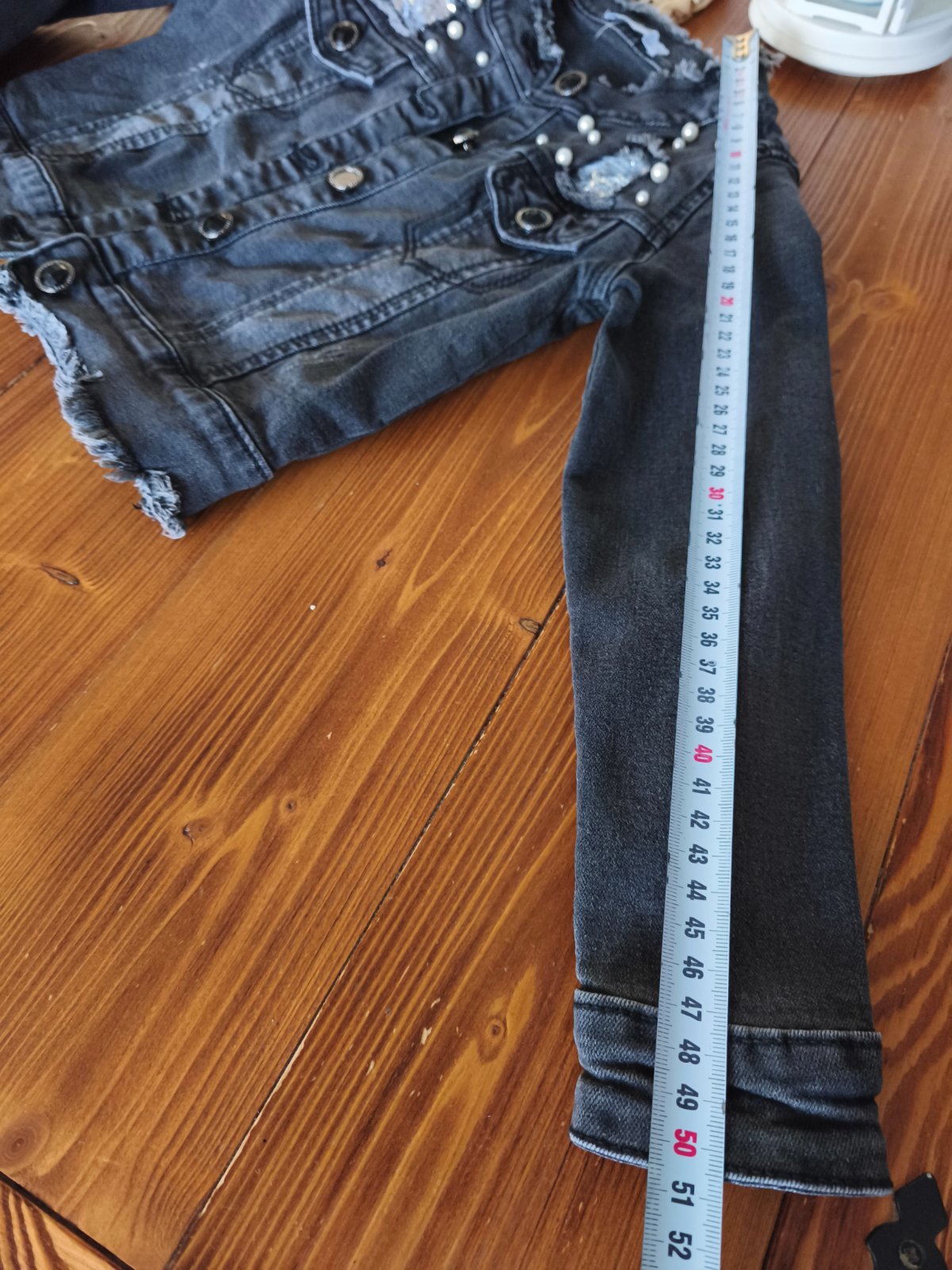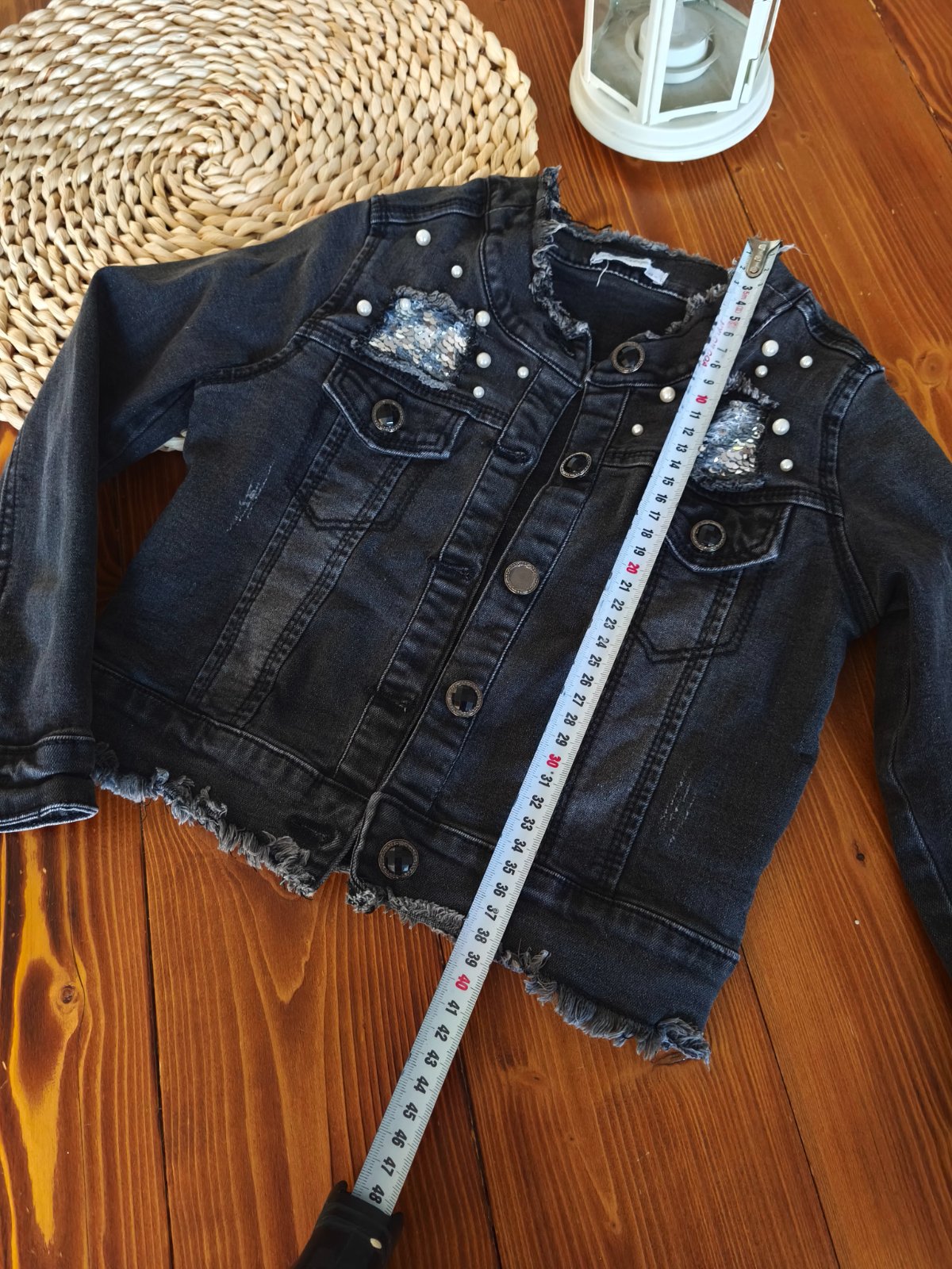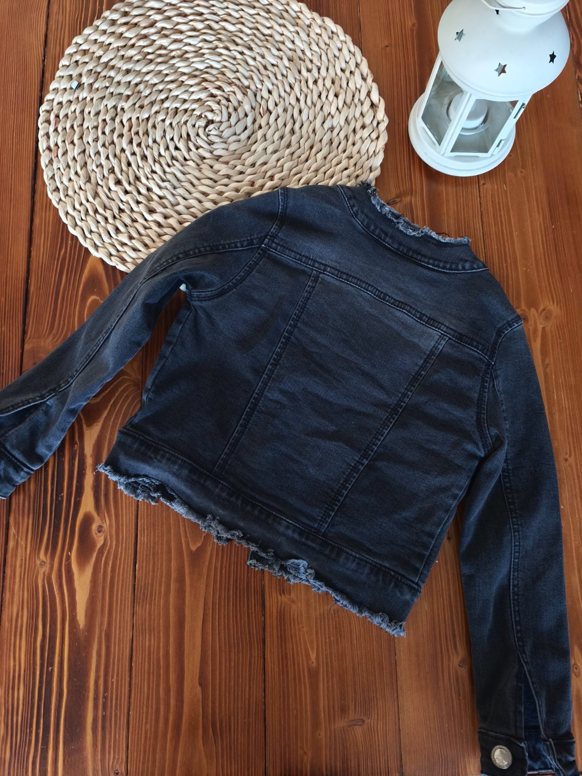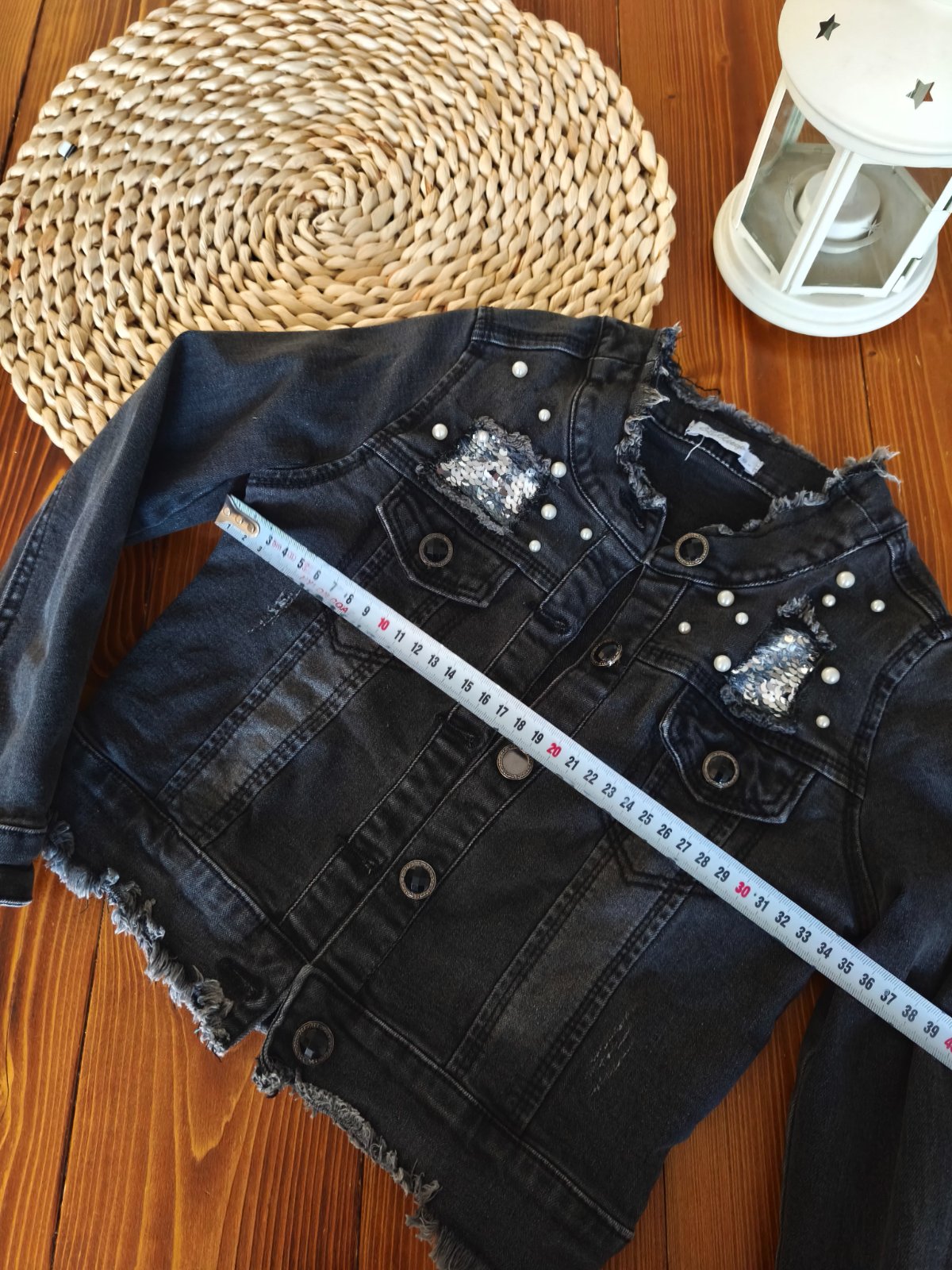 Krásna frajerska bundička tmavošedej farby. Rozmery uvedené na foto. SKôr pre chudšie dievčatko.