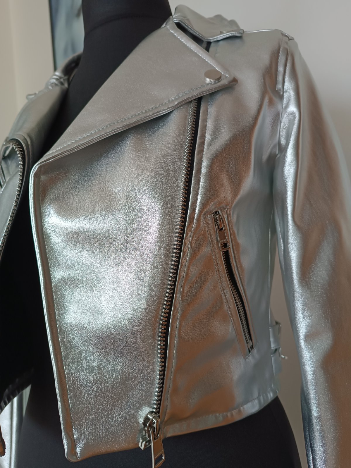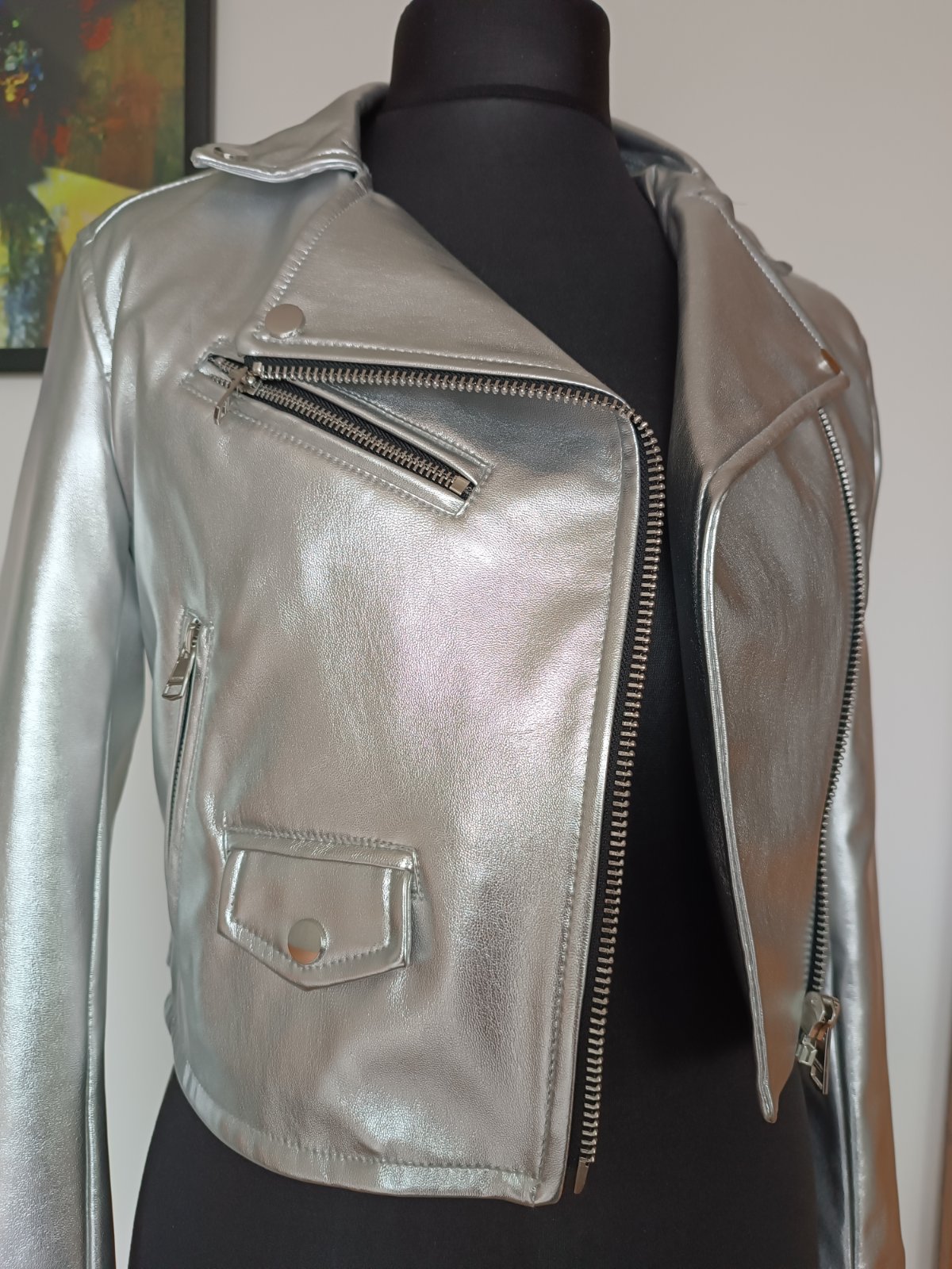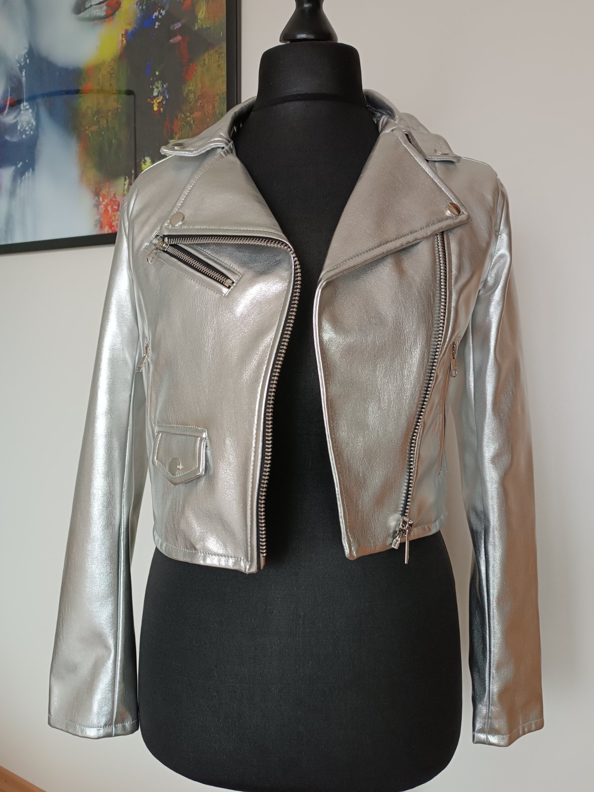 Bunda párkrát použitá, obvod hrude 88cm, obvod pásu 80cm, dĺžka bundy 47cm dĺžka rukáva 60cm