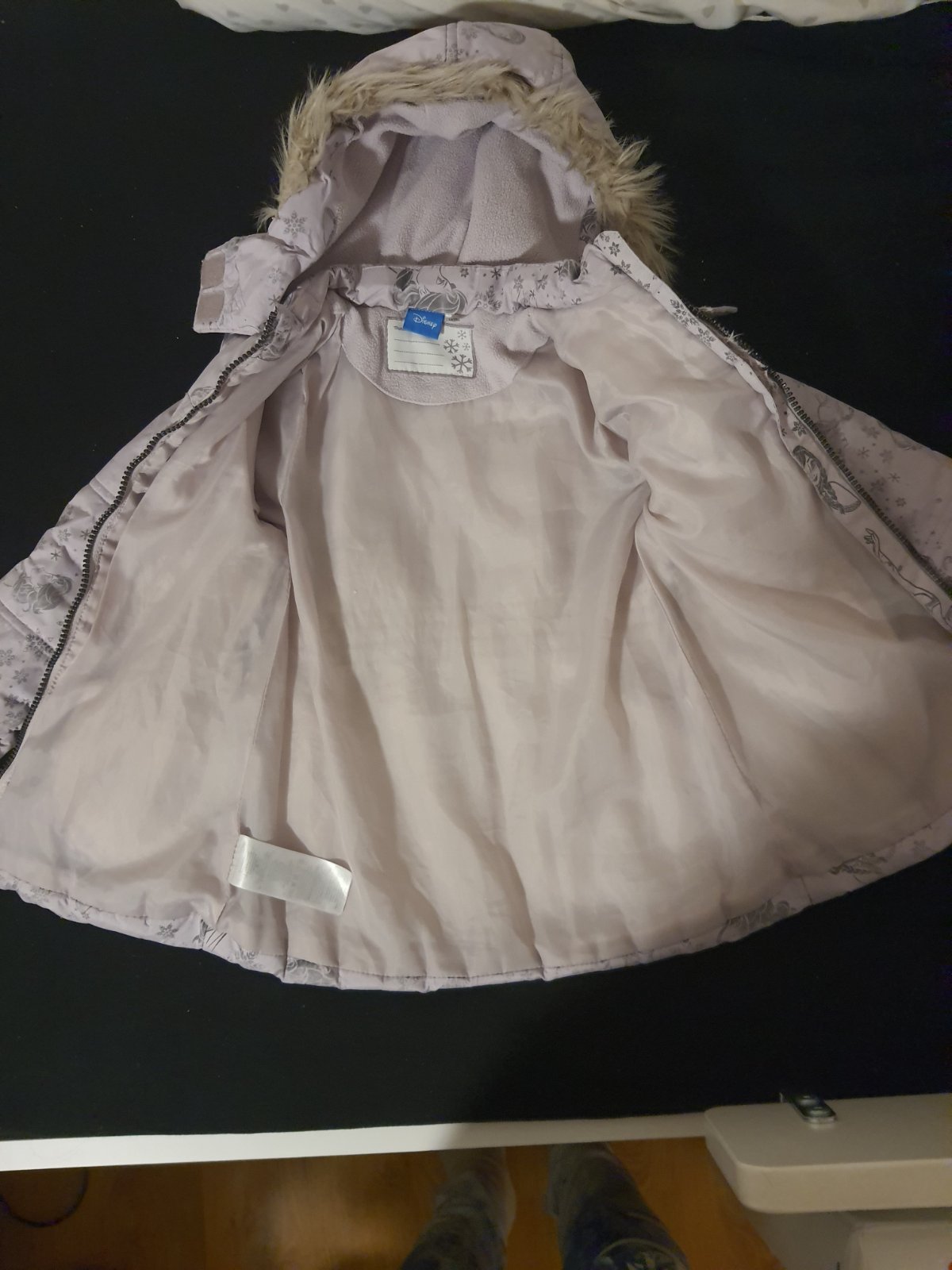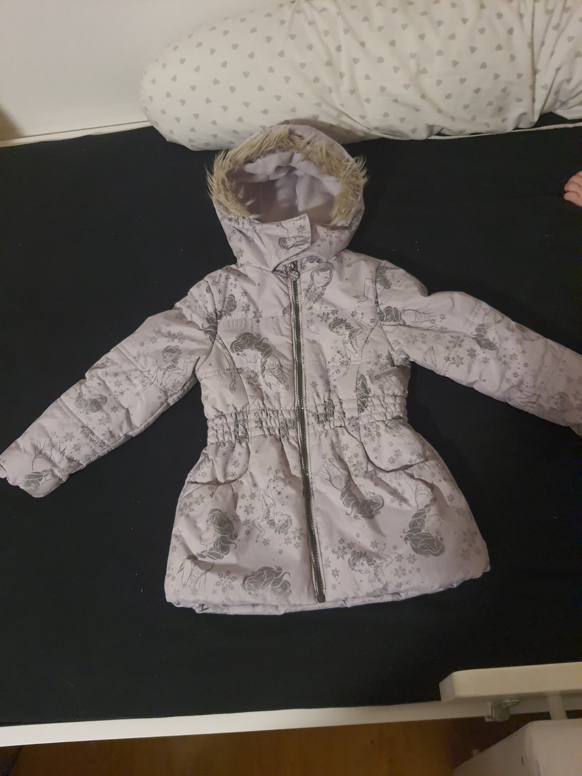 Krásna bundička v štýle kabátika. Nositeľná dlho. (okolo 5r.). Vhodná na dvor, ihrisko. Je tenšia, čiže na teplejší zimu, ako teraz. Je na niektorých miestach trošku vyblednutá, (obrázky) no nie je to voľným okom vidieť. Pri zipse je trochu rozparaná, stačí zašiť. Pozri foto.