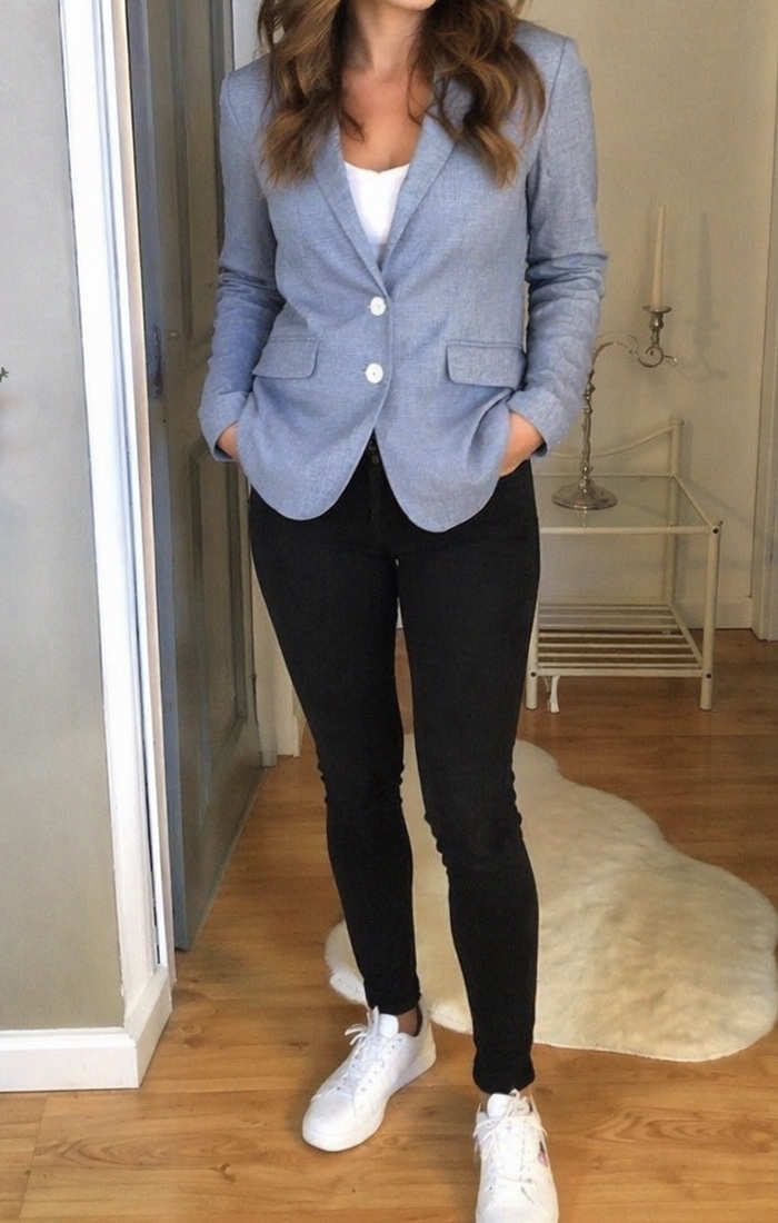 Kvalitné bledomodré sako, zapínanie na gombíky, podšité, super stav.