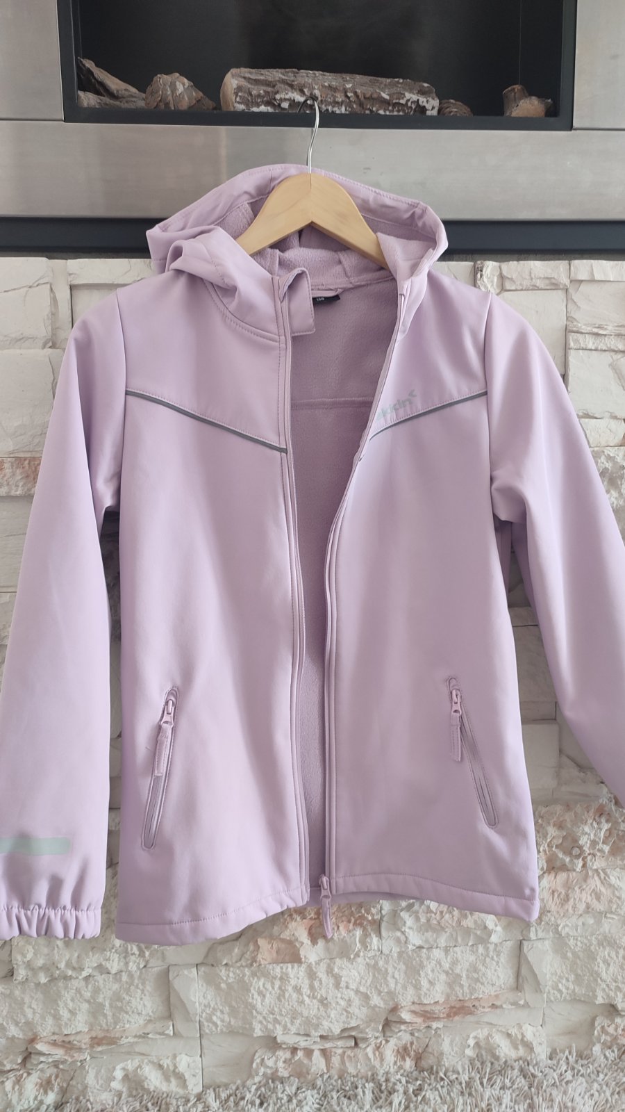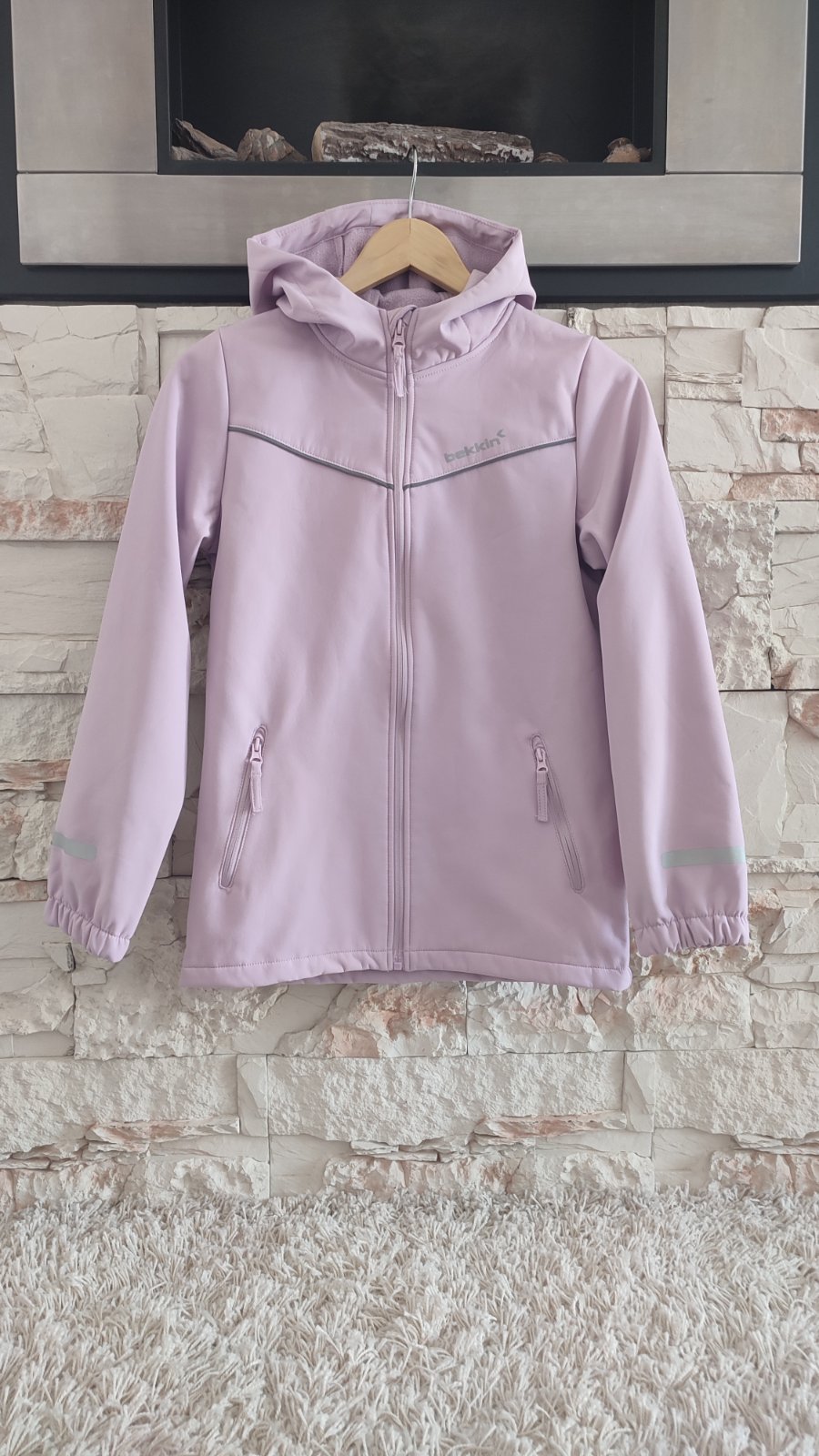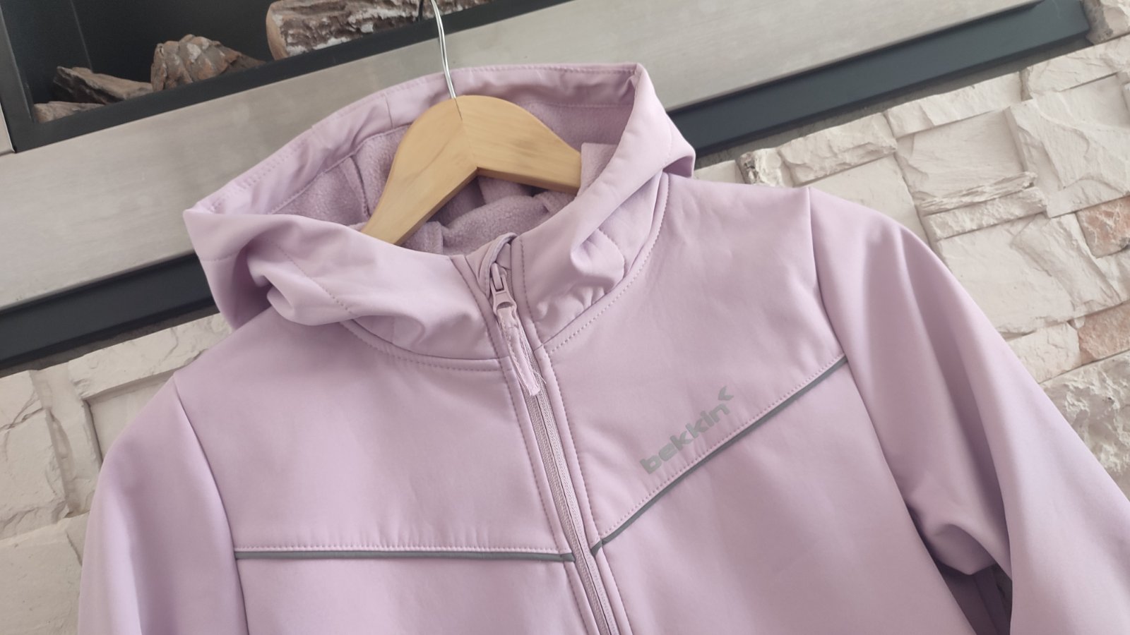Ponukam prechodnu softshelovu bundu diaľkovej farby. Neprefukava, nepremokava, s kapuckou. Ma reflexne prvky, rukavy su ukoncene na voľnú gumu. Zipsy su prekryte nepremokavou membranou. Vnutro je prijemne teple, flisove.